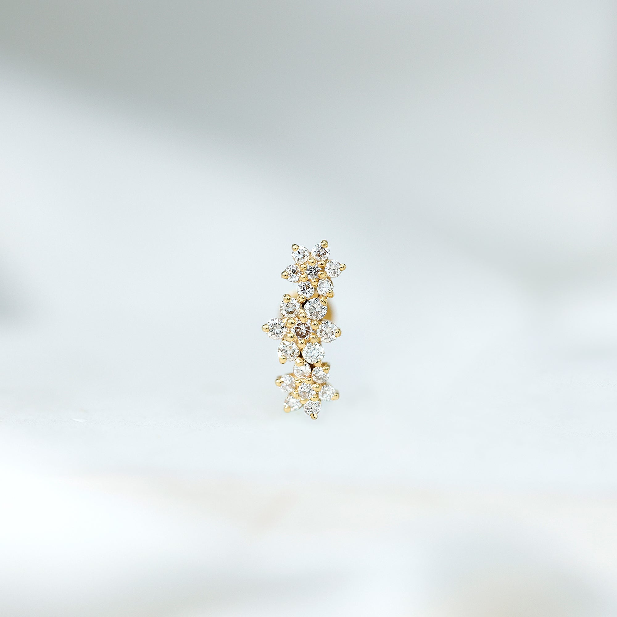 Diamond Three Flower Crawler Earring for Helix Piercing