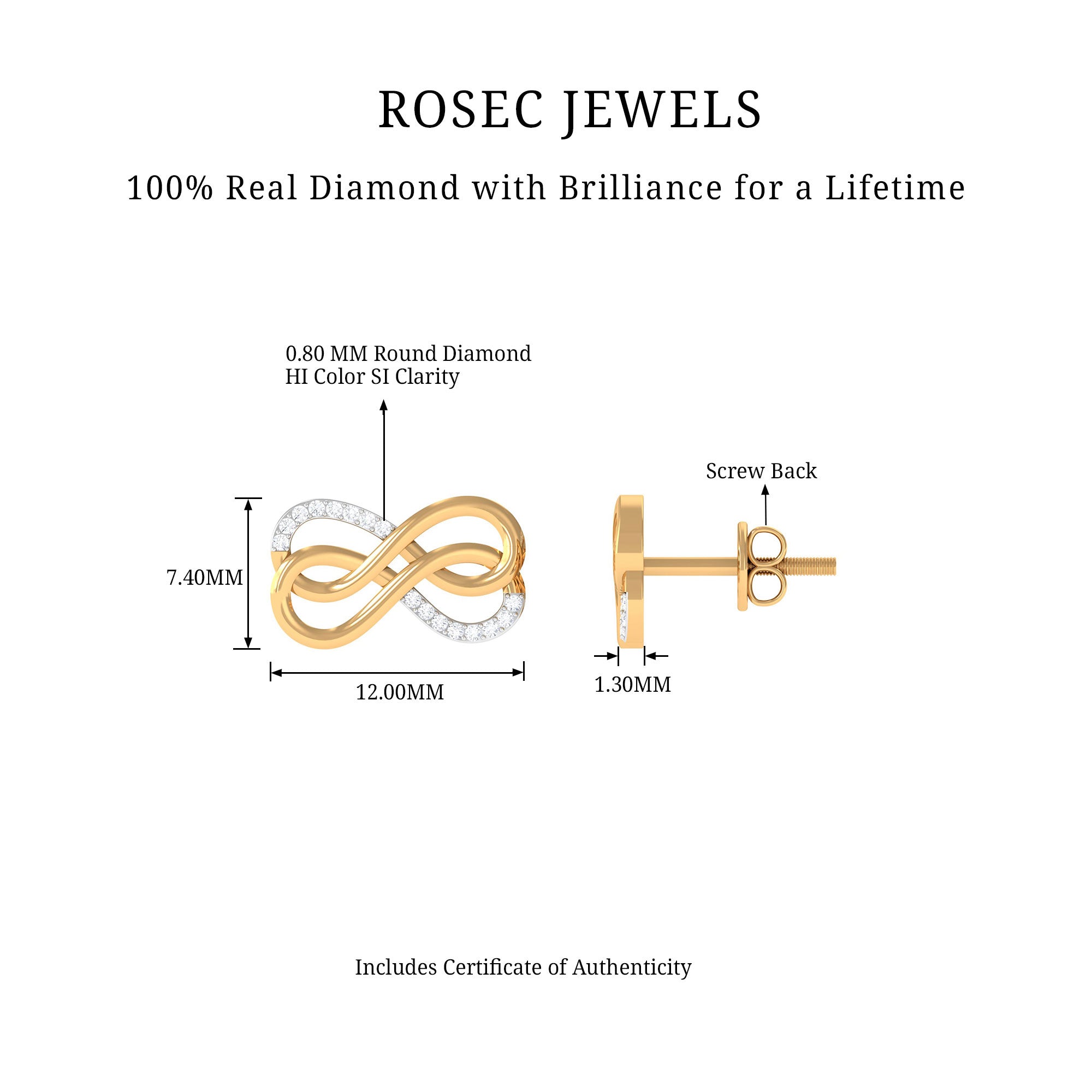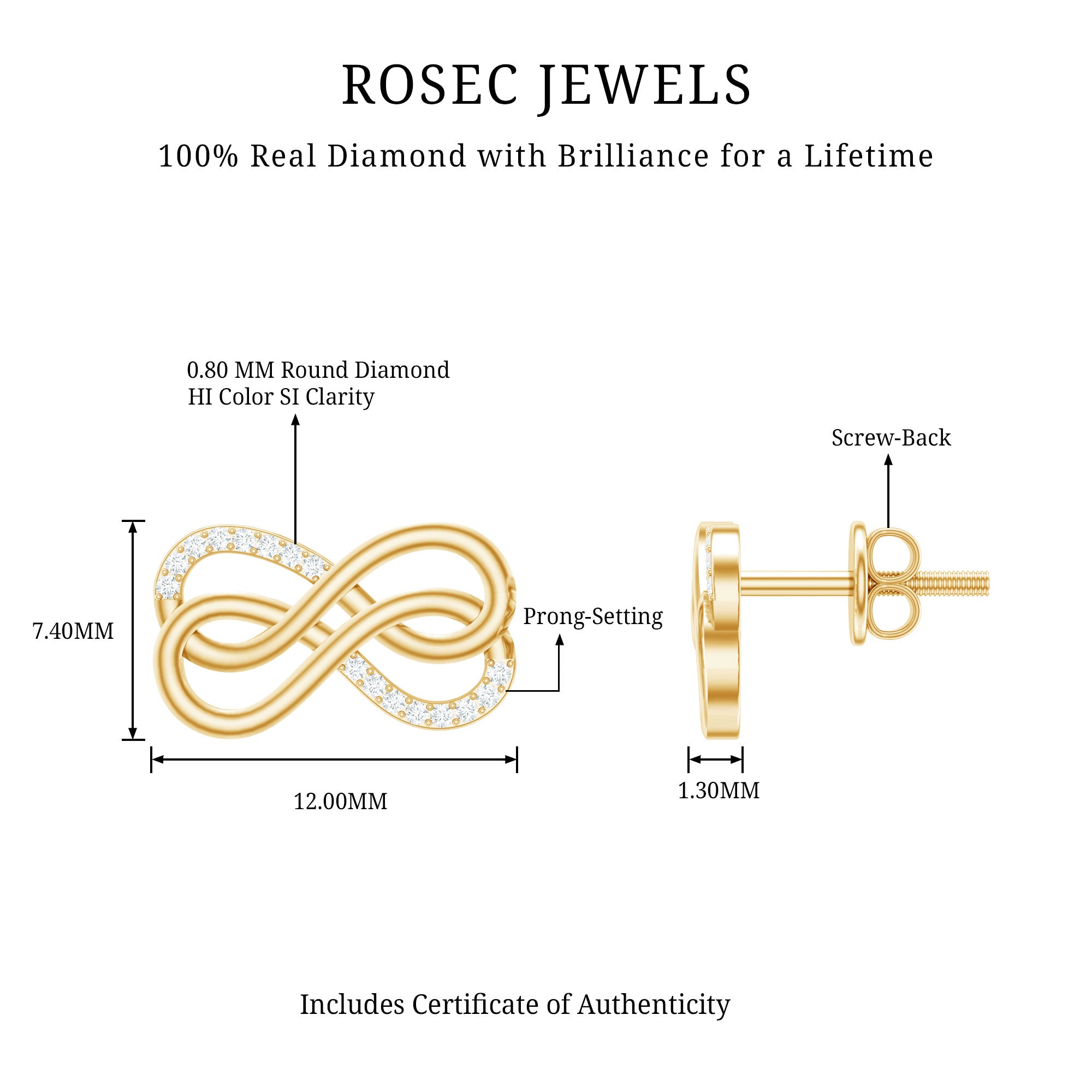 Double the charm, double the confidence - these Infinity Stud Earrings are not just pretty, they are powerful. These stunning Diamond Infinity Earrings are a perfect representation of everlasting beauty and infinite love. The design showcases a sparkling twin infinity motif that intertwines to form an elegant appearance, adorned with diamonds set in prongs. Crafted for both comfort and safety, the screw-back closure guarantees a secure and easy fit for these Diamond Stud Earrings, making them perfect for daily use or special events. You can give these Twin Infinity Earrings as a heartfelt gift or as a personal expression of timeless elegance; they are a cherished treasure for a lifetime. Whether worn with your favorite everyday looks or reserved for special occasions, these Womens Diamond Earrings bring effortless elegance and a message that lasts a lifetime. After all, some connections are too strong to be expressed by just one infinity - so why not wear two? Let your ears shine with this double powerful symbol of forever.