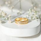 Celebrate your relationship with a design that twists but never breaks, just like your love. This Twisted Eternity Ring is a shining symbol of everlasting love, blending vintage elegance with timeless charm. The Twisted Diamond Band has a stylish and polished look, featuring stunning Round Brilliant Diamonds set in prong setting at the center of each engraved leaf-like detail. The edges are delicately designed with a twisted rope-like pattern framing the band, adding a touch of old-world aesthetics. Our Diamond Eternity Band is crafted with precision and comes in US ring sizes from 3 to 13, ensuring it fits your finger perfectly. Whether you are celebrating an anniversary, a significant milestone, or simply want to express your love to that special someone, this Diamond Wedding Band conveys your feelings without saying a word. Its graceful and wide band design makes it a standout piece on its own. Perfect for anyone who appreciates meaningful and traditional designs, this Wedding Anniversary Band is more than just jewelry; it represents love, commitment, and connection.
