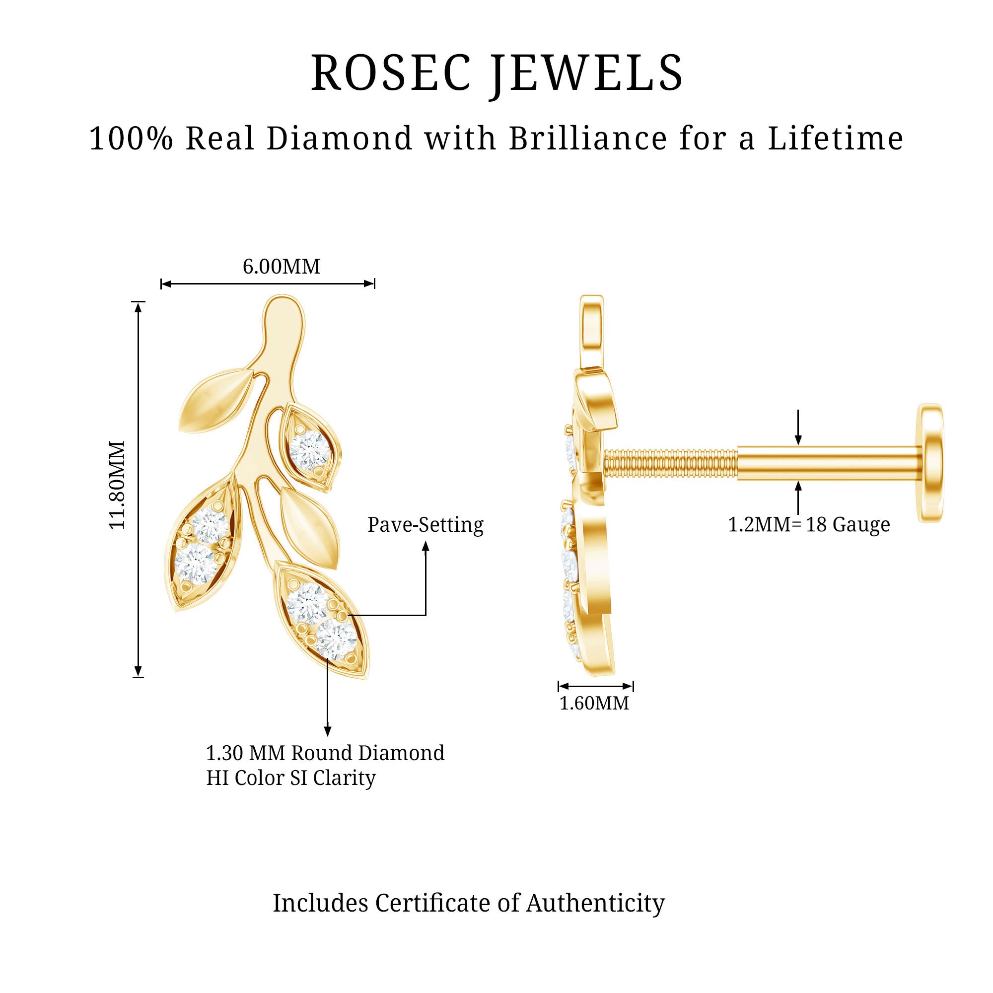 Experience the allure of natural elegance with our exquisite Vine Leaf Earring – a perfect blend of sophistication and organic charm. Picture a delicate swirling vine, adorned with glistening diamond intricately framed in leaf-shaped splendor.Versatile and chic, it graces multiple piercings like Helix, Cartilage, or Upper Lobe, offering a touch of natural beauty to every curated look. The simplicity of its Flat Back Closure ensures a comfortable and secure fit.Why wait? Elevate your collection with this captivating Cartilage Earring today and carry a piece of natural beauty wherever your journey takes you.