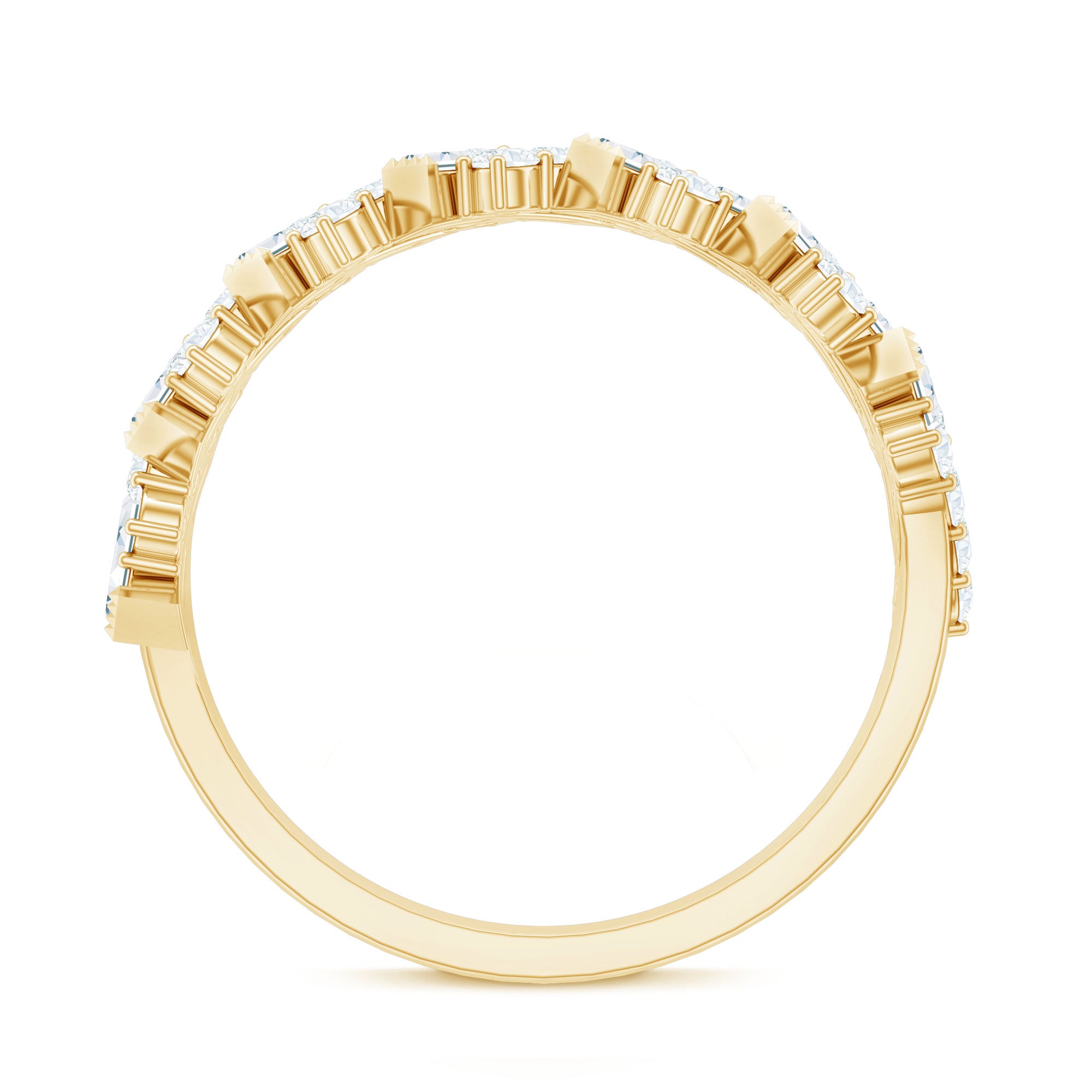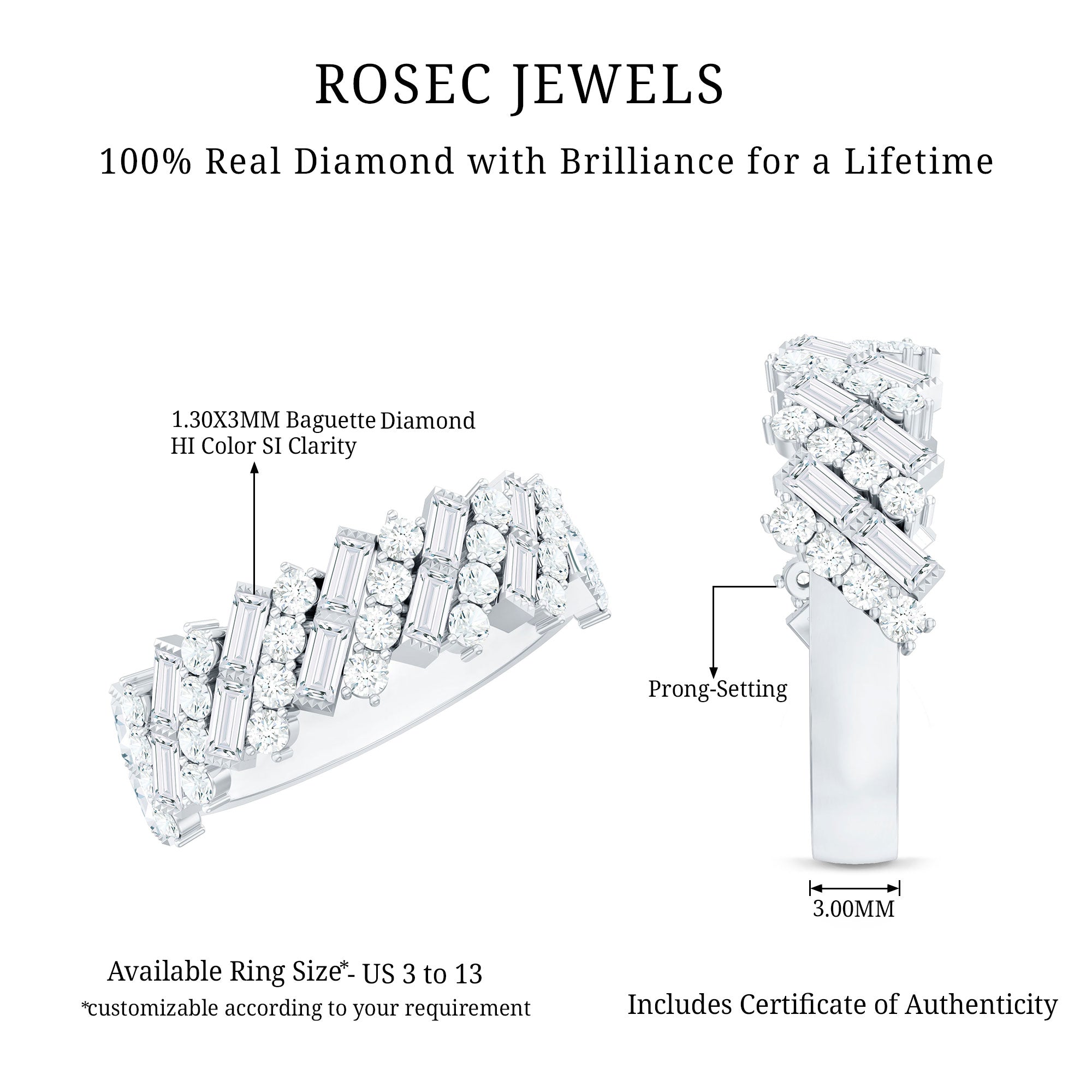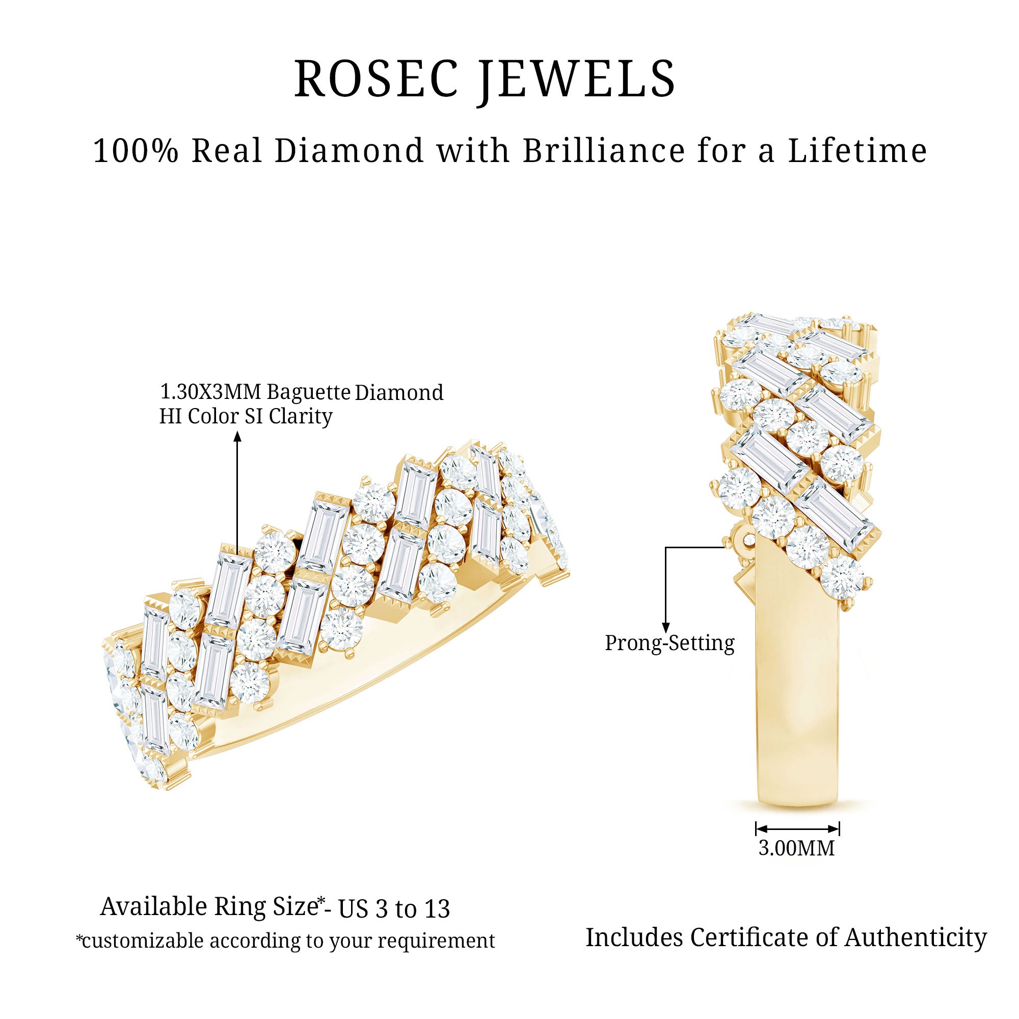 Stay together through thick and thin with this diamond wedding band ring as it shows a strong connection between two souls. The ring features baguette-shaped and round-shaped small diamonds encrusted over the ring, creating a sparkling effect that is sure to get much attention. The prong setting ensures the safety and durability of the stones. This is perfect for those who appreciate beauty with uniqueness.