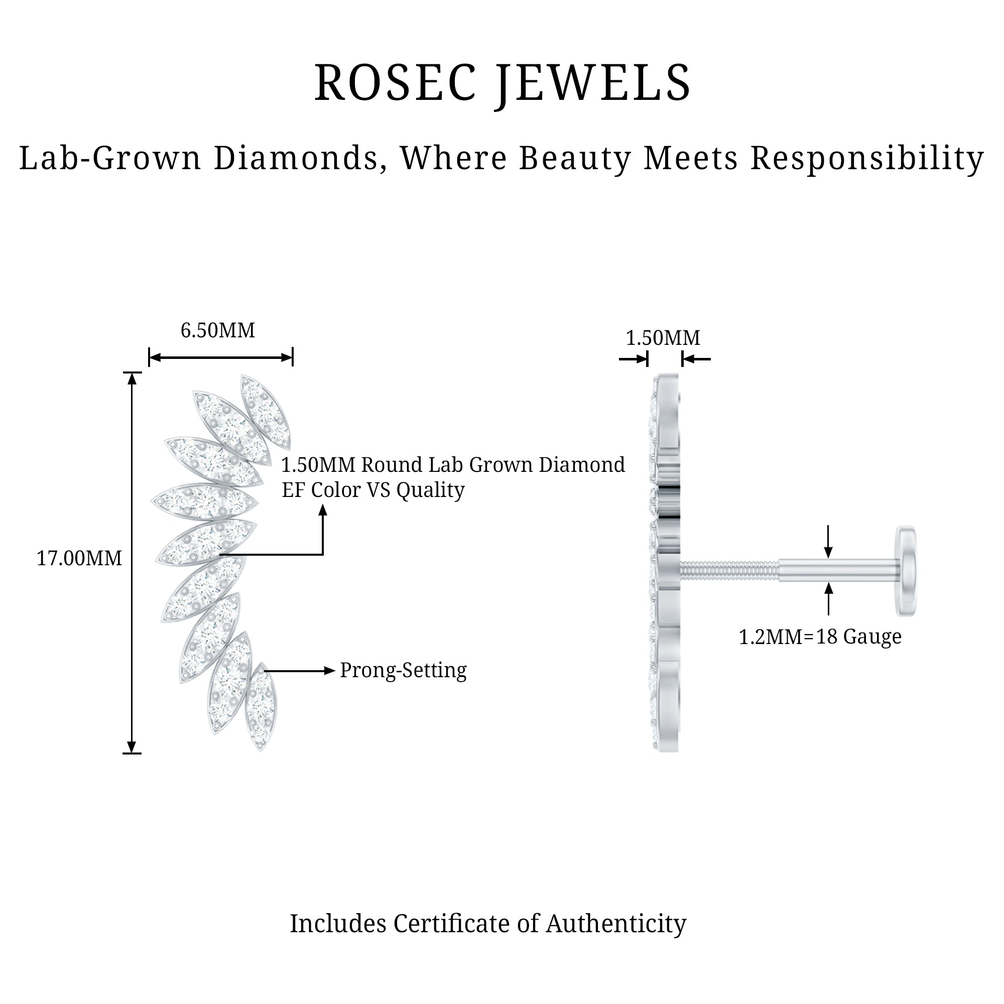 Check out this stunning Diamond Climber Earring, which is a fantastic addition to your ear stack. This earring showcases sparkling Diamonds arranged in marquise shapes, giving off a dazzling, eye-catching shine. Its unique wing-shaped design brings a special flair to your piercing collection, helping you stand out from the crowd. You can wear this Diamond Ear Piercing in various spots like Cartilage, Helix, and Upper lobe, allowing you to express your style with ease. This Diamond Wing Earring makes for an unforgettable gift to surprise your loved ones. You can pair it with your casual or party outfits to shine like a star. The Diamond Ear Crawler is the simplest way to elevate your style to new levels. It features a secure flat back closure, making it easy to wear and perfect for transitioning from day to night. For a trendy look, combine this Curved Earring with gemstone studs or drops. To enhance your special occasion, this Diamond Stud Earring comes in a premium storage box, ensuring a luxurious presentation for your gift.