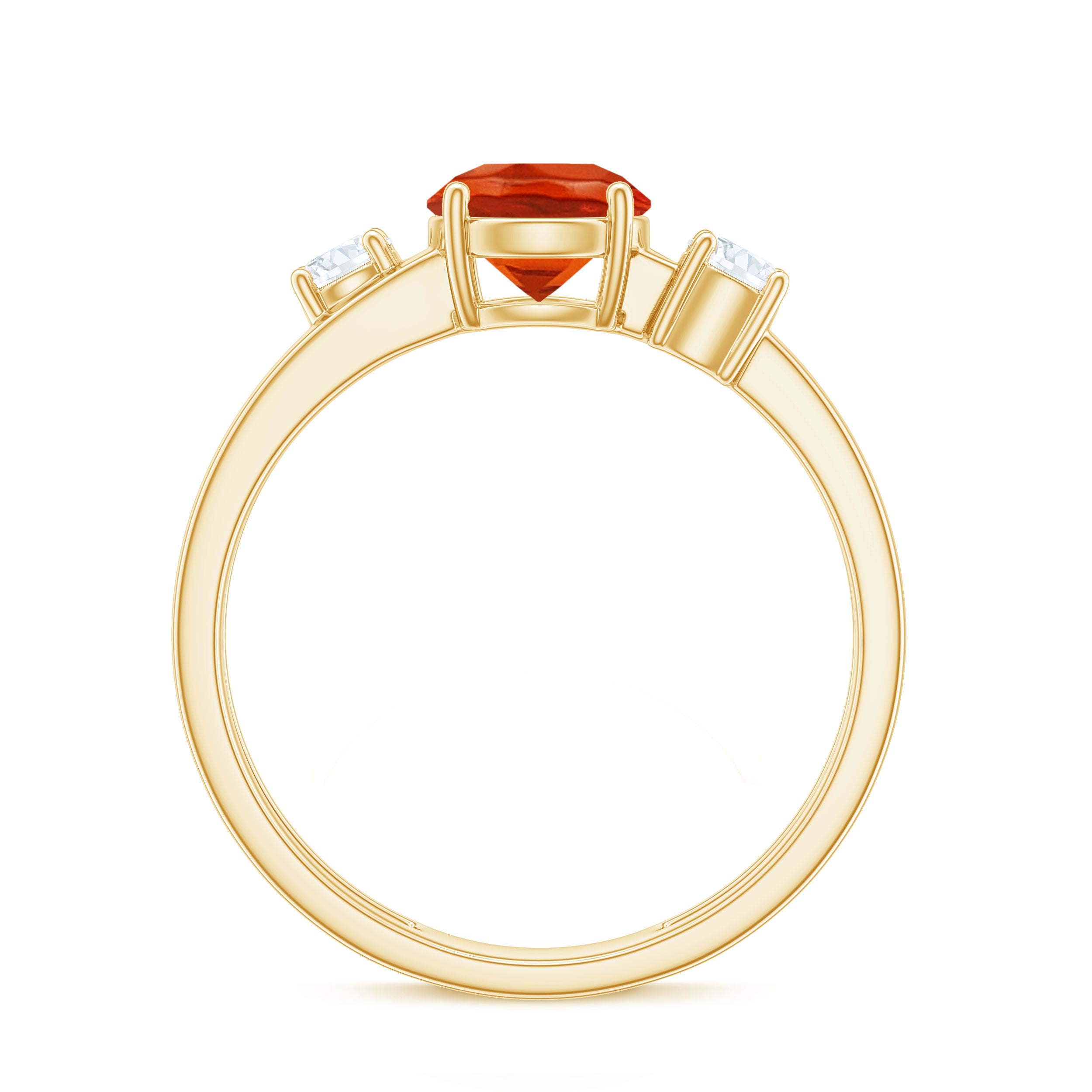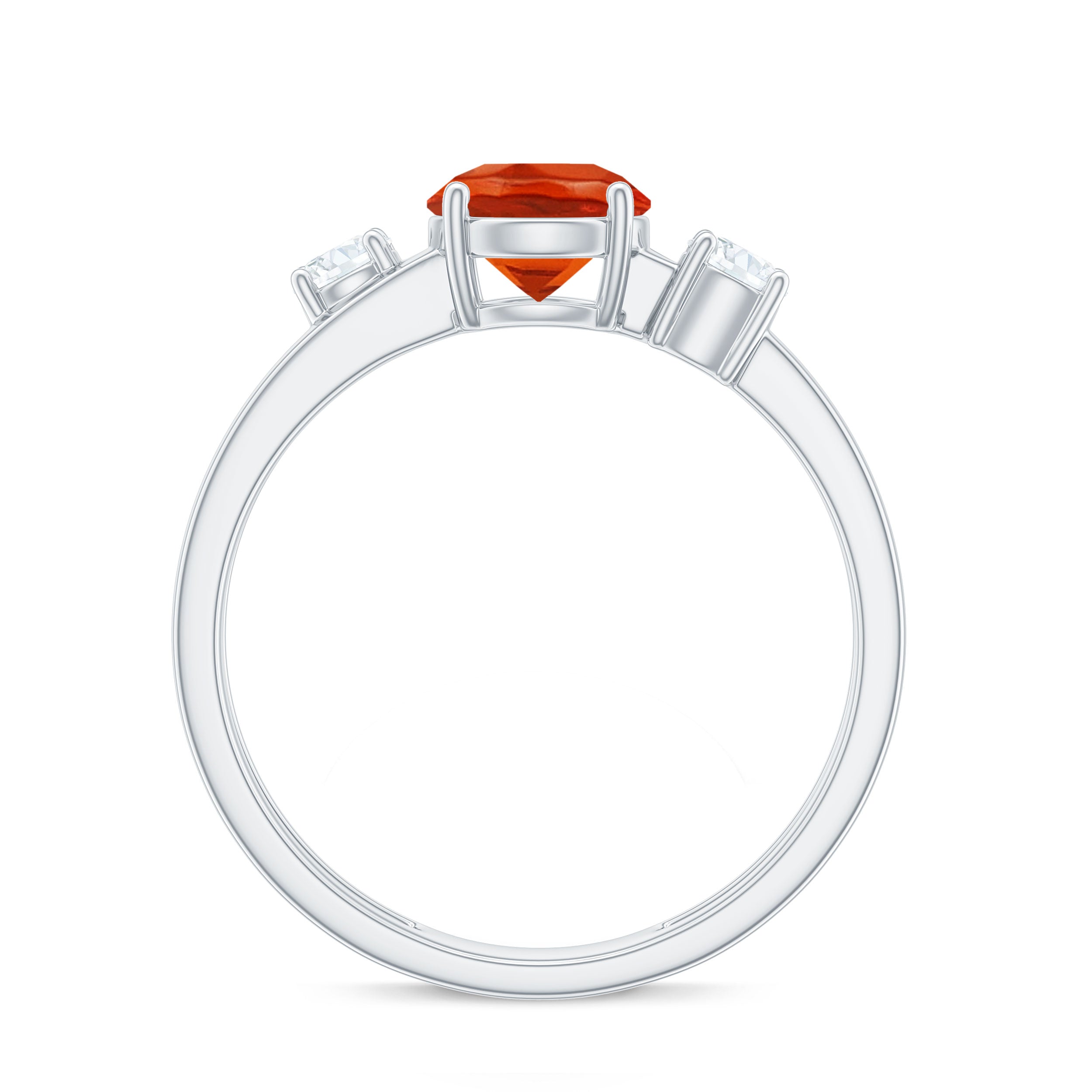 This stylish Double Band Engagement Ring is the perfect gift for someone you love. A round Fire Opal is set in a prong setting in the center of this engagement ring, along with a round Diamond. This Fire Opal Engagement Ring is made from gold metal.