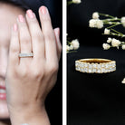 Celebrate elegance and enduring love with this Moissanite Wedding Band - a graceful piece that effortlessly blends classic sparkle with modern design. Thoughtfully handcrafted by skilled artisans, this Moissanite Stackable Ring is made using premium metal and certified gems, offering exceptional brilliance and value. This Half Eternity Ring showcases two rows of glittering princess and round cut moissanites alternately set in a prong setting that enhances their fire and beauty. The clever arrangement creates a sophisticated 2 Row Eternity Band that is eye-catching without being overwhelming, making it the perfect symbol of your lasting bond. Whether you are marking a milestone or simply adding a statement piece to your collection, this Moissanite Anniversary Band is designed to impress. It wraps around the finger with a timeless elegance that evokes both romance and nostalgia. The intricate craftsmanship ensures not only visual appeal but long-lasting comfort and durability. Comes beautifully packaged in a charming jewelry box, making it an ideal gift or a treasured keepsake for yourself. With a variety of ring sizes available, you’re sure to find the perfect fit for your special day or everyday sparkle. Make every moment shine with this stunning Moissanite Eternity Band - because your love deserves nothing less than extraordinary.