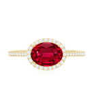 East West Set Lab Grown Ruby Oval Engagement Ring with Diamond