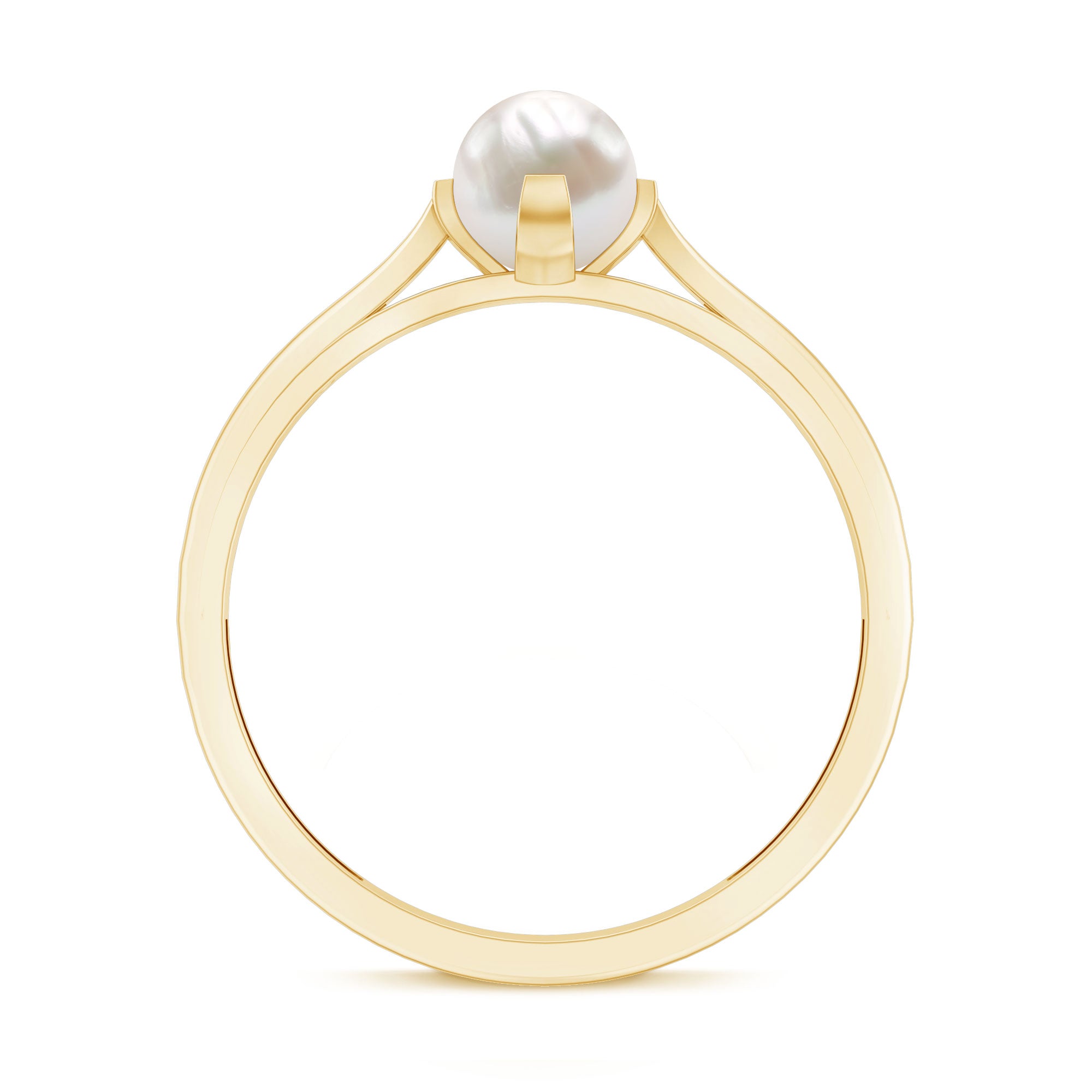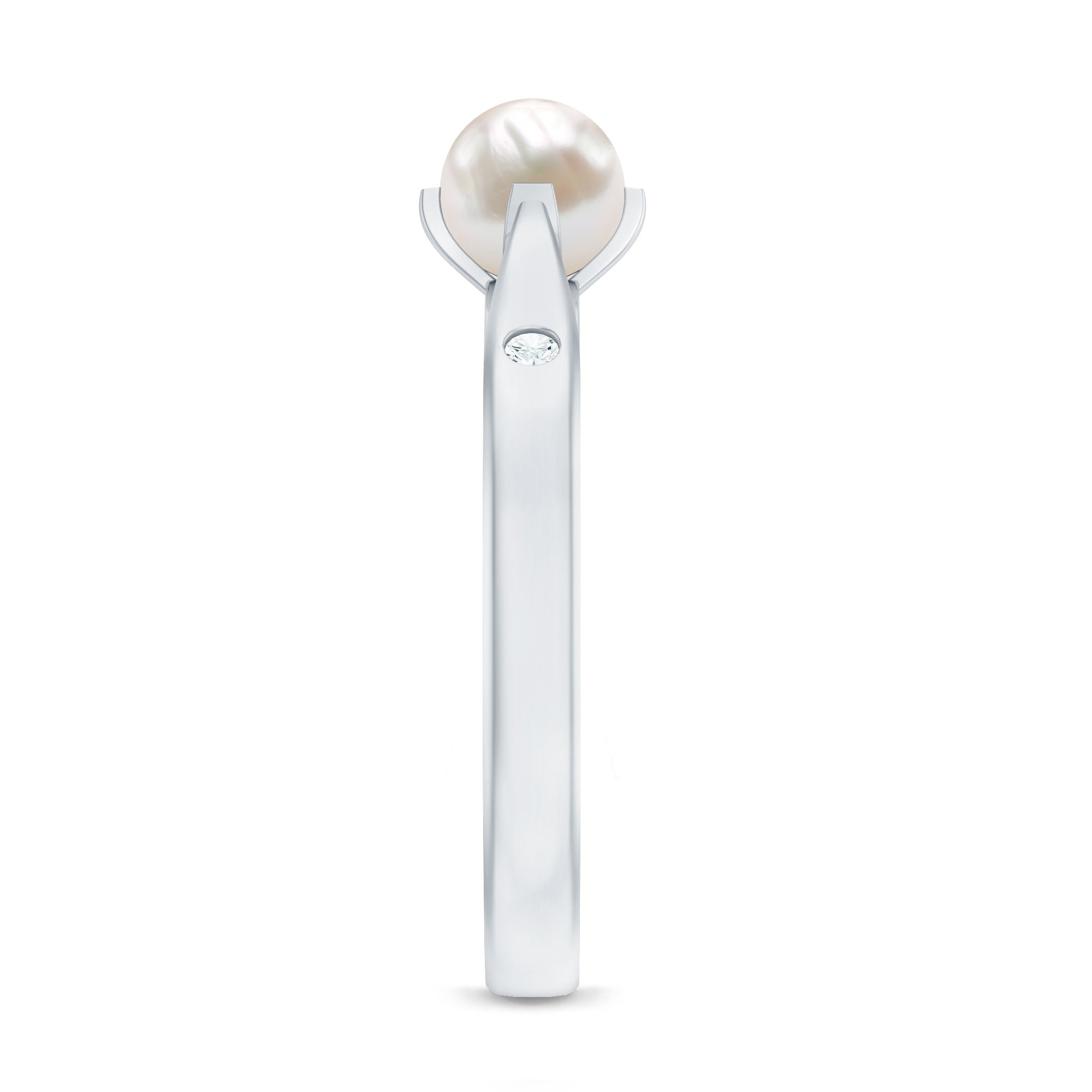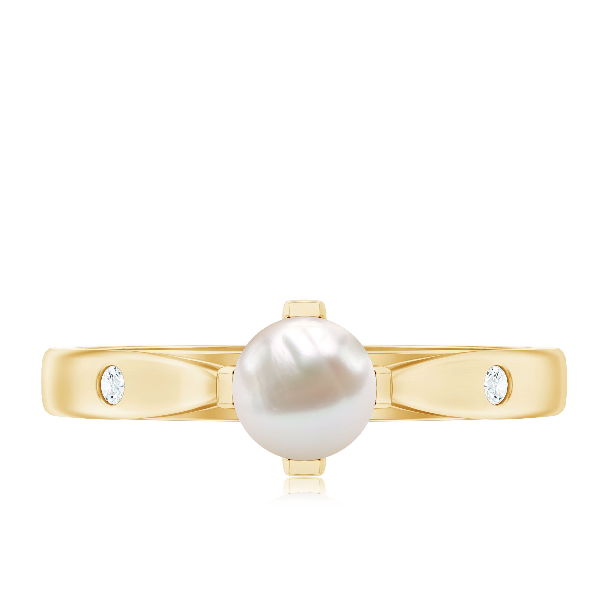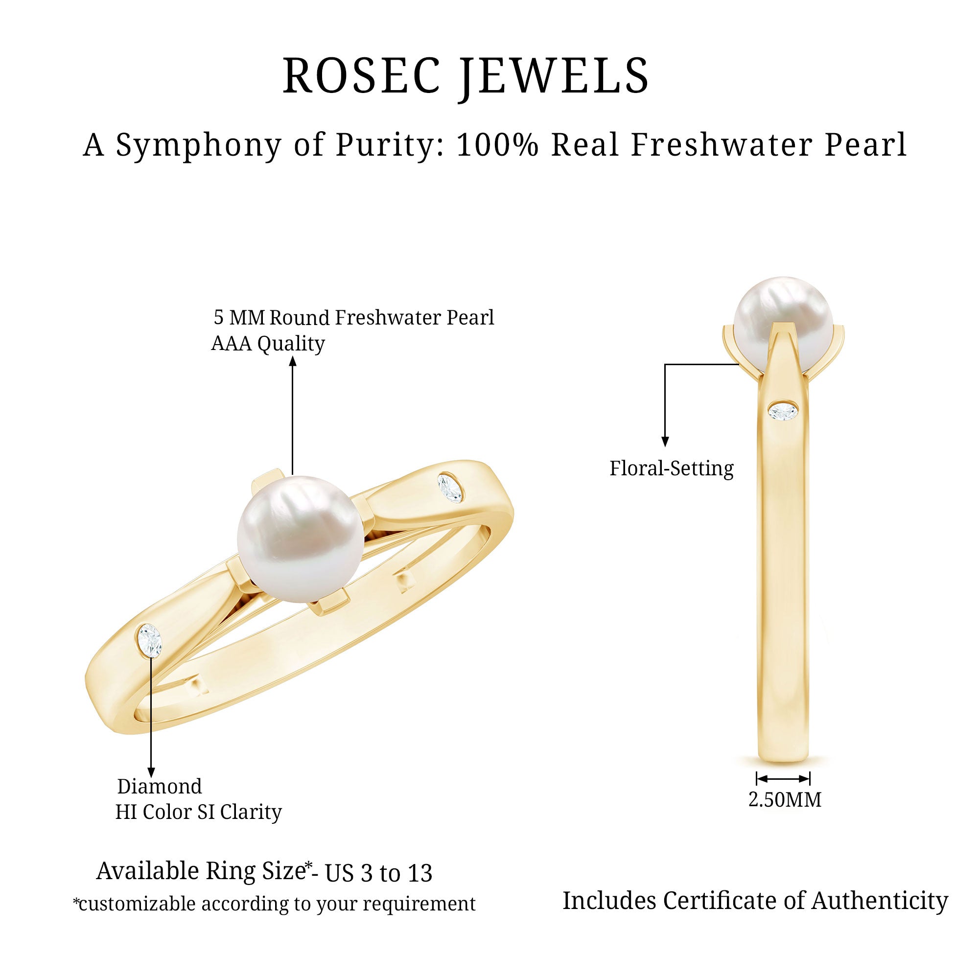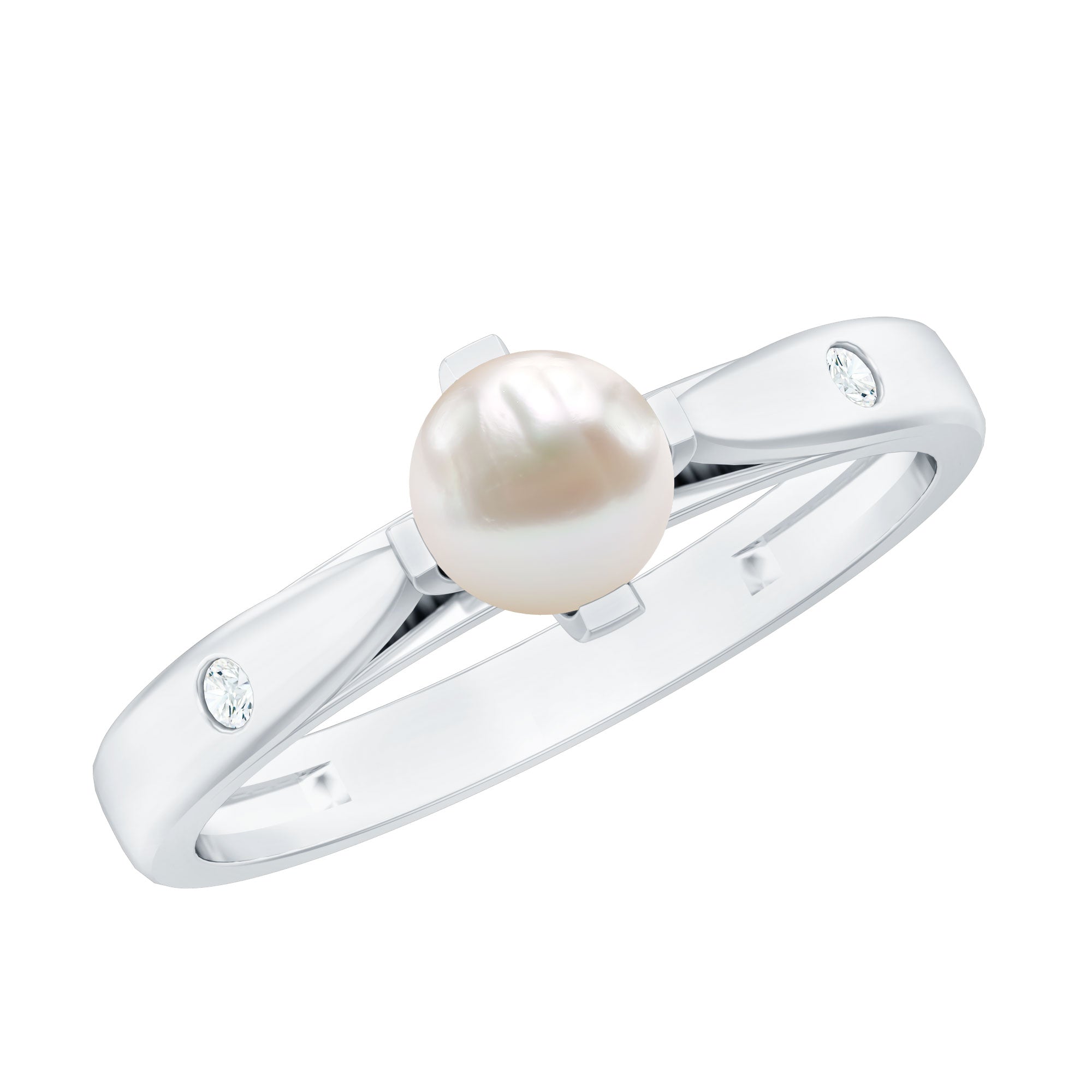Elegant Bead Set Freshwater Pearl Solitaire Promise Ring with Diamond