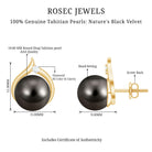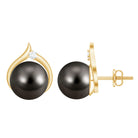 Elegant Black Pearl Solitaire Stud Earrings with Diamond