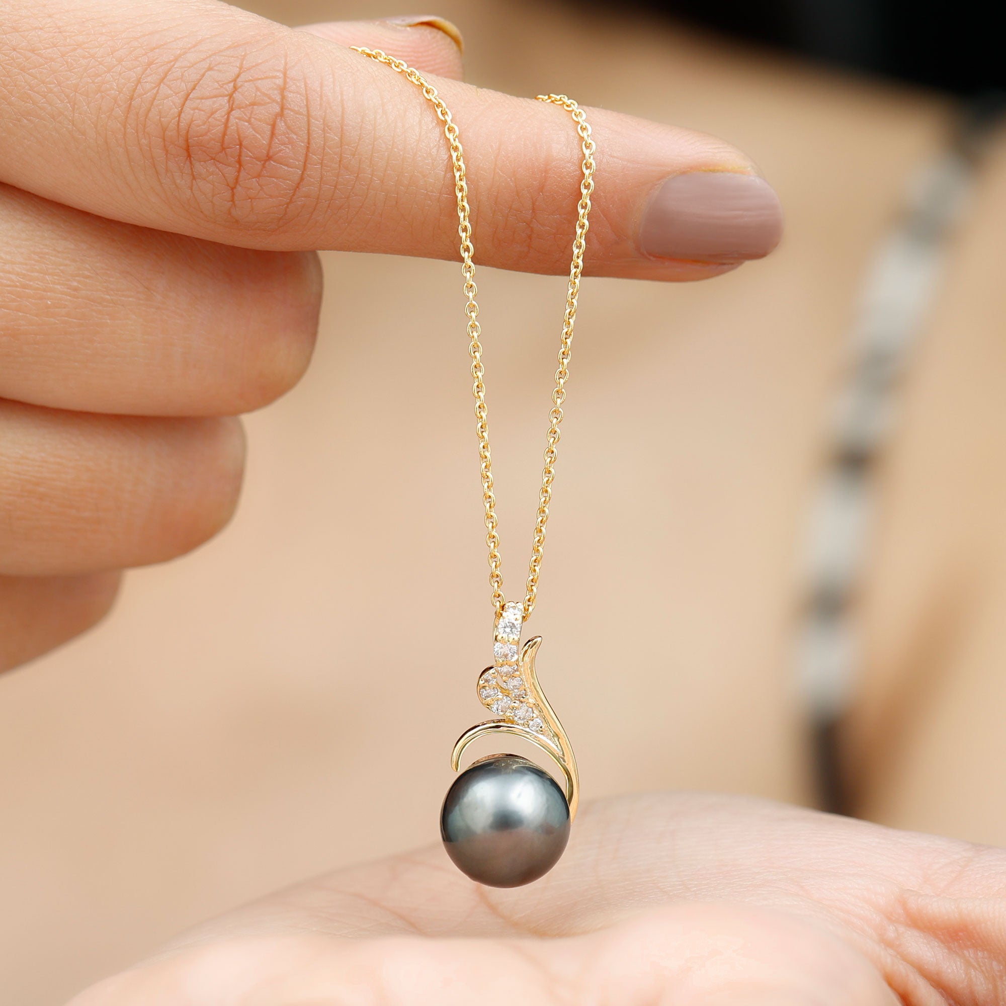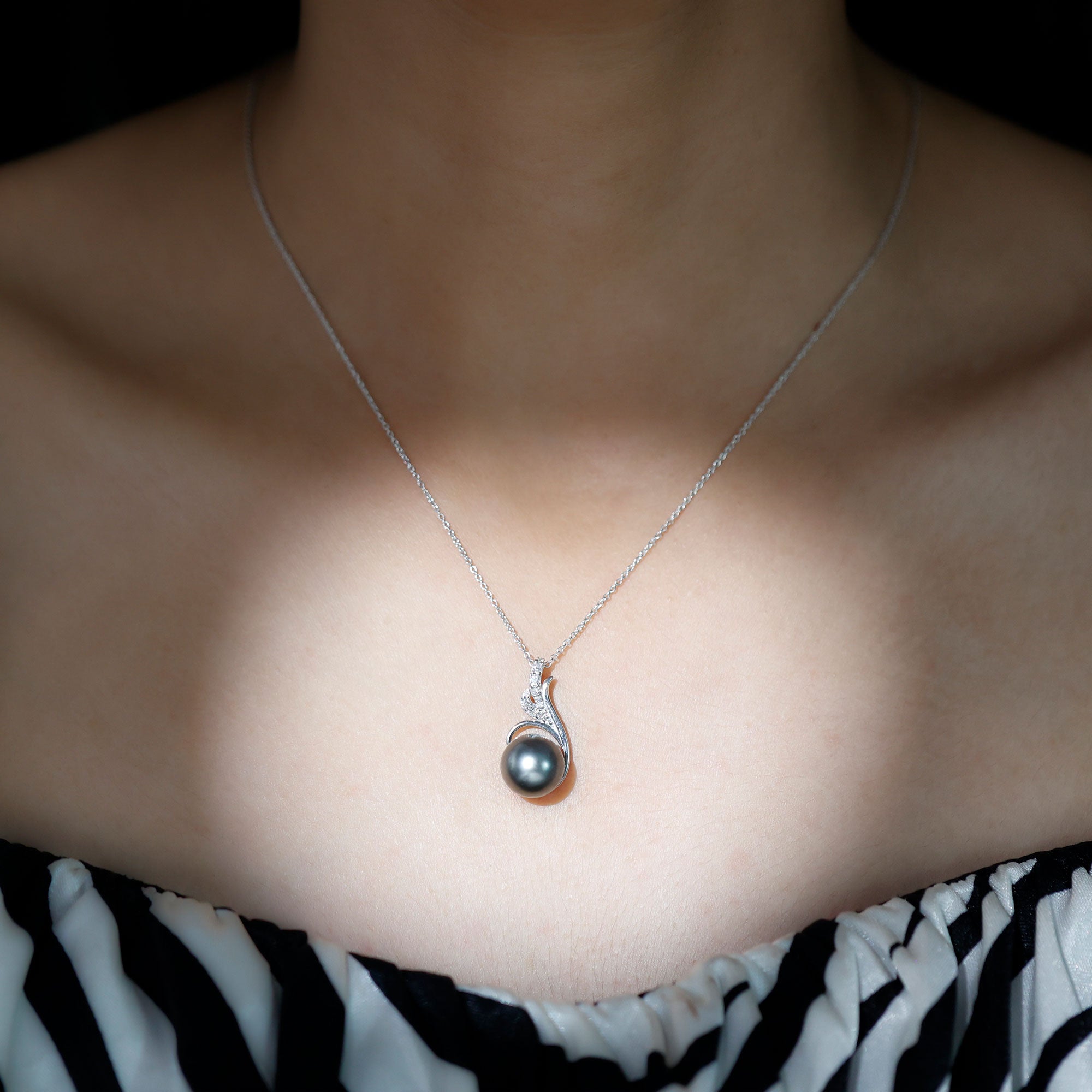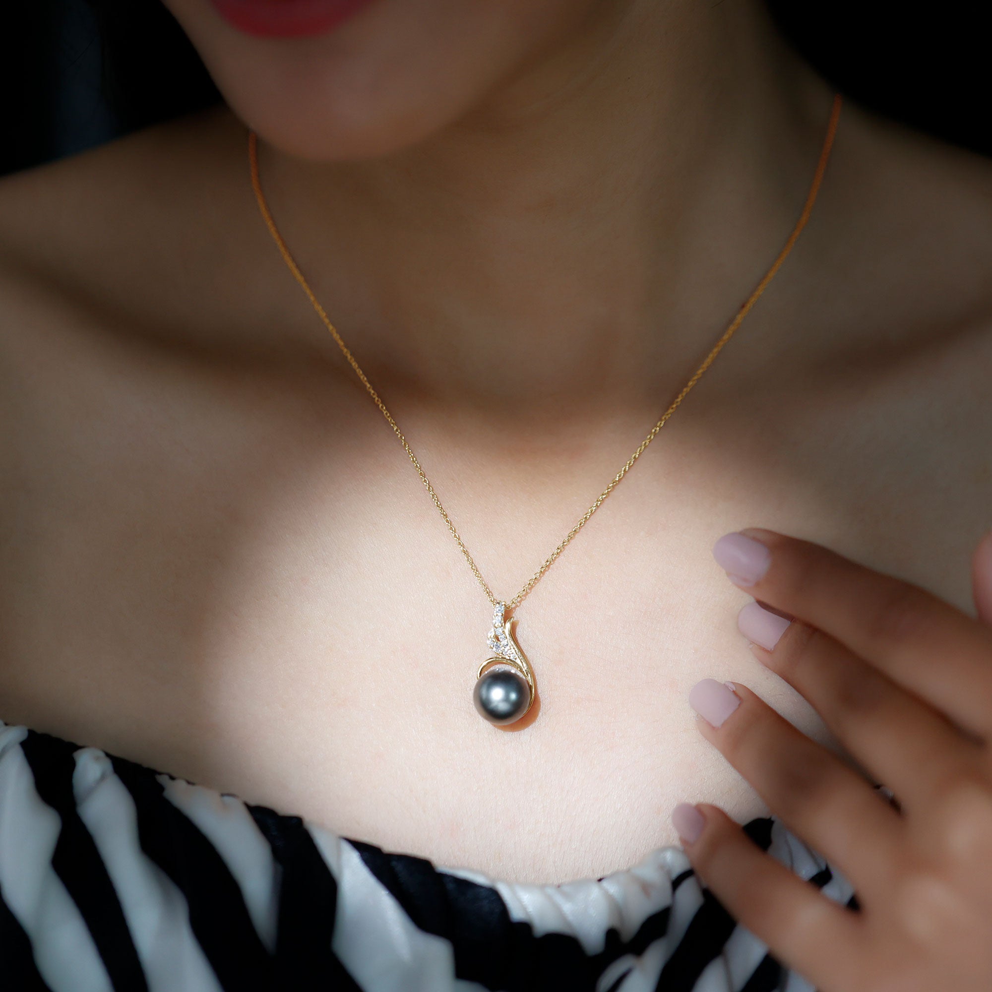 Elegant Black Tahitian Pearl Designer Pendant with Diamond