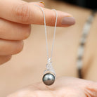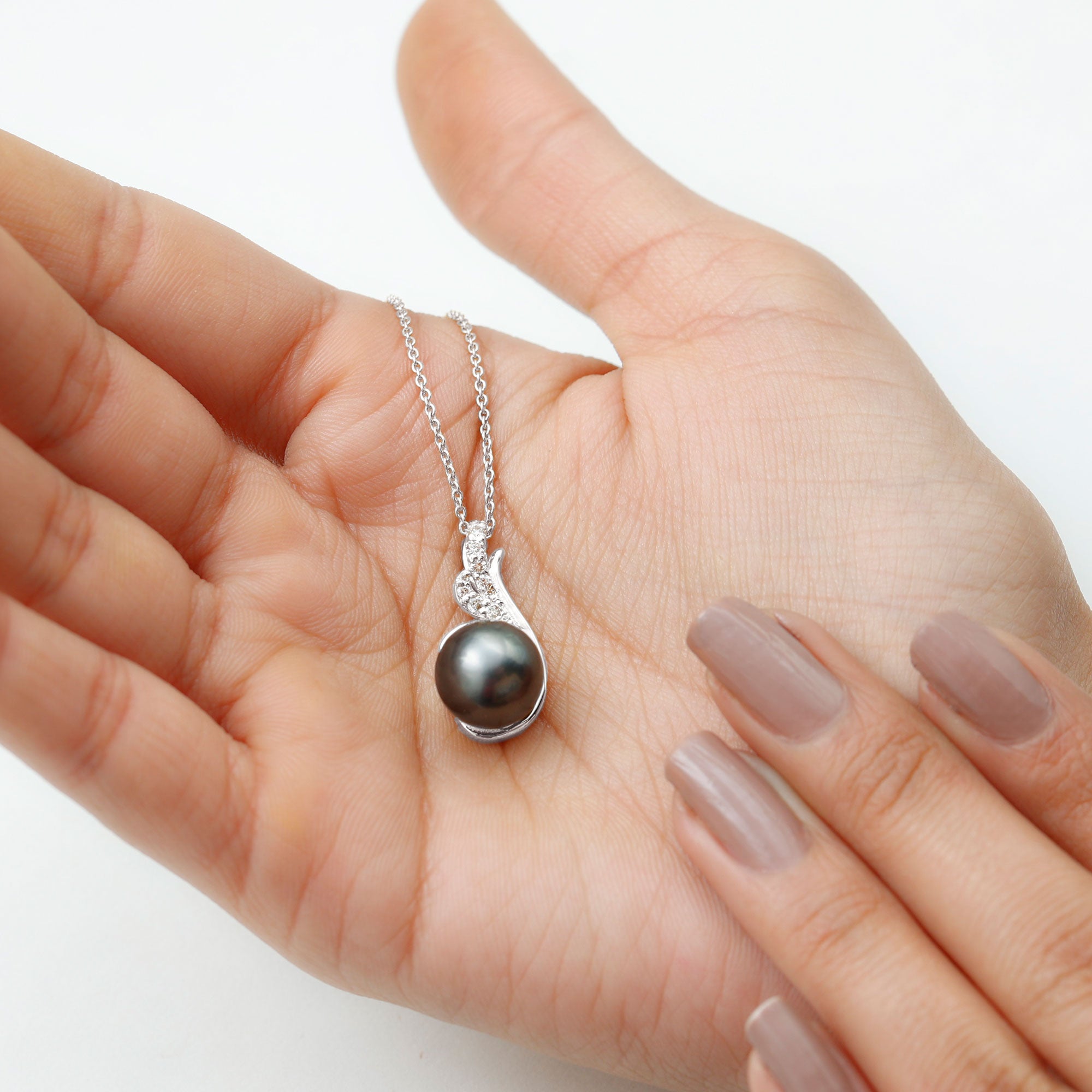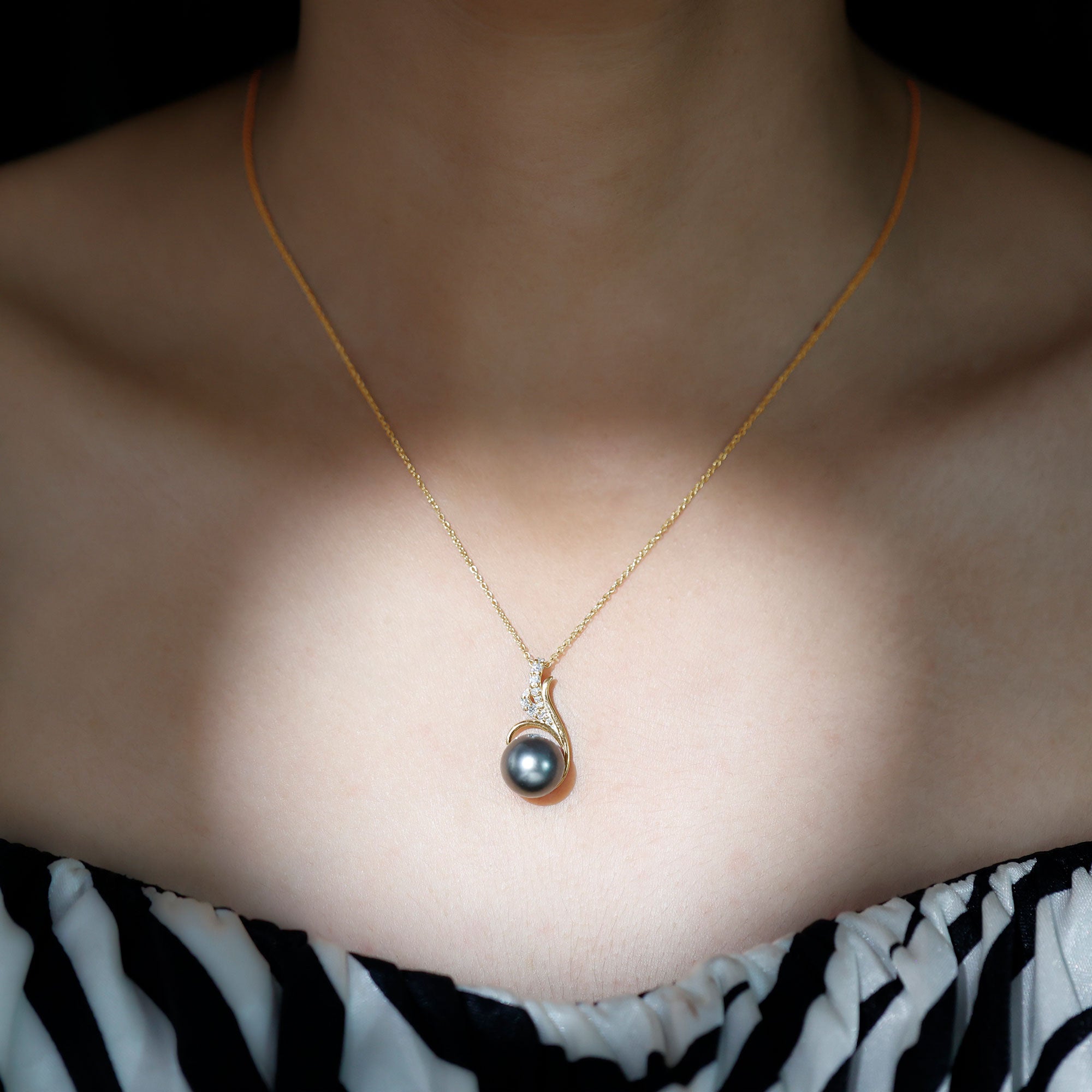 Indulge in the allure of this elegant Pearl Designer Pendant adorned with dazzling Diamond gemstones. The lustrous black Tahitian pearl takes center stage, exuding sophistication and beauty. The intricate design and the sparkling accents make this pendant a perfect choice for adding a touch of luxury to any ensemble.