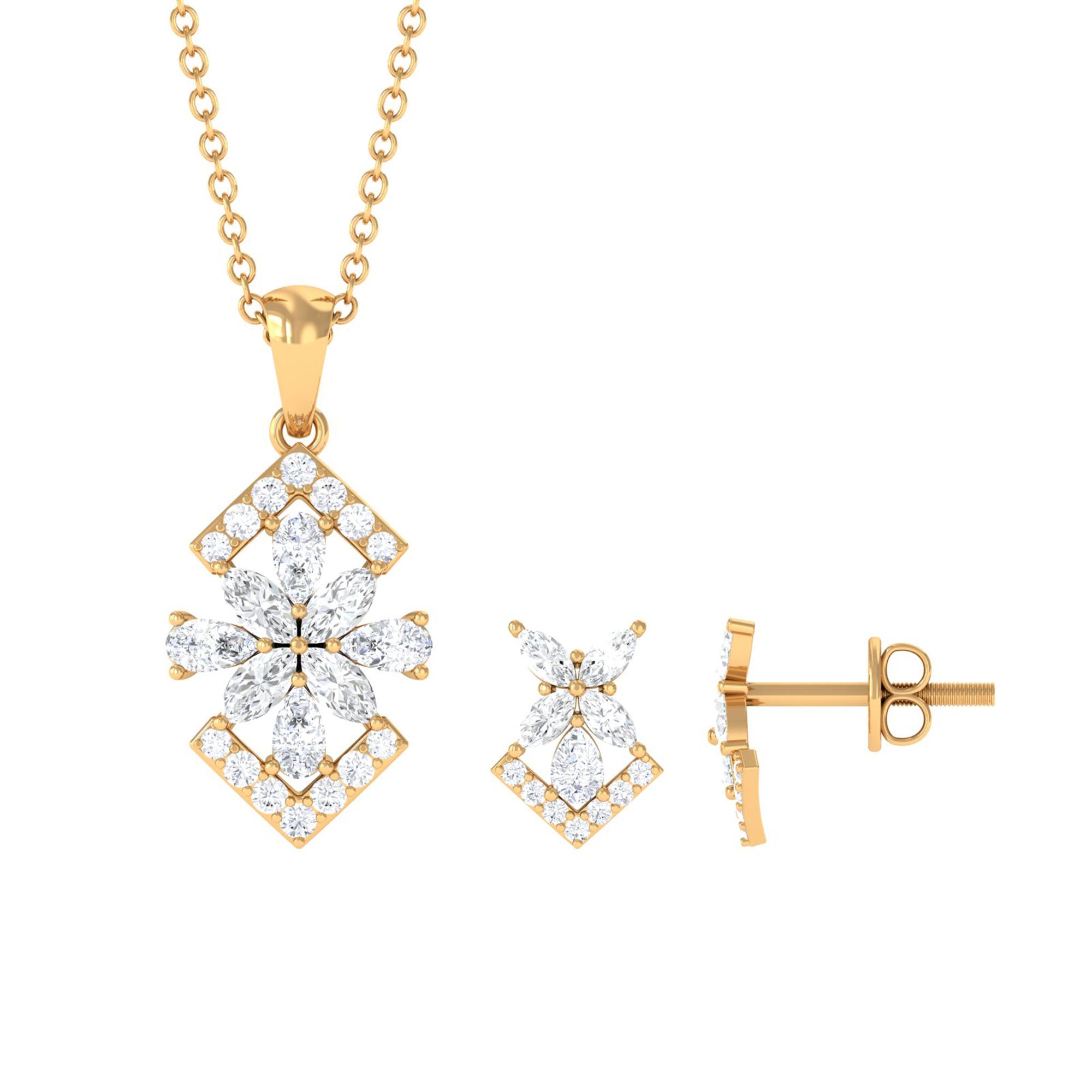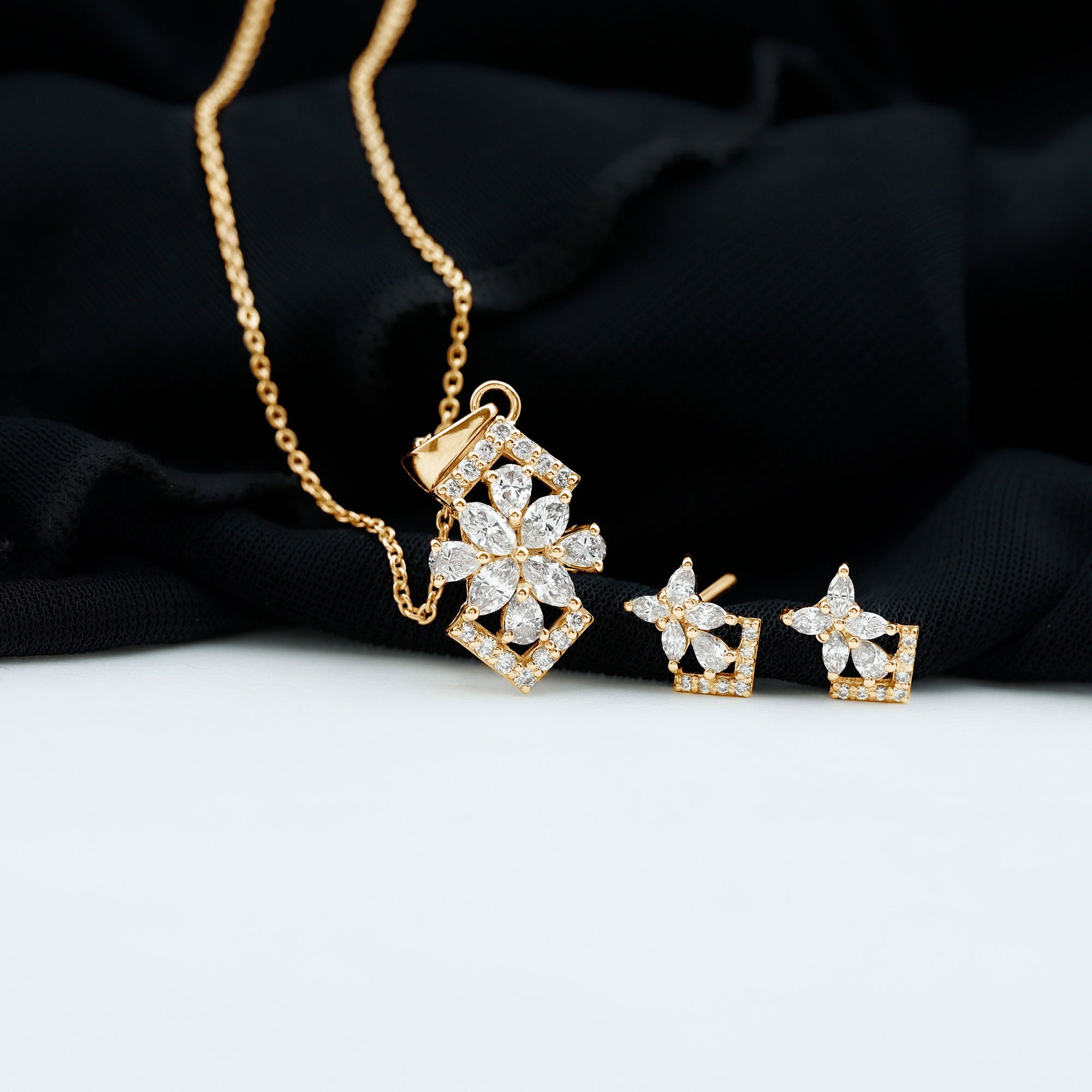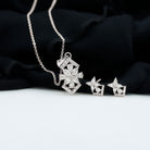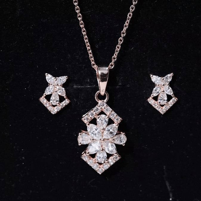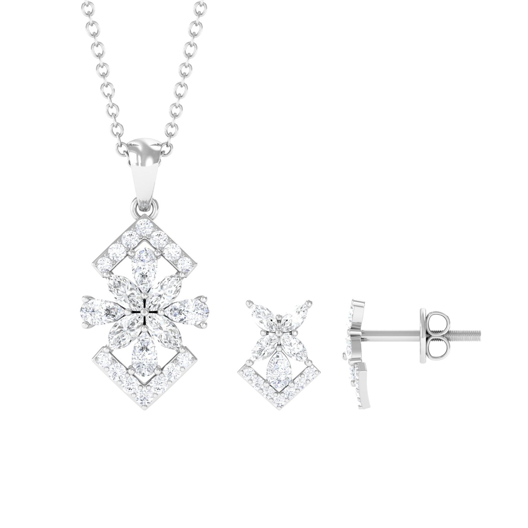 Elegant Diamond Flower Pendant Earrings Set