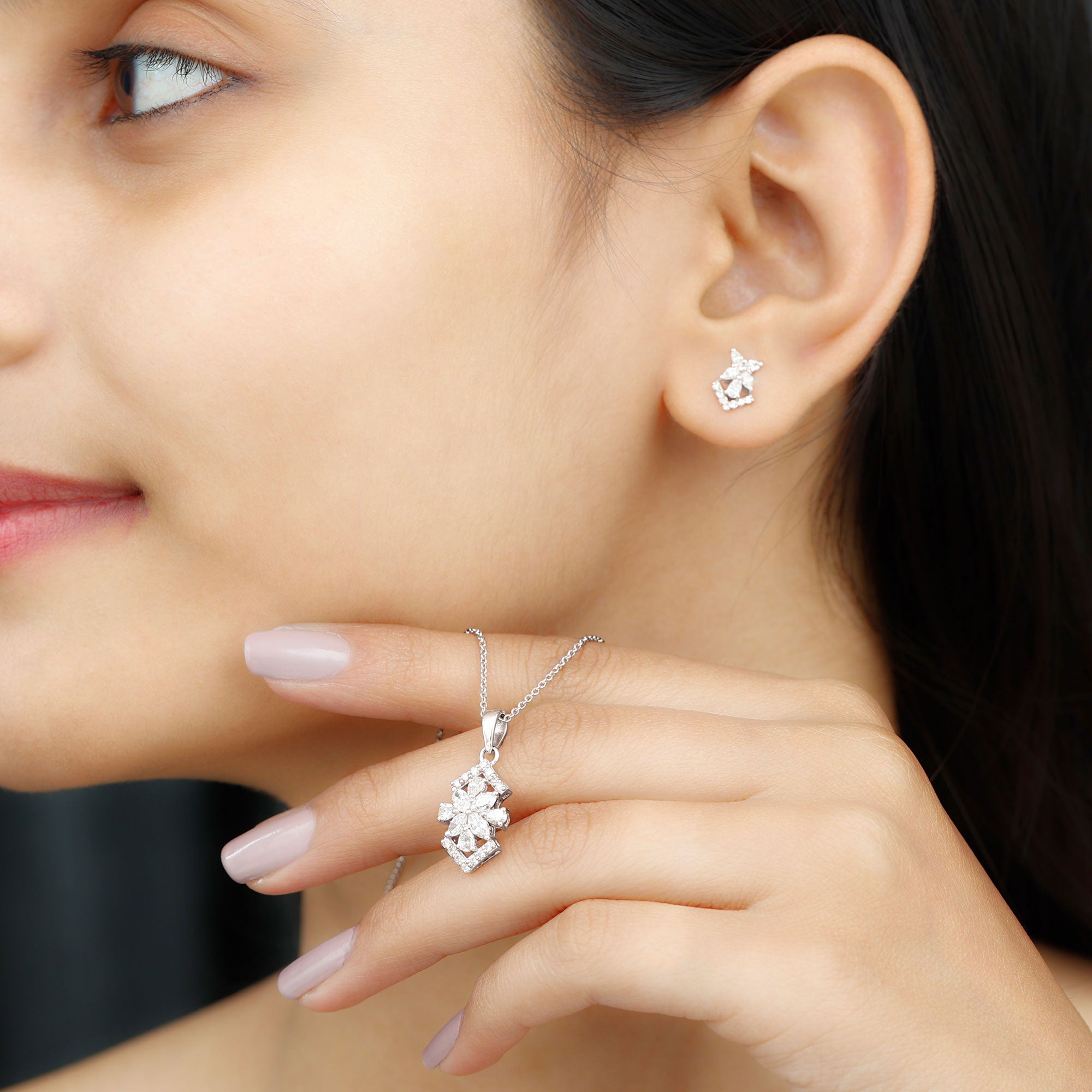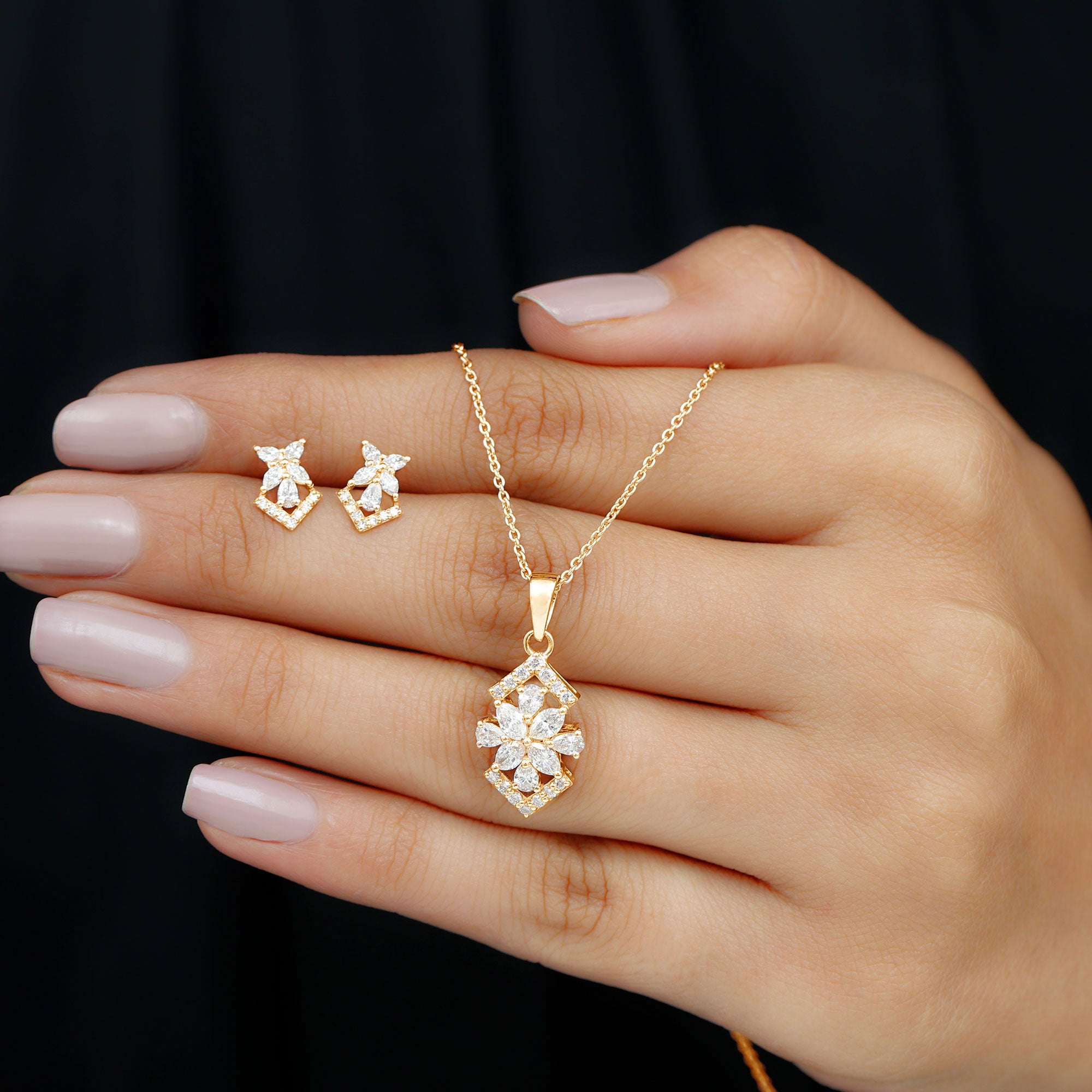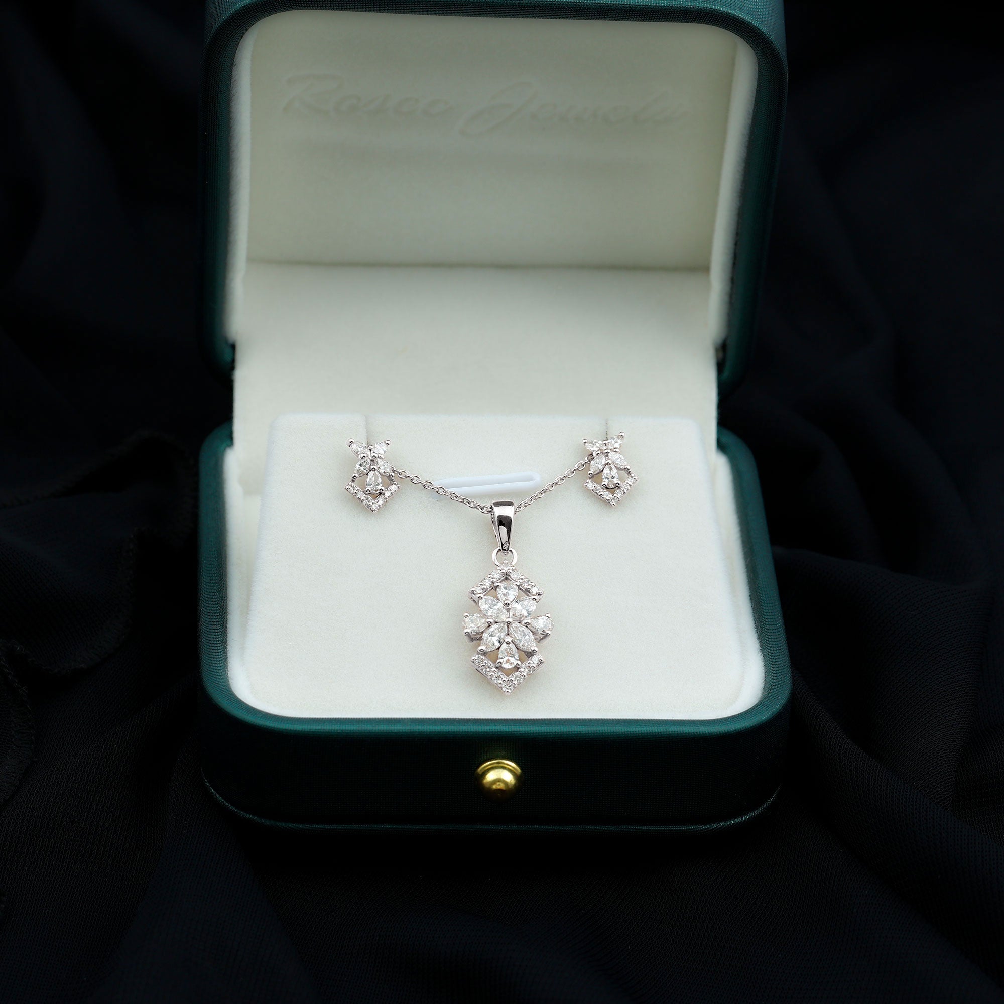 Elegant Diamond Flower Pendant Earrings Set