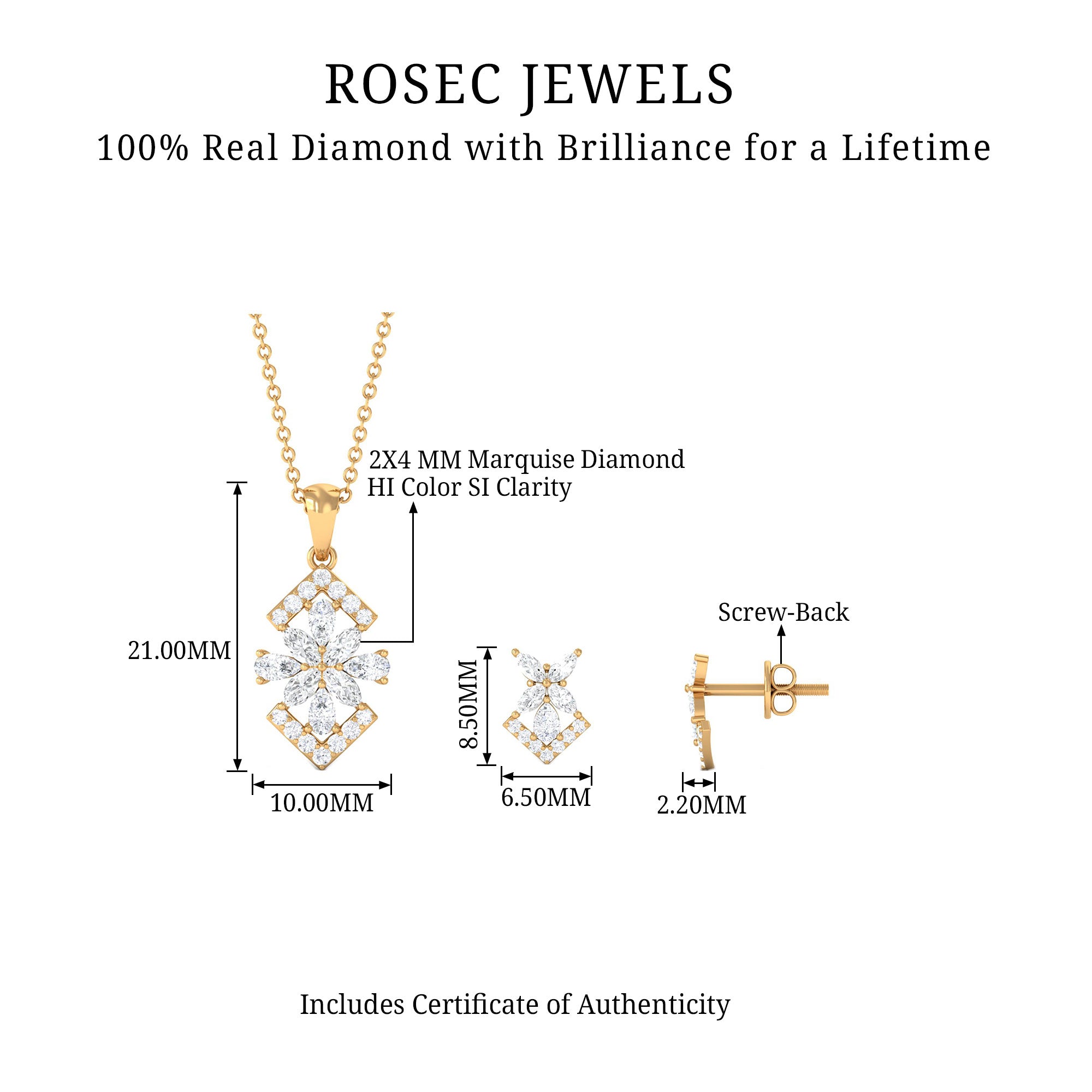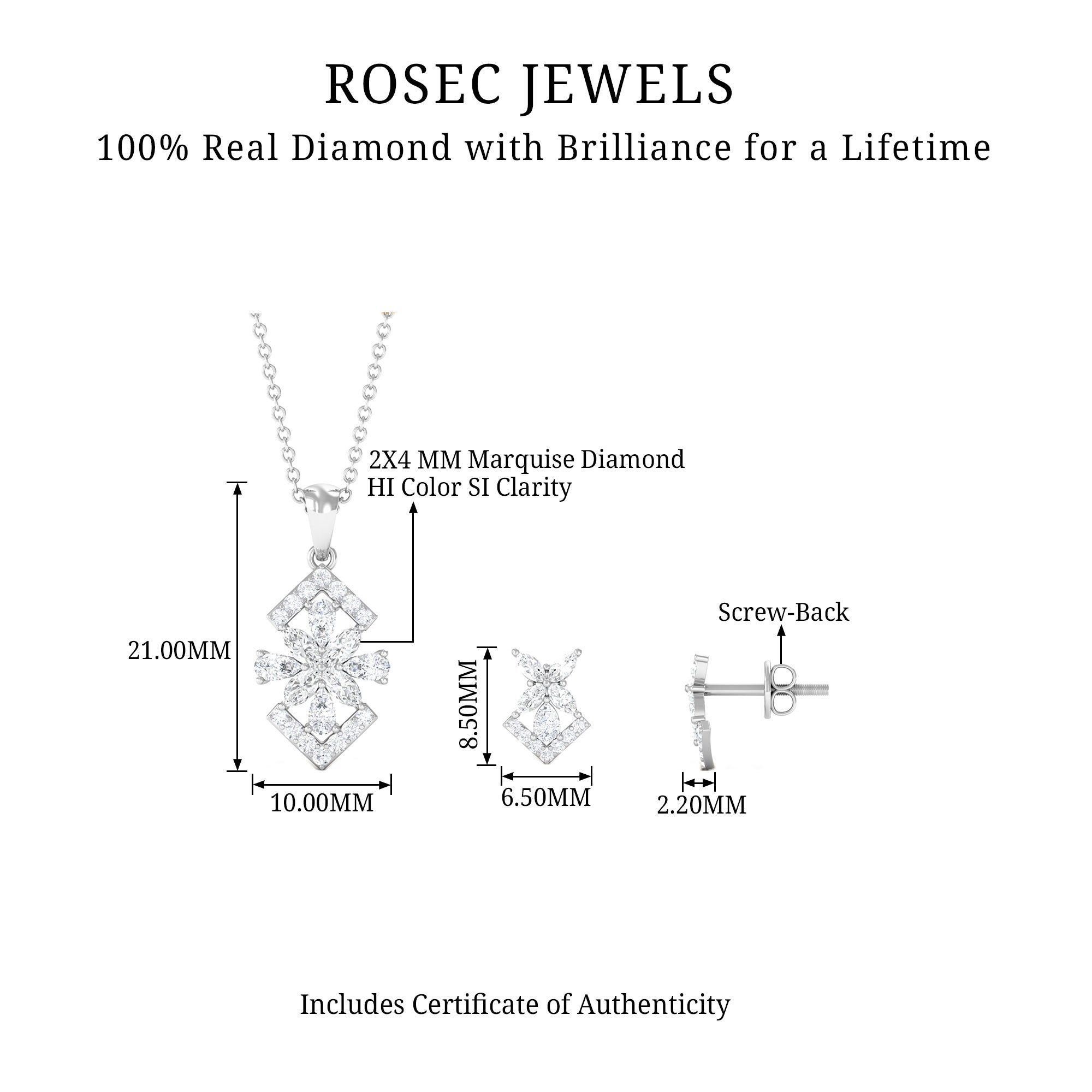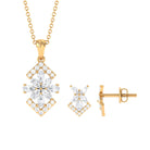 Capture the heart of your beloved and leave her in awe with this elegant Diamond Jewelry Set. The Floral Jewelry Set showcases the timeless beauty of Marquise, Round, and Pear Cut Diamond, delicately placed in a prong setting to enhance its charm. This enchanting Art Deco Pendant and Earrings Set is the epitome of fine jewelry, making it the perfect choice for a special occasion.