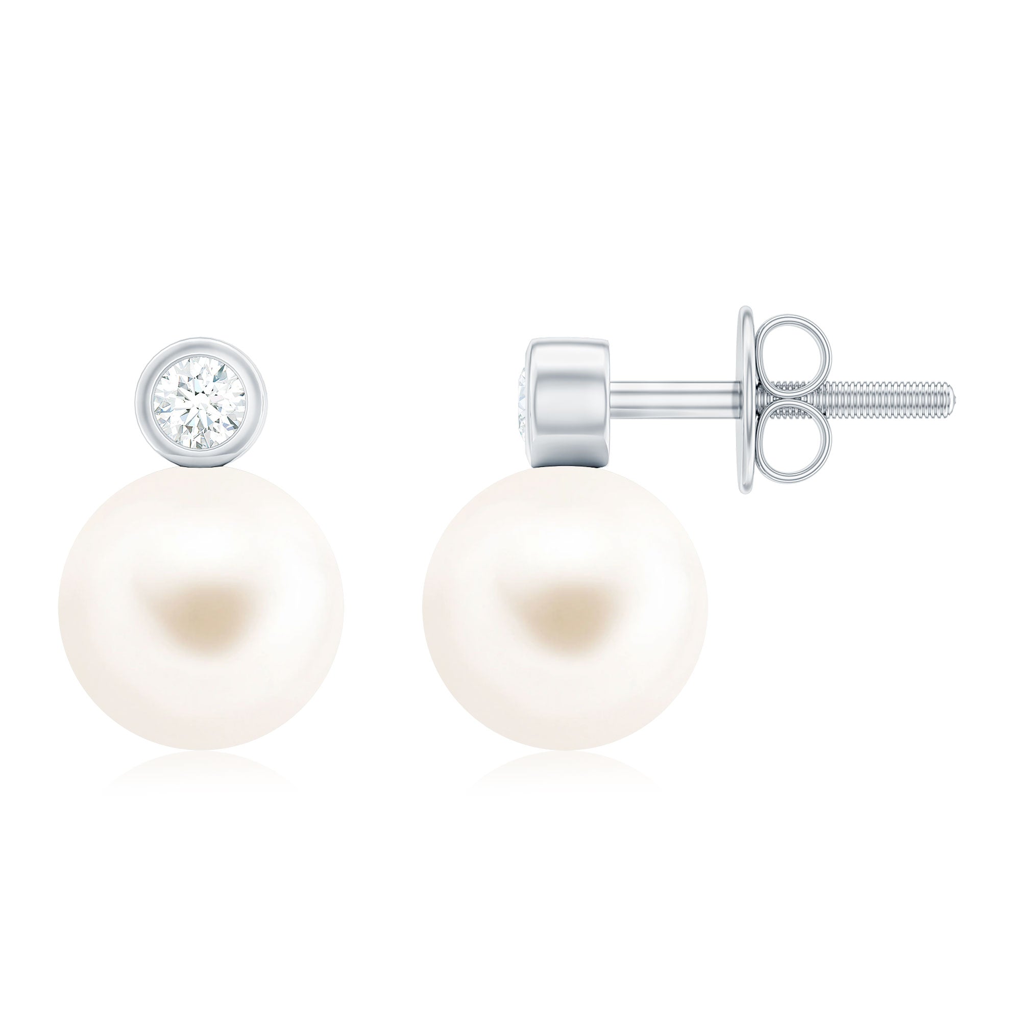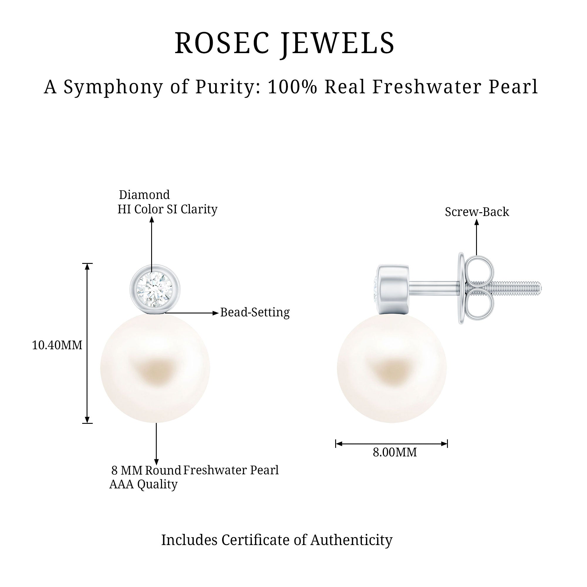Quiet pearls, loud statement! Choose these timeless and Elegant Freshwater Pearl Stud Earrings with Diamonds to add an enduring elegance to your looks. Featuring 8 MM pearl crowned by HI SI quality diamonds to complete the grace of this elegant jewel. These certified natural pearls enhance your personality and you will find reasons to wear it.