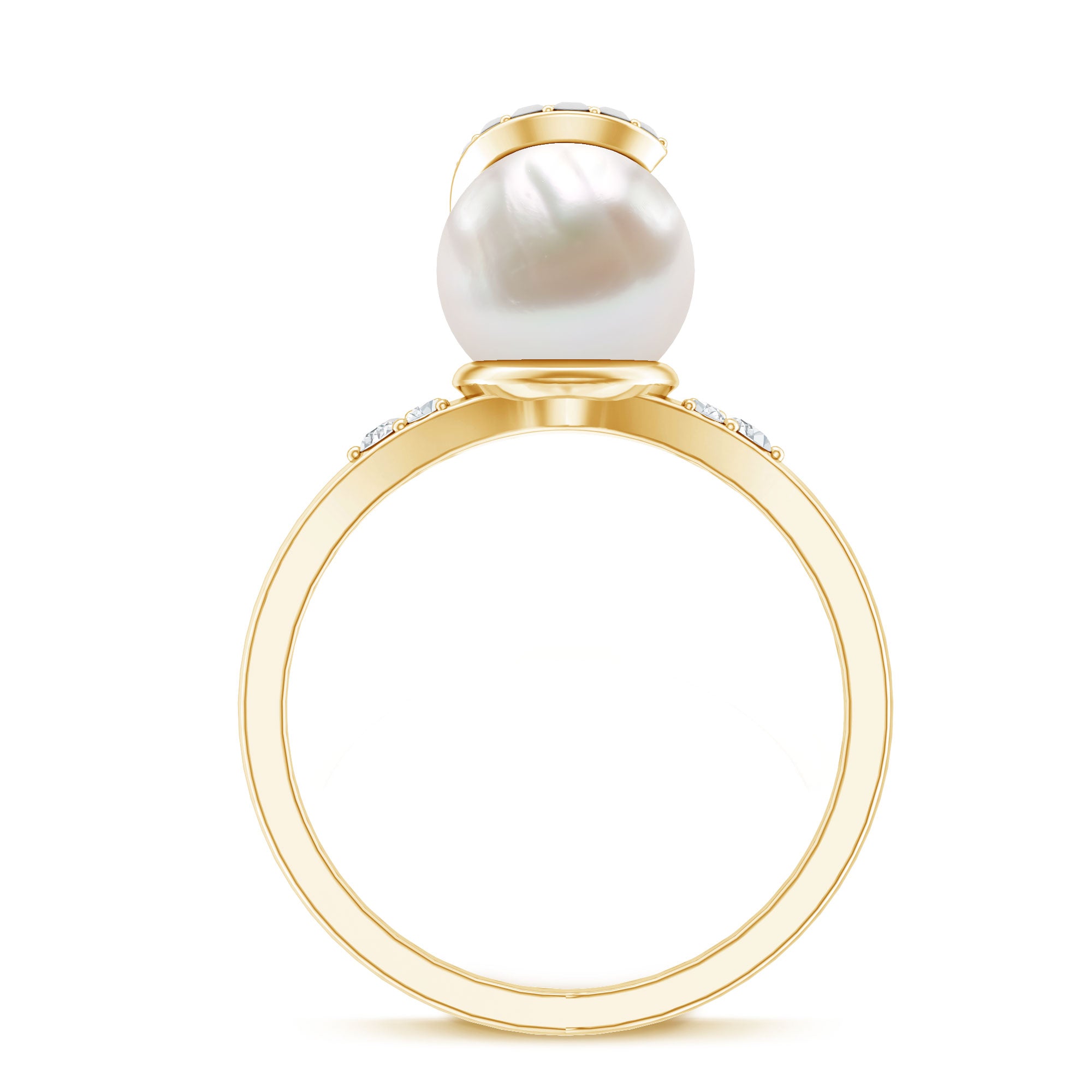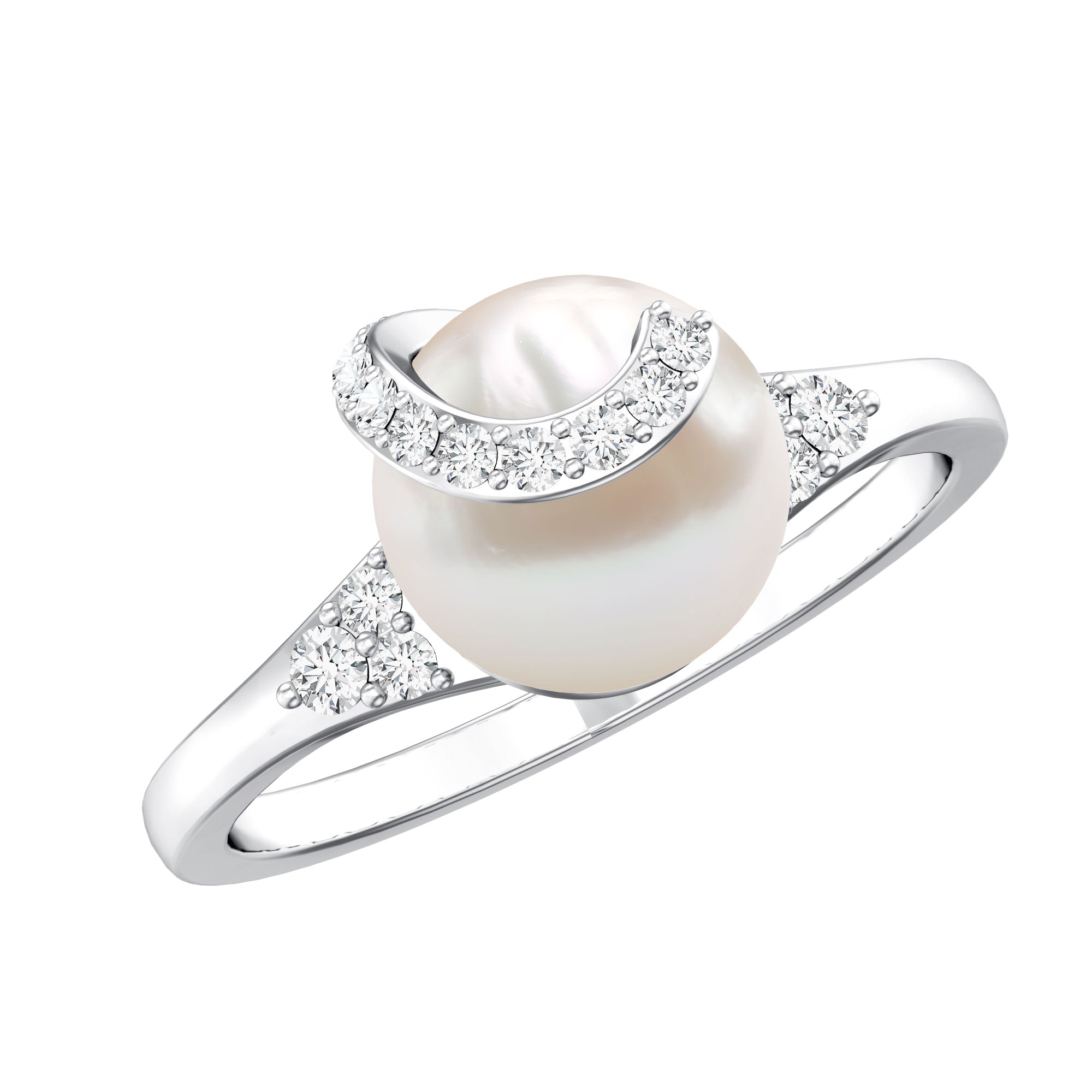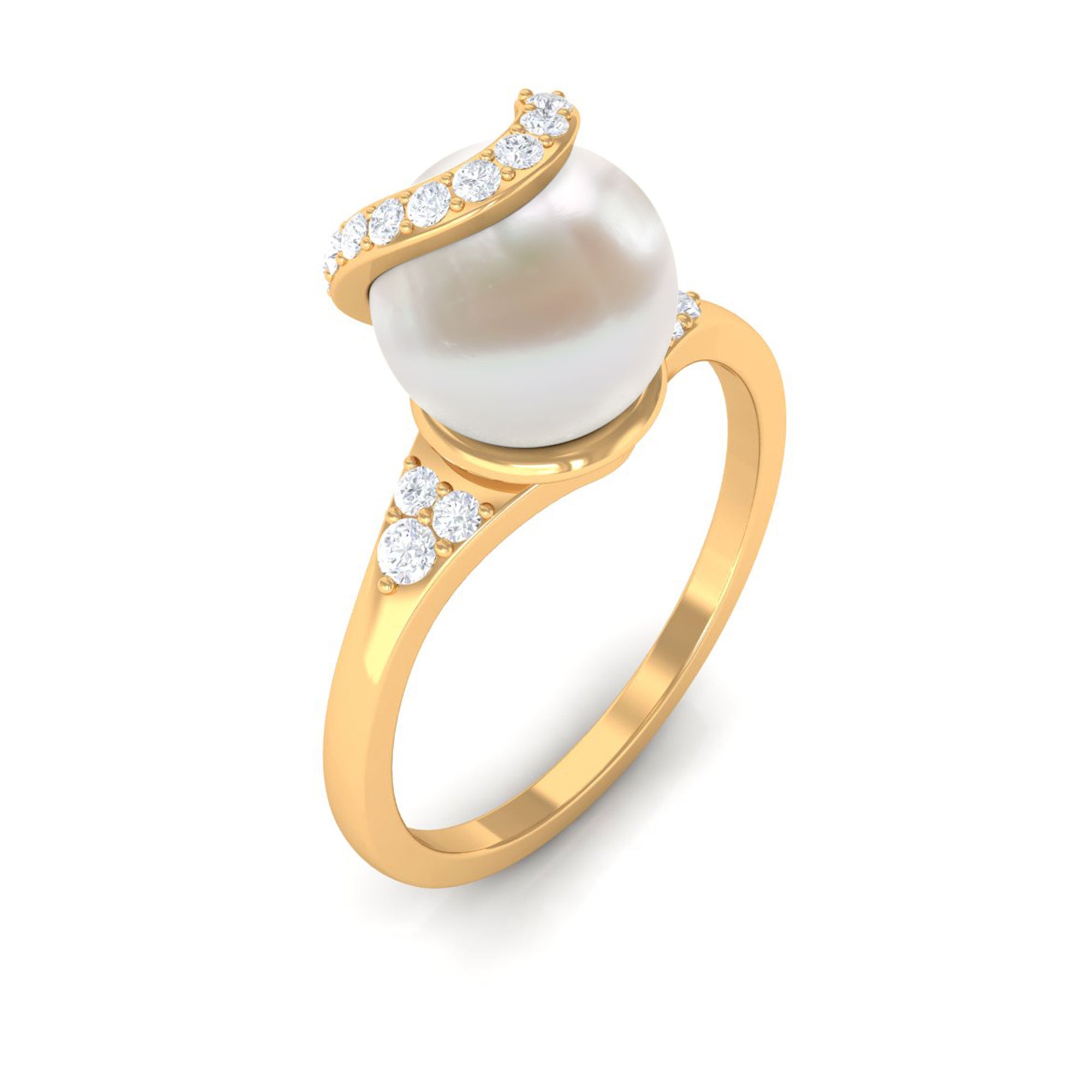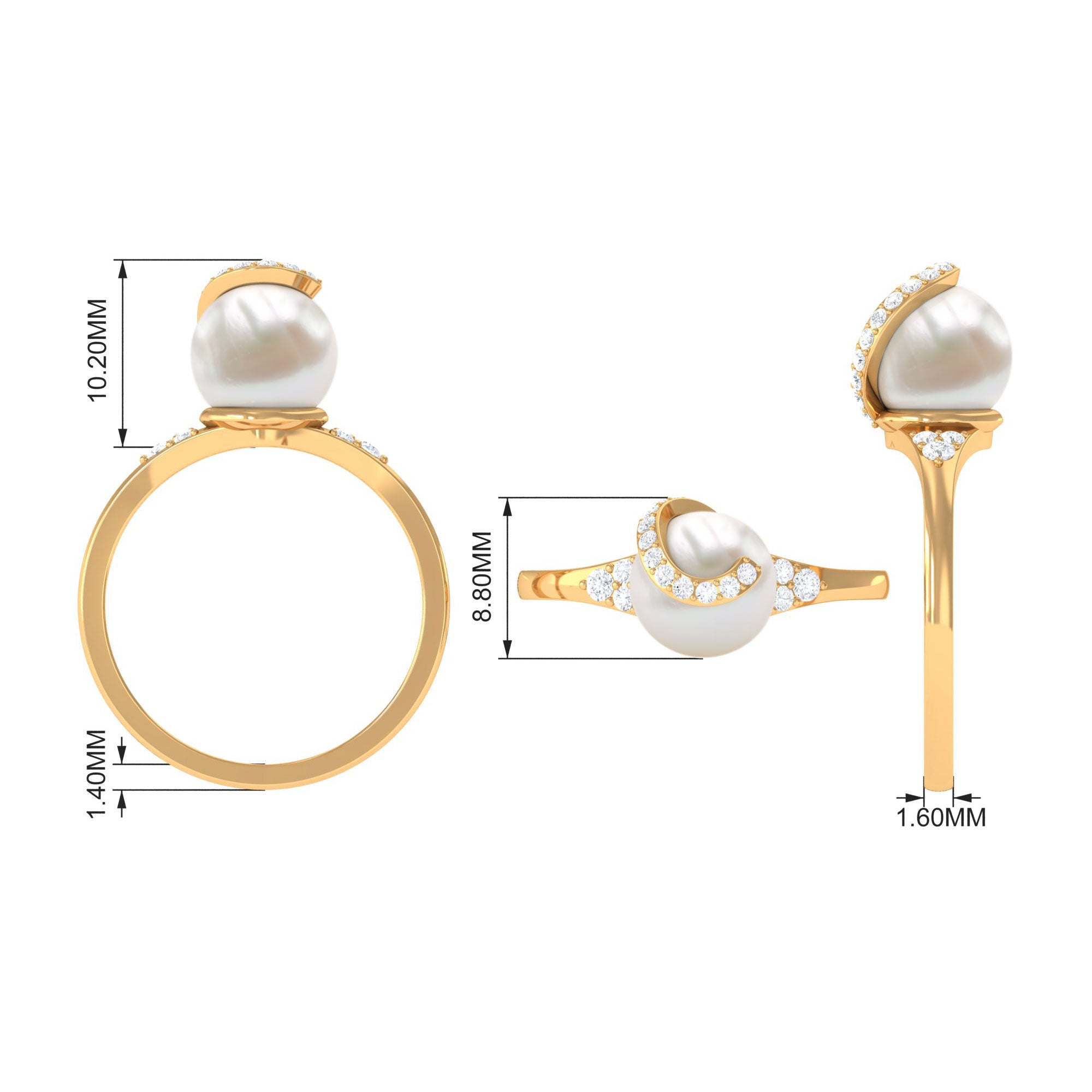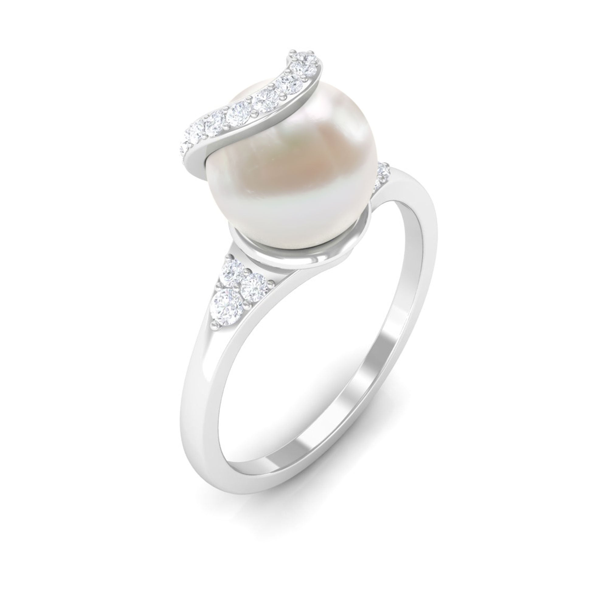 Elegant Freshwater Pearl Solitaire Ring with Diamond Trio