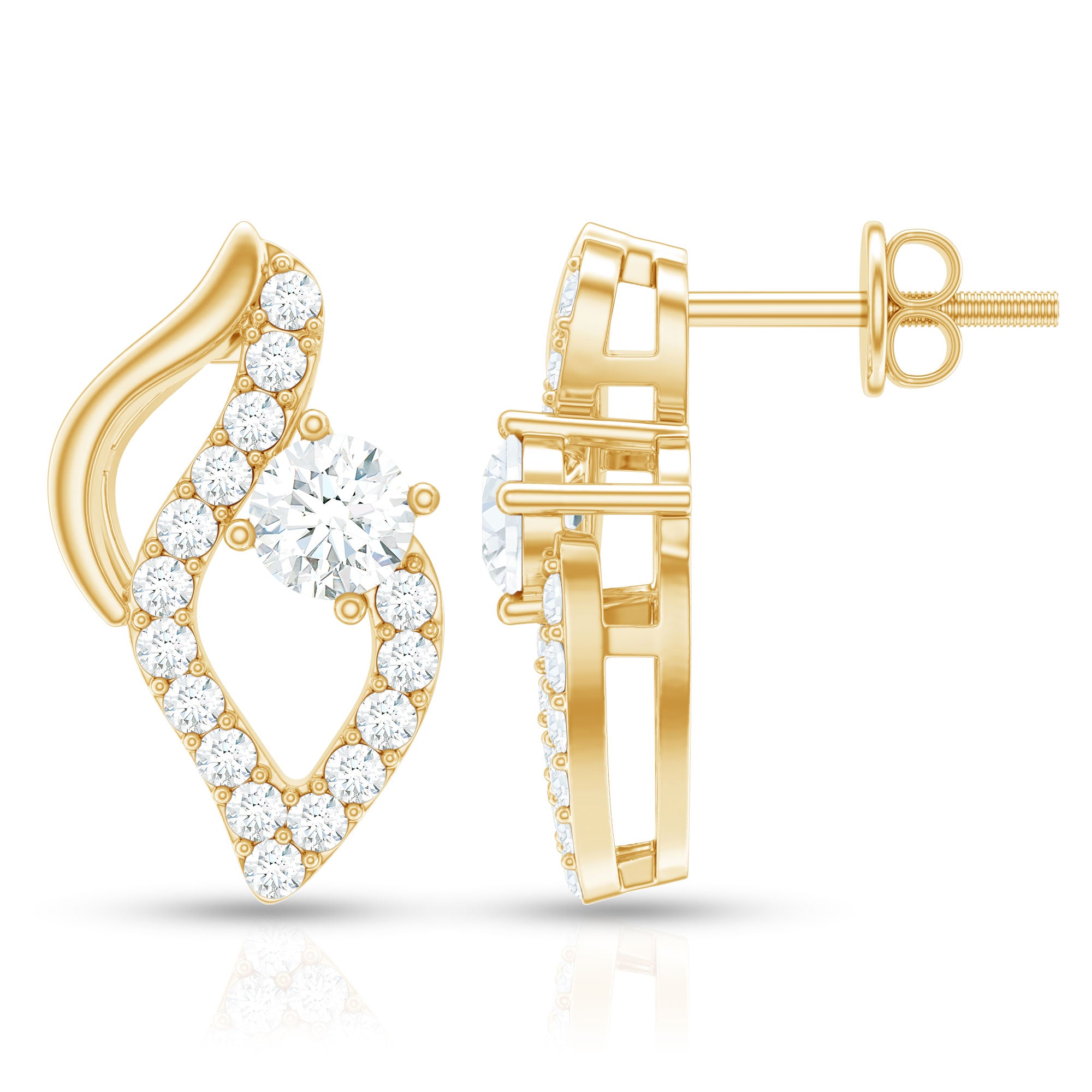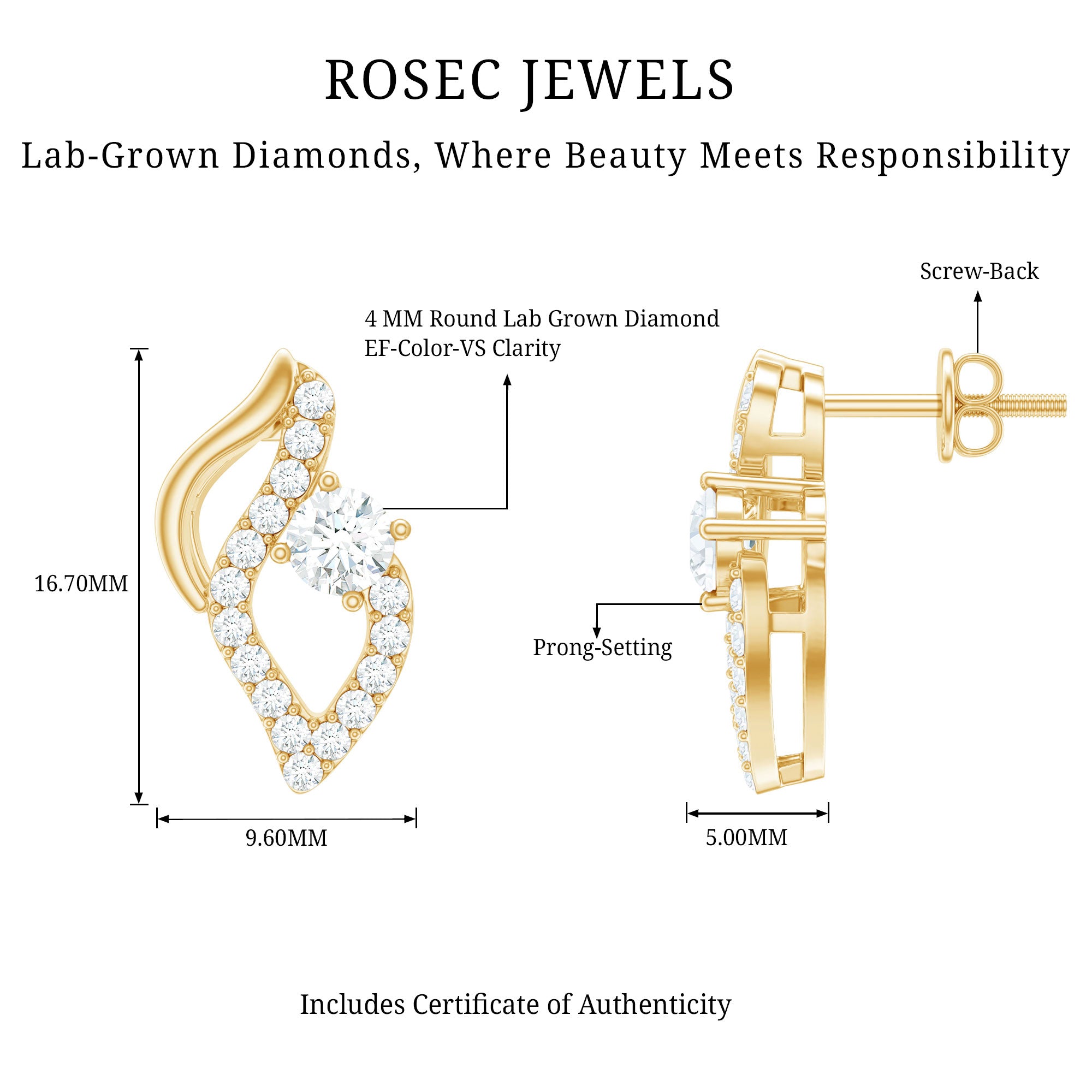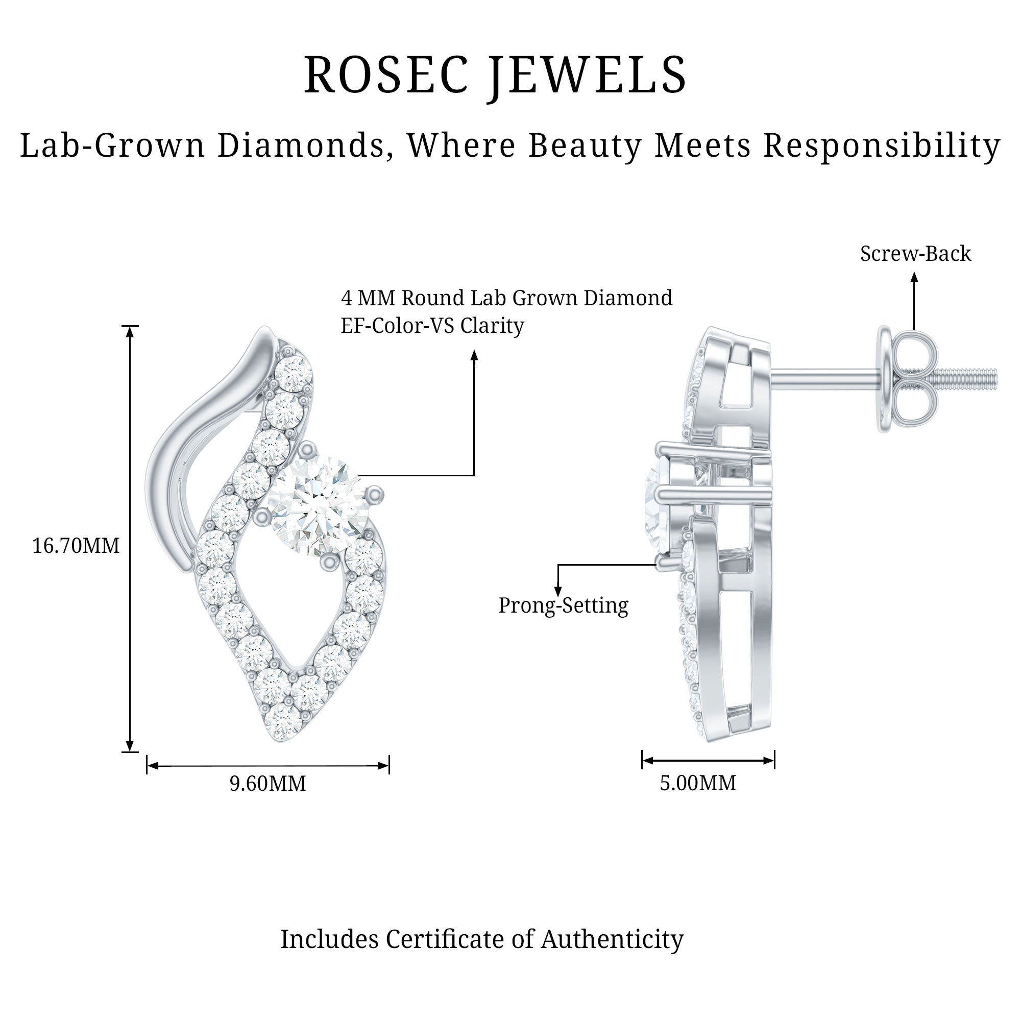 Secured with Screw Back Closure, these Ef-Vs quality Diamond Earrings epitomize timeless sophistication. Meticulously crafted, these Unique Stud Earrings feature gleaming Round Shape Diamond gemstones that exude modern elegance. These Diamond Stud Earrings (Synthetic) will perfectly go with your both casual or formal outfits. Exclusively from Rosec Jewels, where craftsmanship meets conscience in every dazzling creation. Our April Birthstone Earrings come in a signature jewelry box, make your special ones feel happier than ever by presenting them these Designer Earrings as a birthday gift, mothers day gift, anniversary gift, Valentines Day gift.