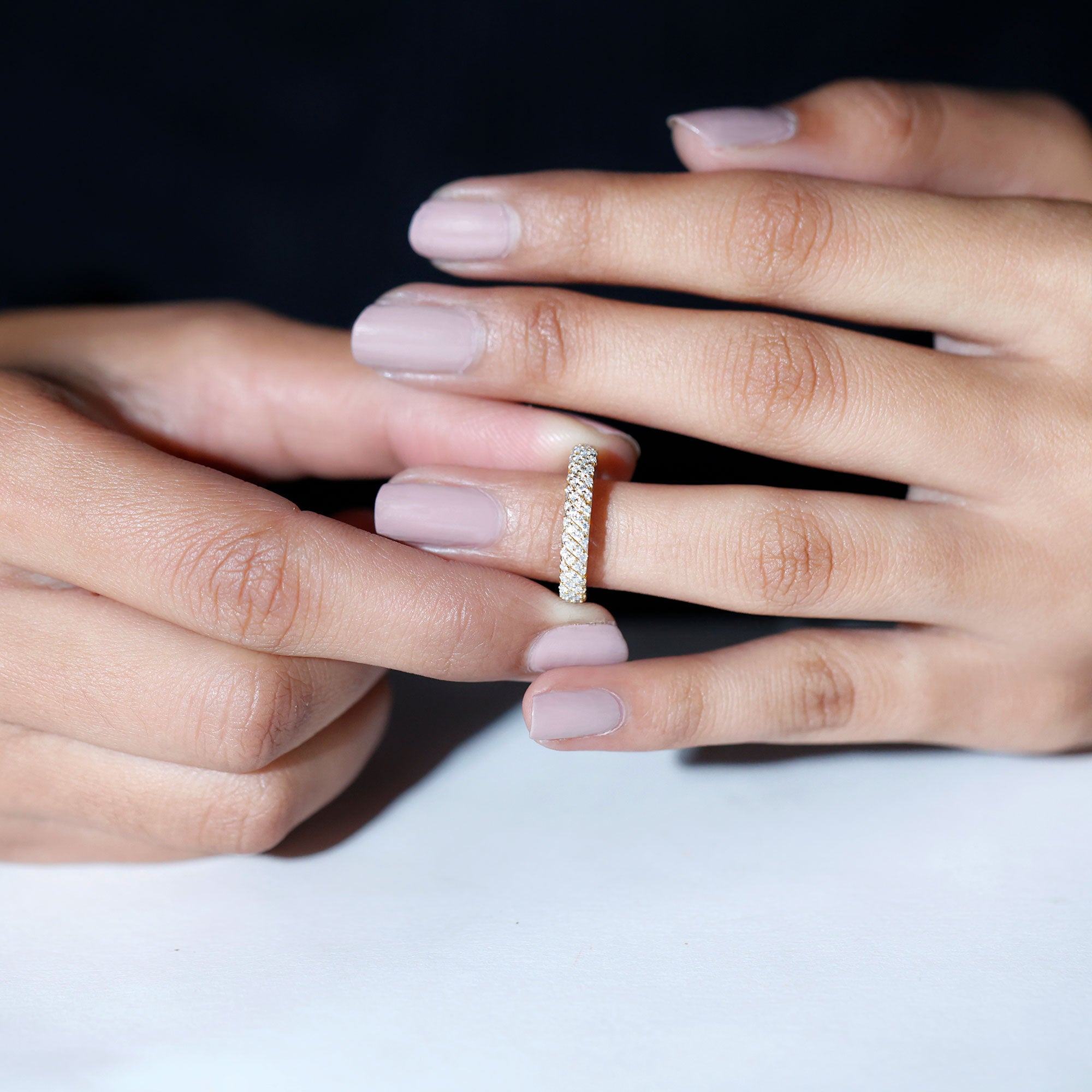 Show your love and appreciation to your lady love with this Moissanite Eternity Band Ring, an unforgettable symbol of your commitment. Designed to suit every style, this beautiful Moissanite Anniversary Band is available in a range of metal options and ring sizes, allowing you to choose the perfect match for the special woman in your life. The Full Eternity Band features a full circle of sparkling moissanite stones, each one carefully pave set to create a continuous line of brilliance around the band. This design represents everlasting love, making it a meaningful choice for weddings, anniversaries, or romantic celebrations. Crafted with precision and attention to detail, the Eternity Wedding Band offers a comfortable fit while still delivering maximum sparkle. This Moissanite Stackable Ring comes beautifully packaged in a jewelry box along with a certificate of authenticity, ensuring she receives not only a stunning band but also the assurance of quality.