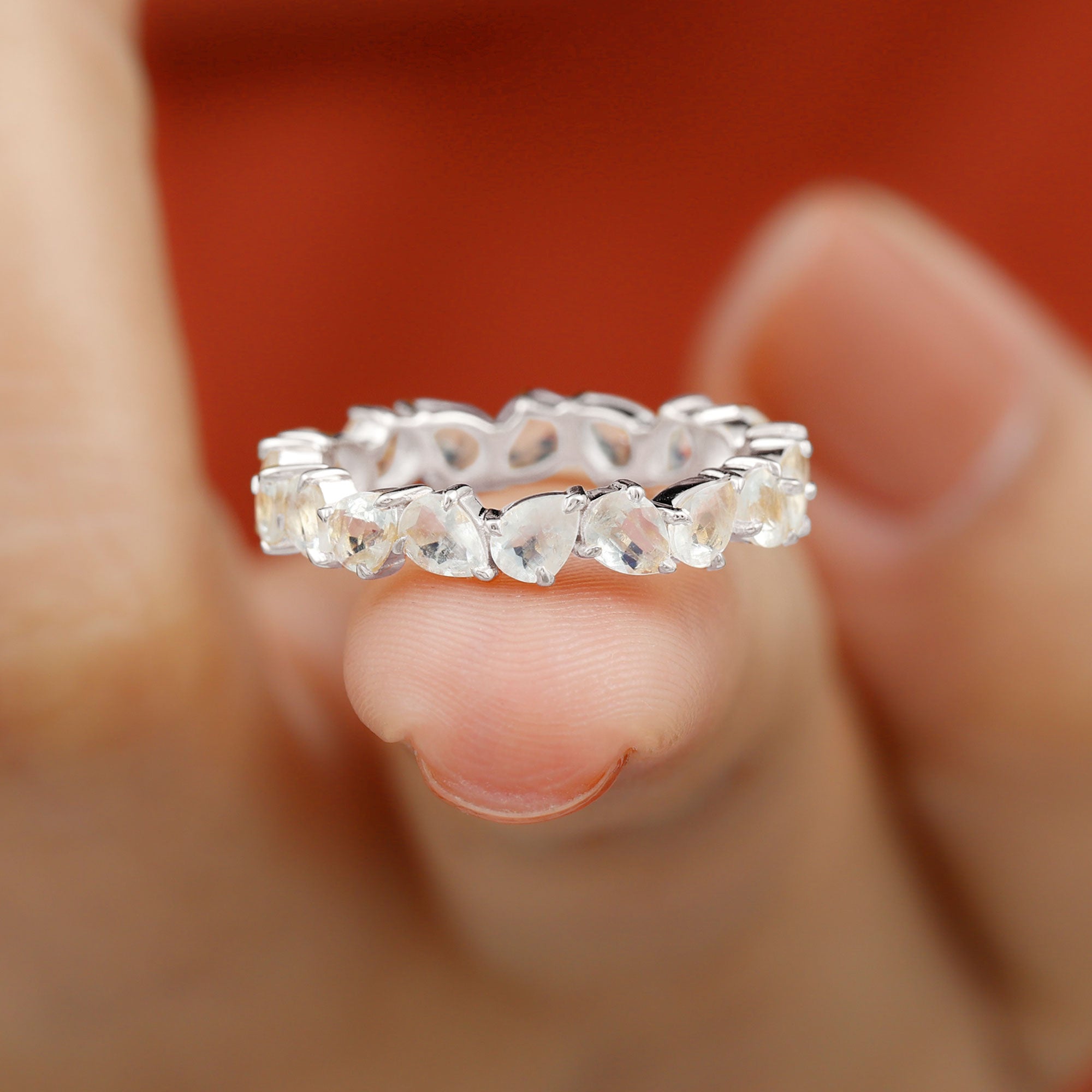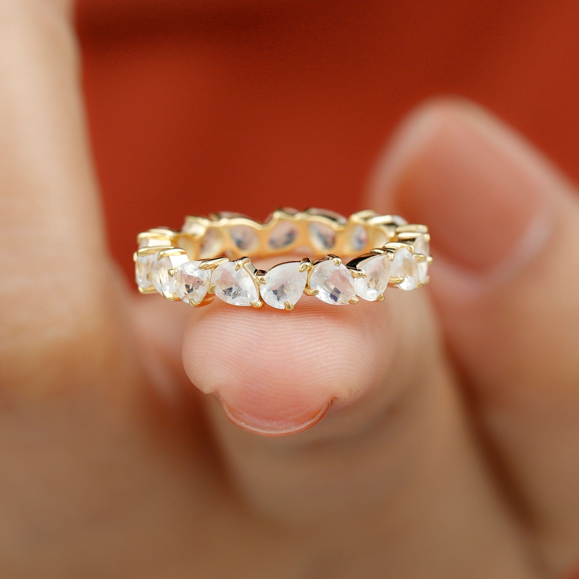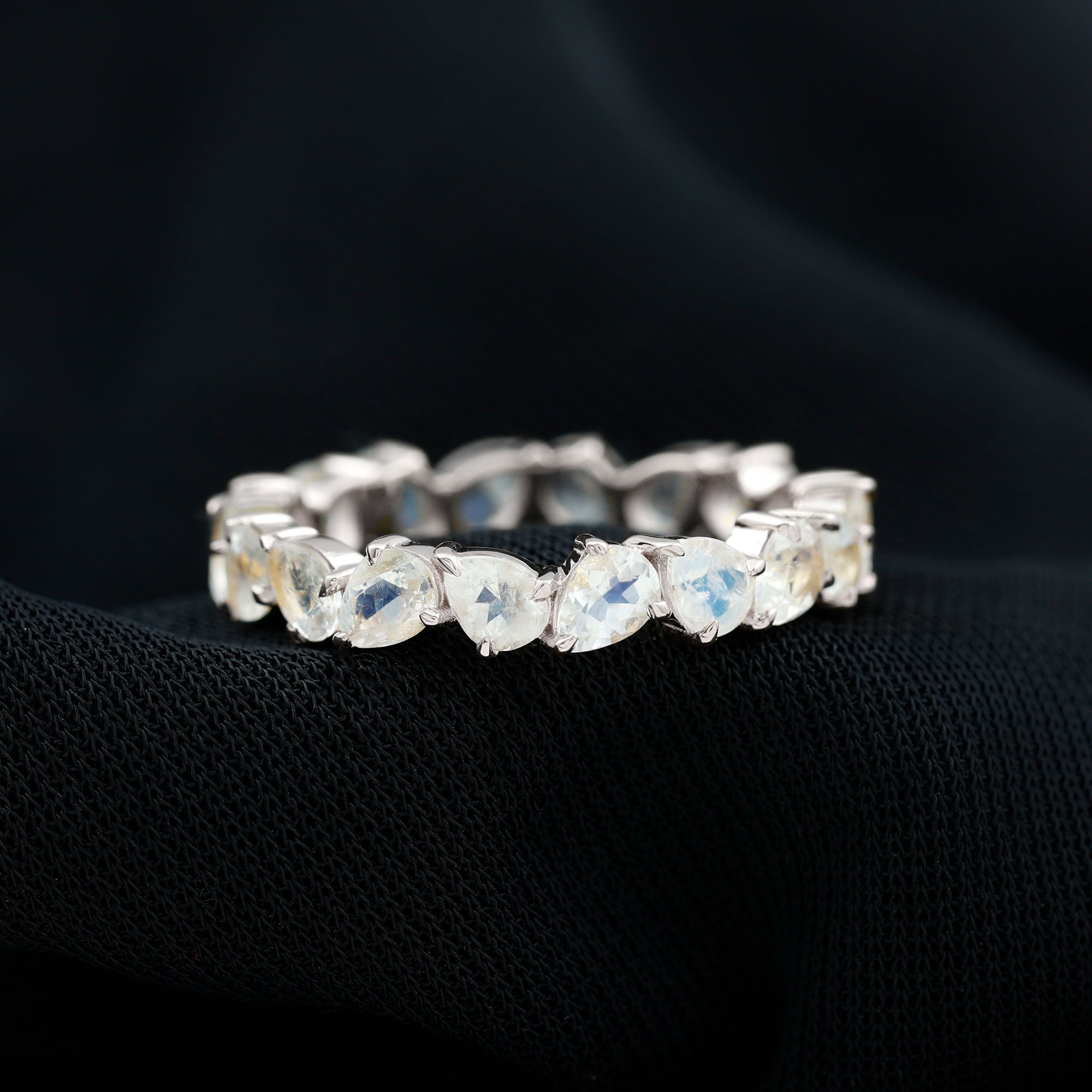 Elegant Pear Cut Moonstone Eternity Band Ring