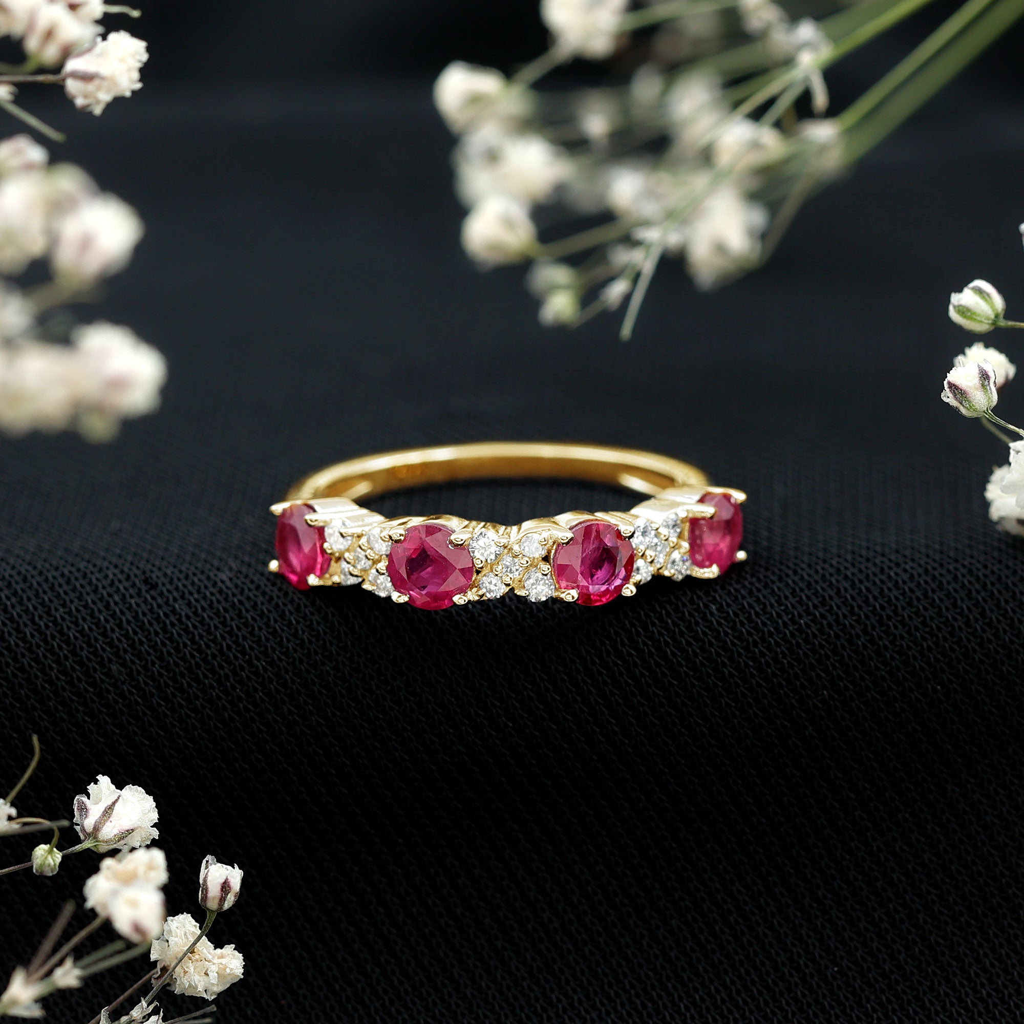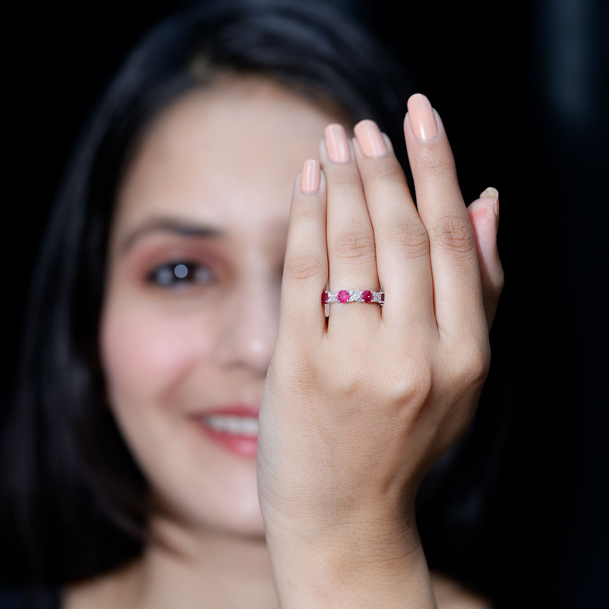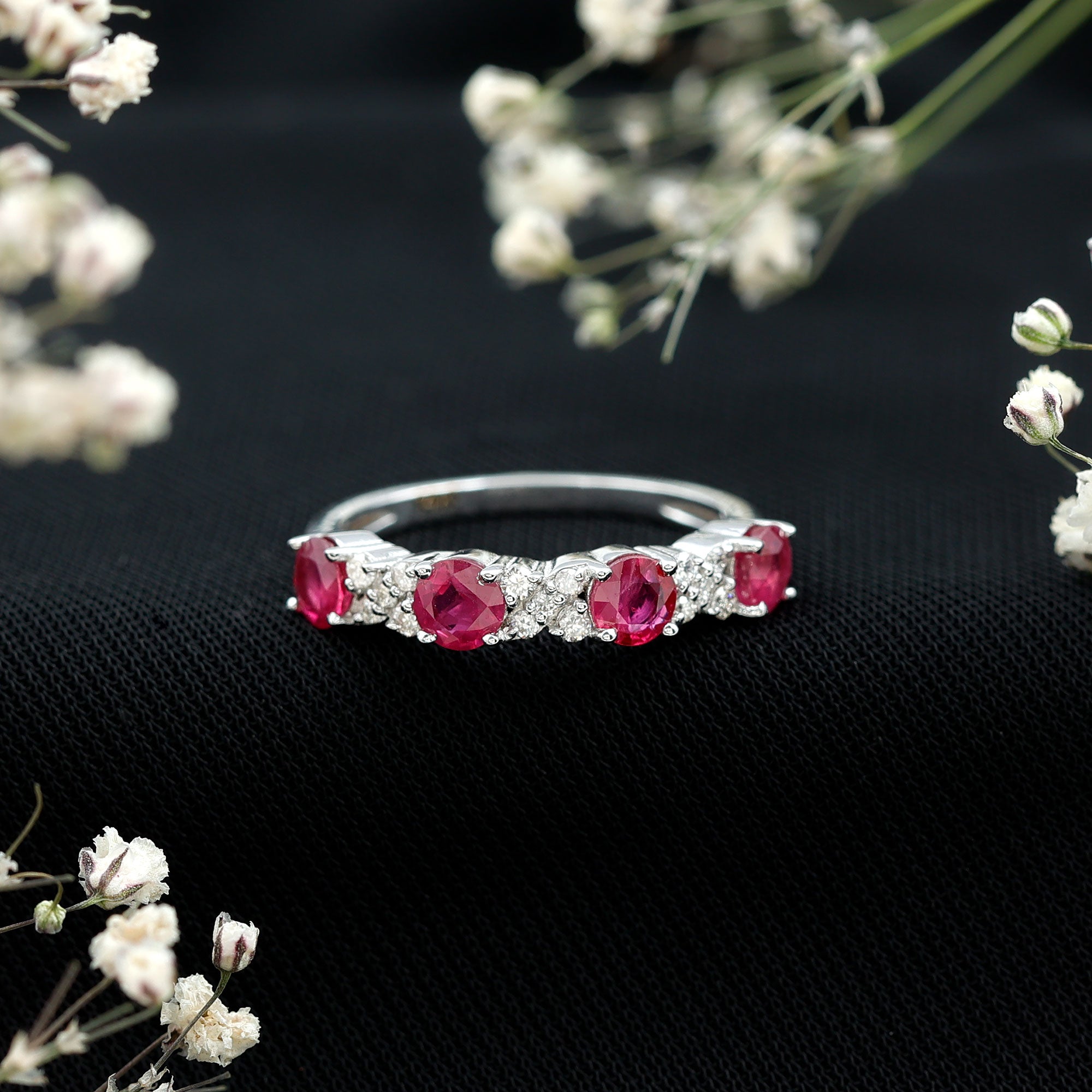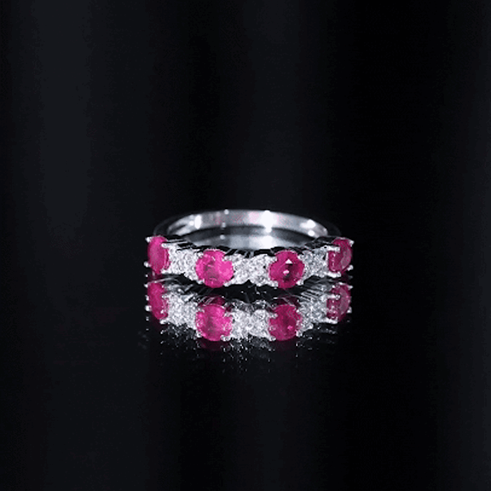 Elegant Ruby and Diamond Semi Eternity Band Ring