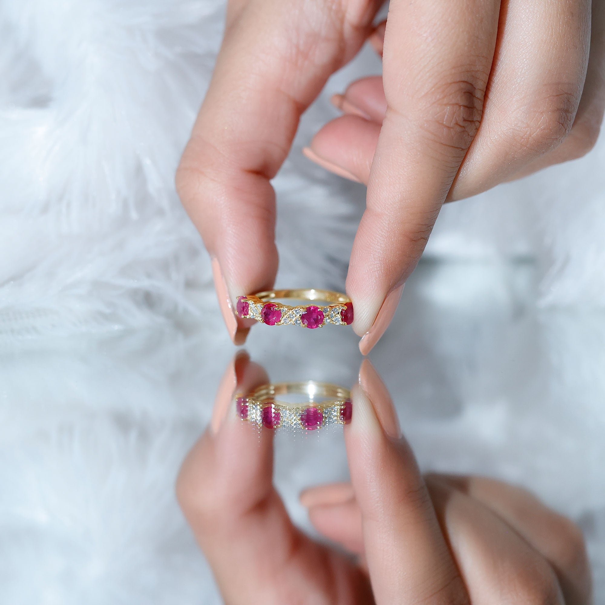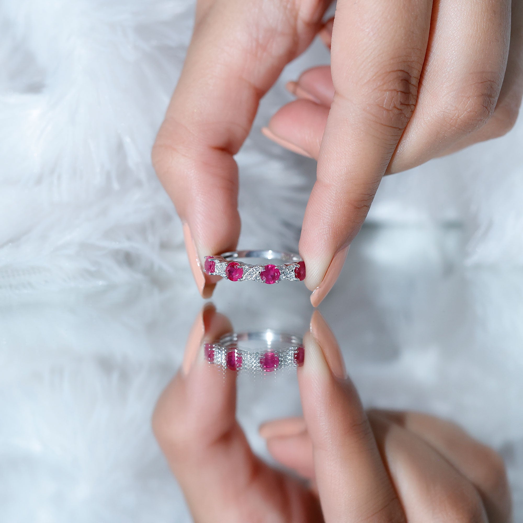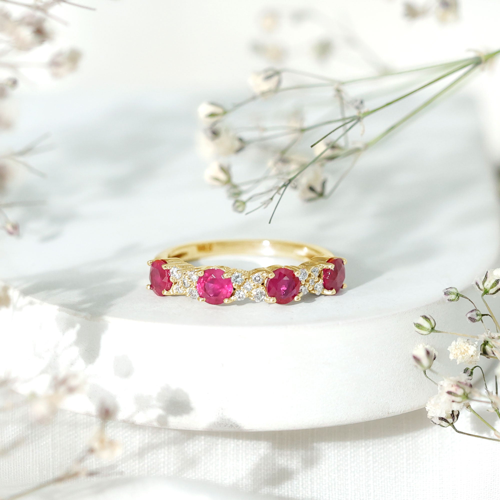 Elegant Ruby and Diamond Semi Eternity Band Ring