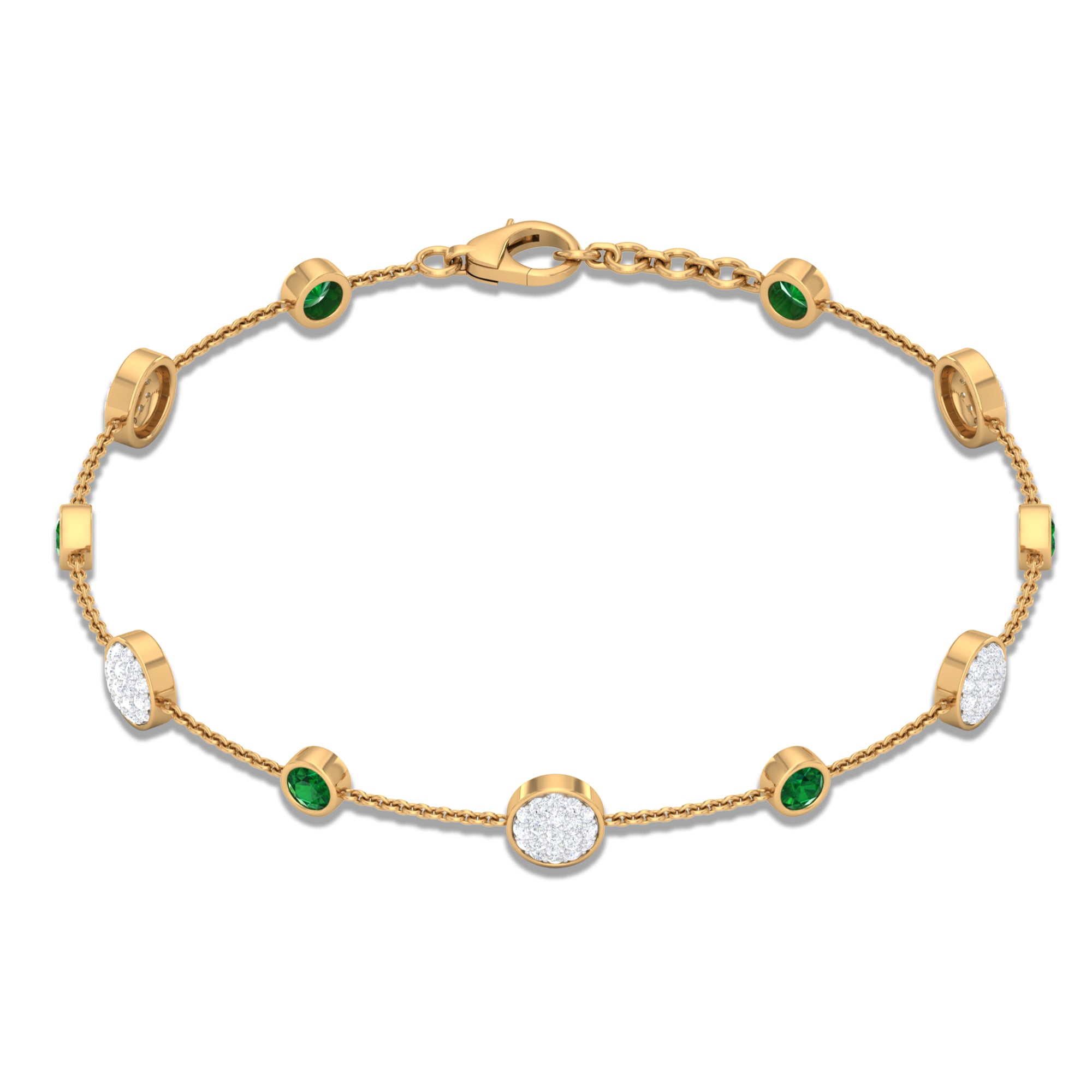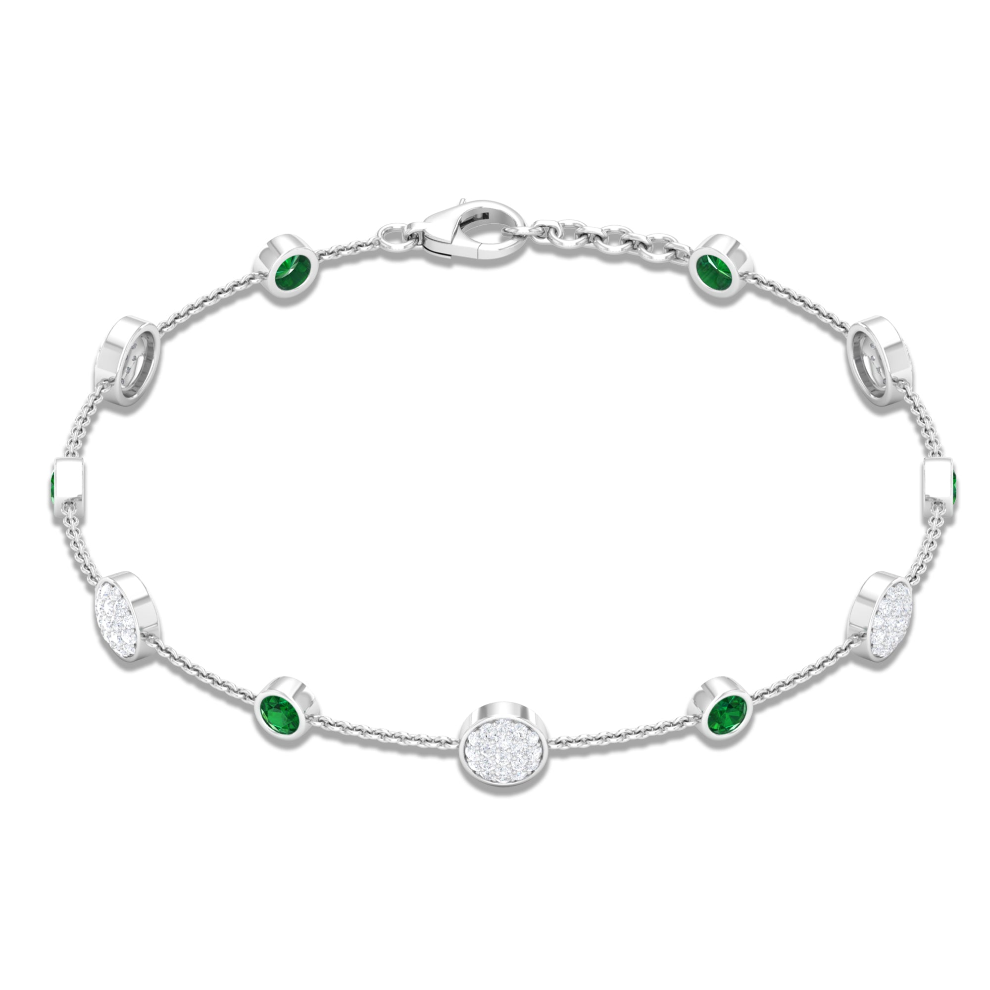 Elegance and beauty come together in this stunning Station Chain Bracelet, which showcases carefully arranged Round Shape Emerald Gemstones set securely in Bezel Setting. The chain is embellished with Diamonds, forming a mesmerizing illusion setting that alternates with the emeralds. This Natural Emerald Chain bracelet serves as an ideal gift for your loved one, crafted to commemorate her special occasion with an air of sophistication and enduring allure. This Chain Bracelet, featuring a blend of AAA quality emeralds and HI-SI quality diamonds, exudes a magical allure, rendering it a unique accessory for any woman seeking to enhance her style with color and sophistication. The design is both elegant and classic, making it appropriate for daily wear as well as special events. Crafted with meticulous attention to durability, this May Birthstone Emerald Bracelet symbolizes commitment and beauty. Its radiant stones and timeless design create a beautiful heirloom to be cherished and passed down through generations.