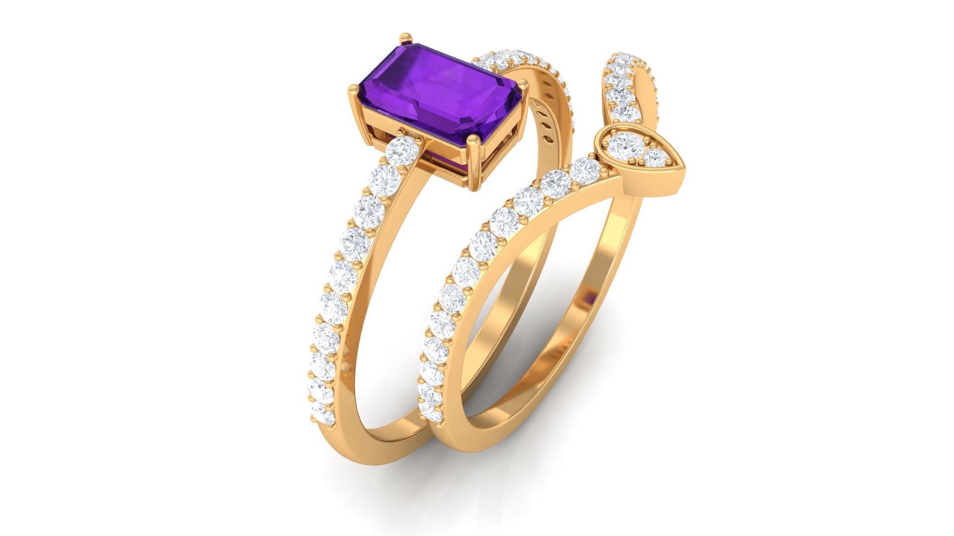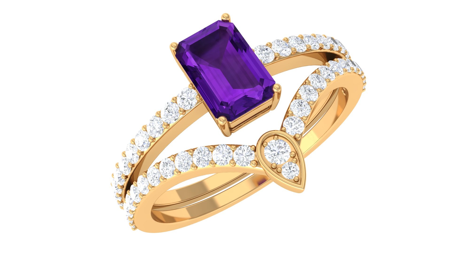 This breathtaking Ring Set is adorned with an Amethyst and sparkling Diamond gemstones and is a timeless expression of beauty and devotion.