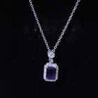 Emerald Cut Amethyst Vintage Necklace with Diamond Halo
