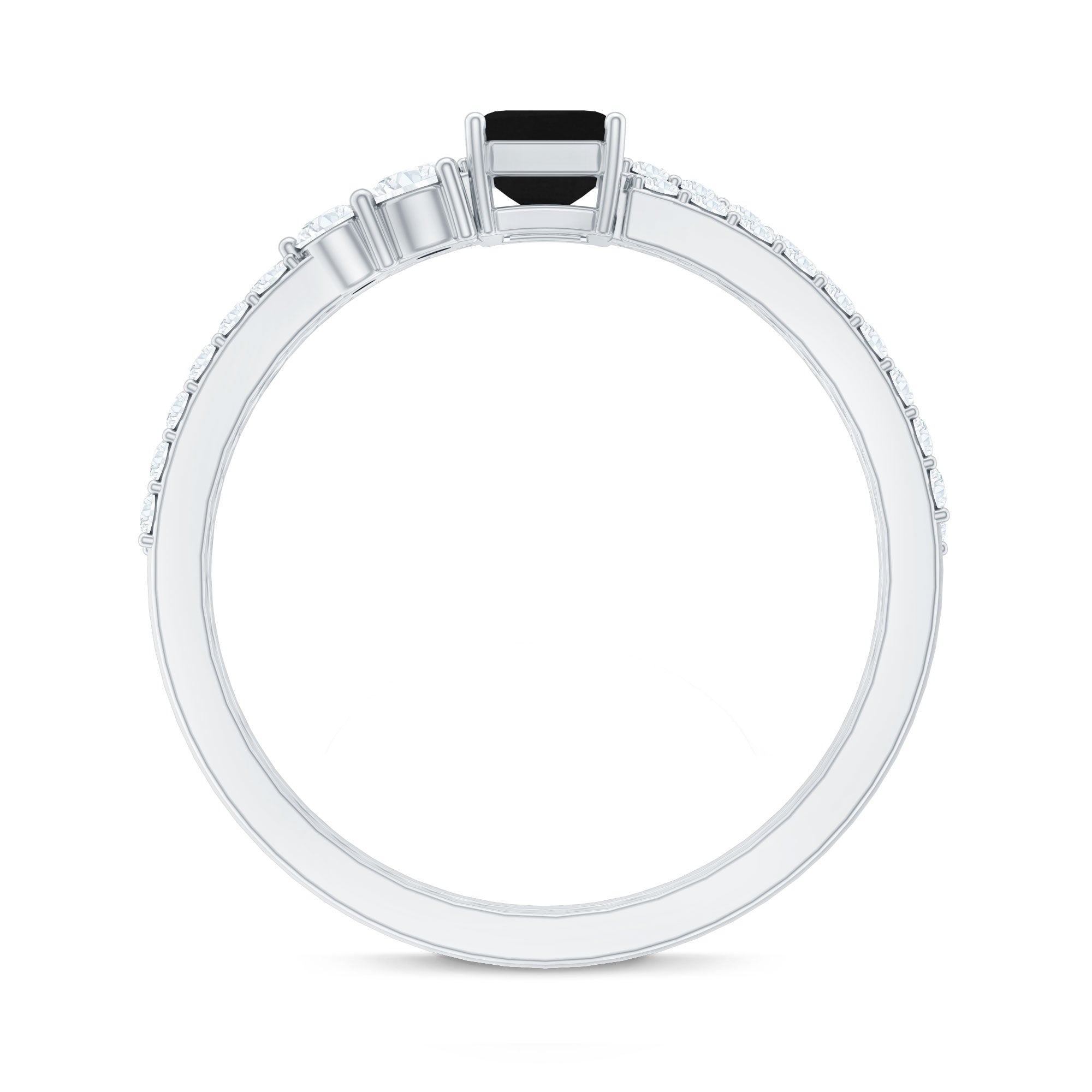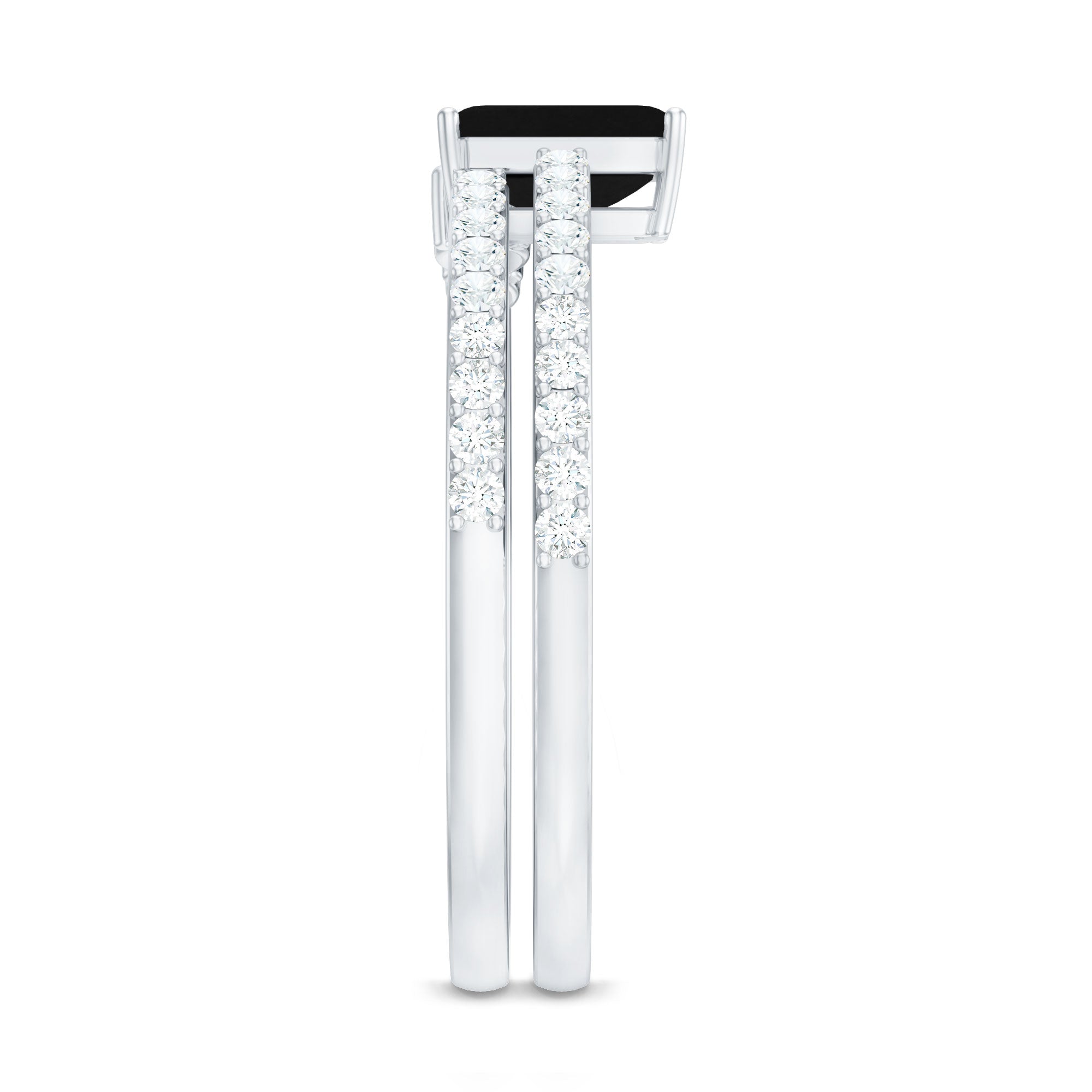 Emerald Cut Black Onyx and Diamond Bridal Ring Set