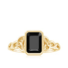 Add a meaningful piece to her collection with this beautiful Black Onyx Engagement Ring, designed to celebrate love, connection, and a little bit of mystery. At the center sits a striking 6X8 MM emerald cut black onyx, set in bezel setting for a secure and elegant look. Just beneath the main stone, there is a surprise - a small HI-SI quality diamond that adds an unexpected sparkle only she will know is there. The real charm lies in the Celtic knot shank, symbolizing eternity, unity, and unbreakable bonds. This Onyx Solitaire Ring is a story of forever, wrapped in a timeless design that blends tradition with modern beauty. Made with AAA quality black onyx, the dark center stone is also the birthstone for December, making it a thoughtful gift for anyone born in that month. The delicate details, rich symbolism, and eye-catching look make this Celtic Knot Engagement Ring a standout piece she will love wearing every day. Available in various metal options and ring sizes, this Emerald Cut Black Onyx Ring also comes beautifully boxed, ready for that unforgettable WOW moment.