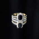 Designed to stack perfectly, this Black Onyx Wedding Set brings together simplicity and statement in one elegant piece. At the heart of the engagement ring lies a striking 6X8 MM emerald cut black onyx, secured in prong setting. Surrounding the center stone is a fine halo of moissanite stones that also continues down the band, creating a graceful and eye-catching design. Paired with the engagement ring is a matching half eternity band, adorned with round moissanite stones. This sleek wedding band is made to sit perfectly beside the engagement ring, offering a complete bridal look that is both bold and refined. The Black and White Bridal Set is thoughtfully designed for stacking but also looks beautiful worn separately. Crafted for comfort and elegance, this Emerald Cut Wedding Ring Set is available in a range of sizes to ensure a perfect fit. It arrives in a charming jewelry box, making it ideal for proposals, weddings, or special gifts. A certificate of authenticity is also included to guarantee the quality of both the gemstones and craftsmanship. Whether you are starting your forever or looking for a Statement Bridal Set with meaning, this Black Onyx Ring Set blends bold design with lasting beauty.