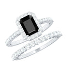 Emerald Cut Black Onyx Wedding Ring Set with Moissanite