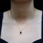 This Black Spinel Pendant Necklace blends bold beauty with timeless charm, making it a standout piece for any occasion. Handcrafted in 14k yellow gold plated silver, it features a striking 5X7 MM emerald cut black spinel of AAA quality set in a secure prong setting. Surrounding the center stone is a halo of sparkling lab grown white diamonds, carefully selected for their EF color and VS clarity, offering exceptional shine and ethical craftsmanship. At the top of the pendant, a delicate diamond-studded flower design adds a soft, feminine touch, while a single bezel-set round diamond creates a graceful finishing detail. This Vintage Art Deco Necklace hangs from a classic chain, sitting beautifully at the collarbone. The contrast between the rich black spinel and radiant diamonds makes it a versatile piece that pairs beautifully with both modern and vintage styles. It is a thoughtful gift for anniversaries, birthdays, or bridal occasions, especially for those who love jewelry that stands out without saying too much. A mix of timeless beauty and bold personality, this Retro Style Necklace is sure to be a cherished addition to any jewelry collection.