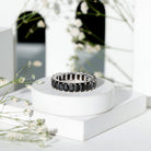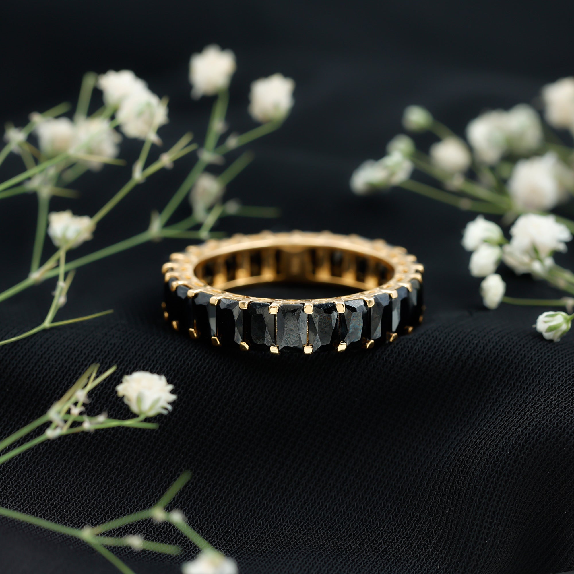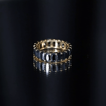 Elevate your look with our Eternity Band and catch everyones attention wherever you go. Adorned with emerald cut black spinel resulting in the captivating appearance of the eternity band. Crafted to attention, with AAA Black Spinel this black spinel ring endures both durability and sustainability. This eternity band symbolizing eternal love and enduring commitment making this elegant piece of jewelry an ideal ring for your big day.