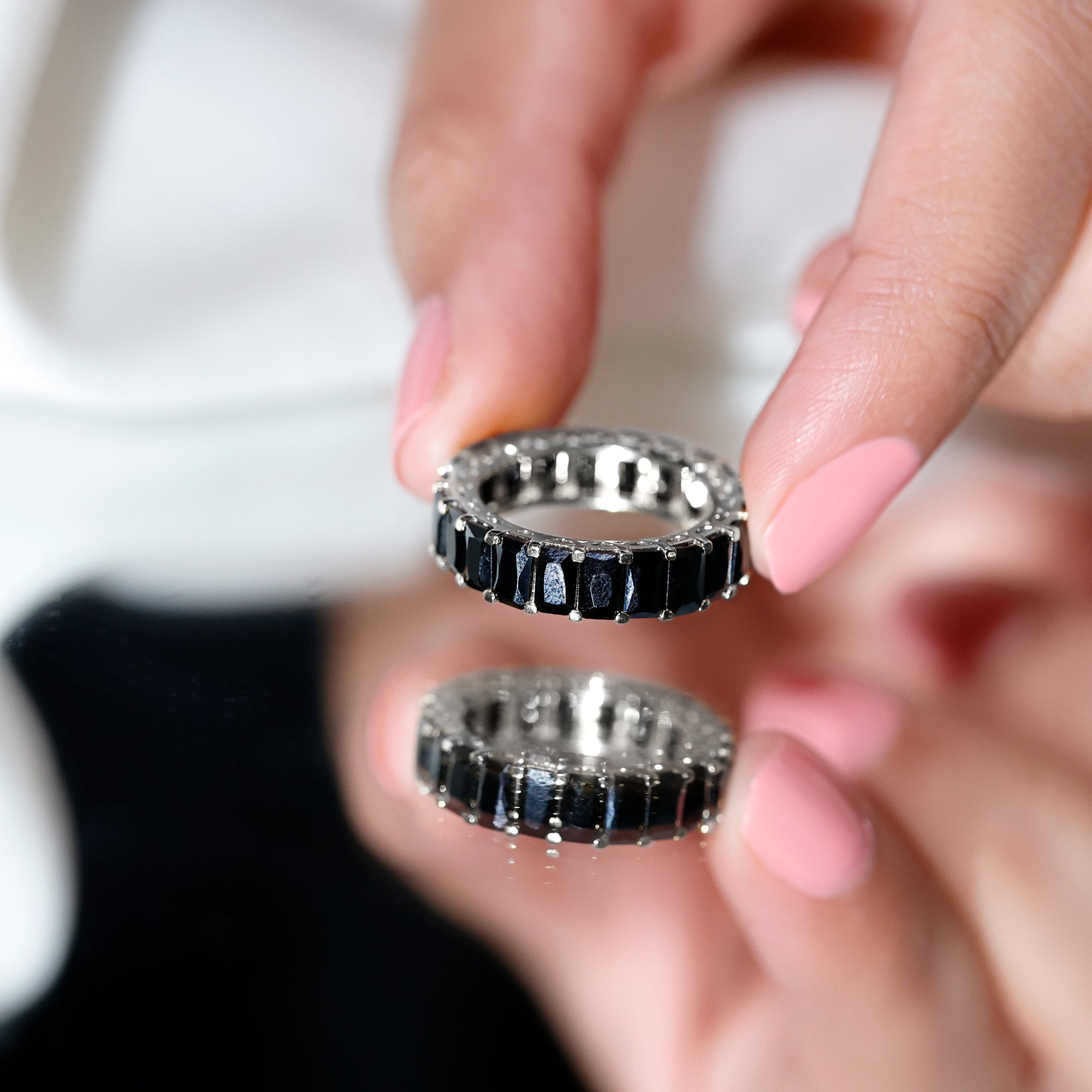 Emerald Cut Black Spinel Eternity Band