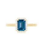 Emerald Cut Blue Topaz Engagement Ring with Diamond Halo