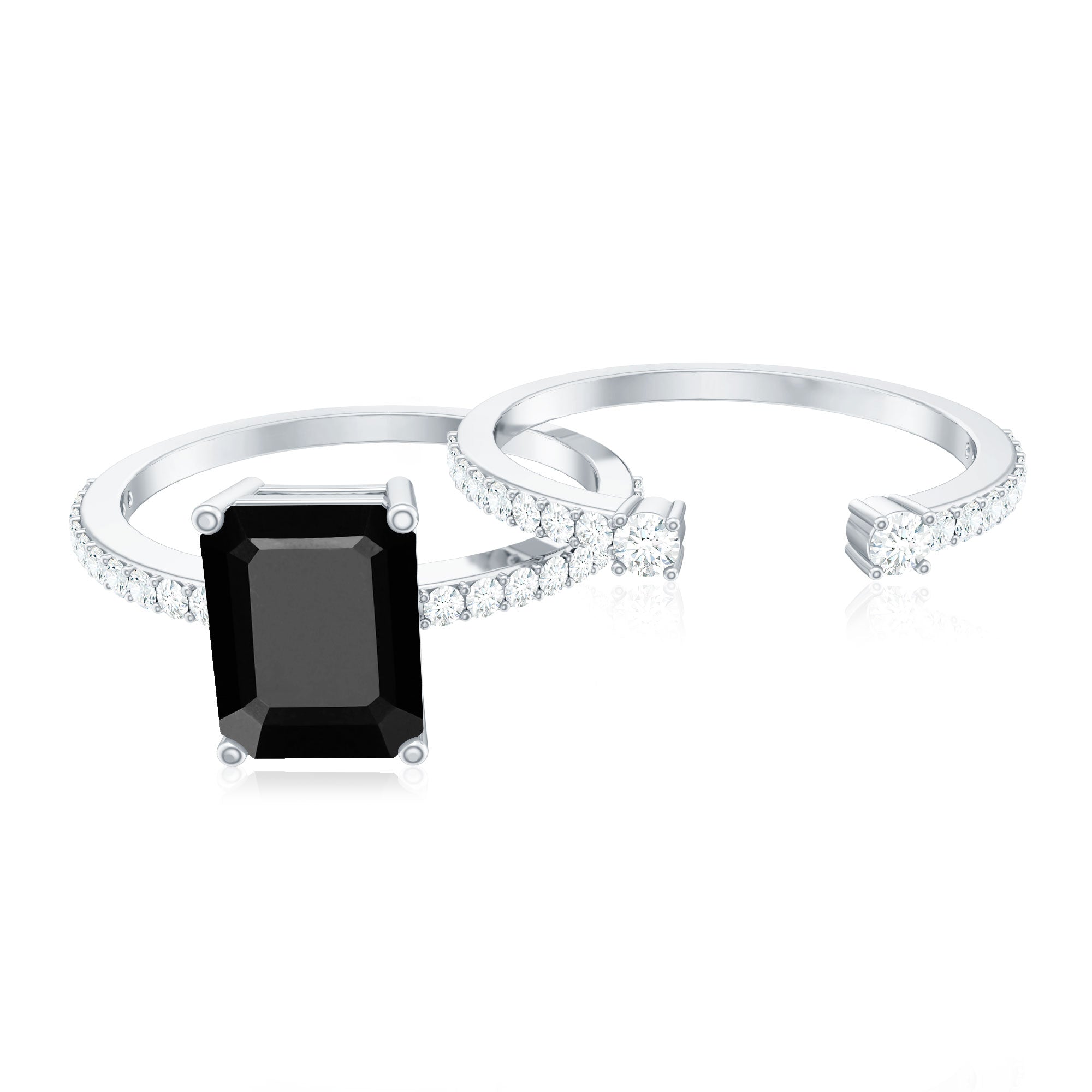 Emerald Cut Created Black Diamond Engagement Ring Set with Diamond
