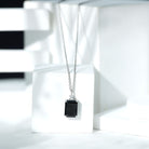 Emerald Cut Created Black Diamond Solitaire Pendant Necklace