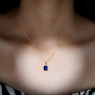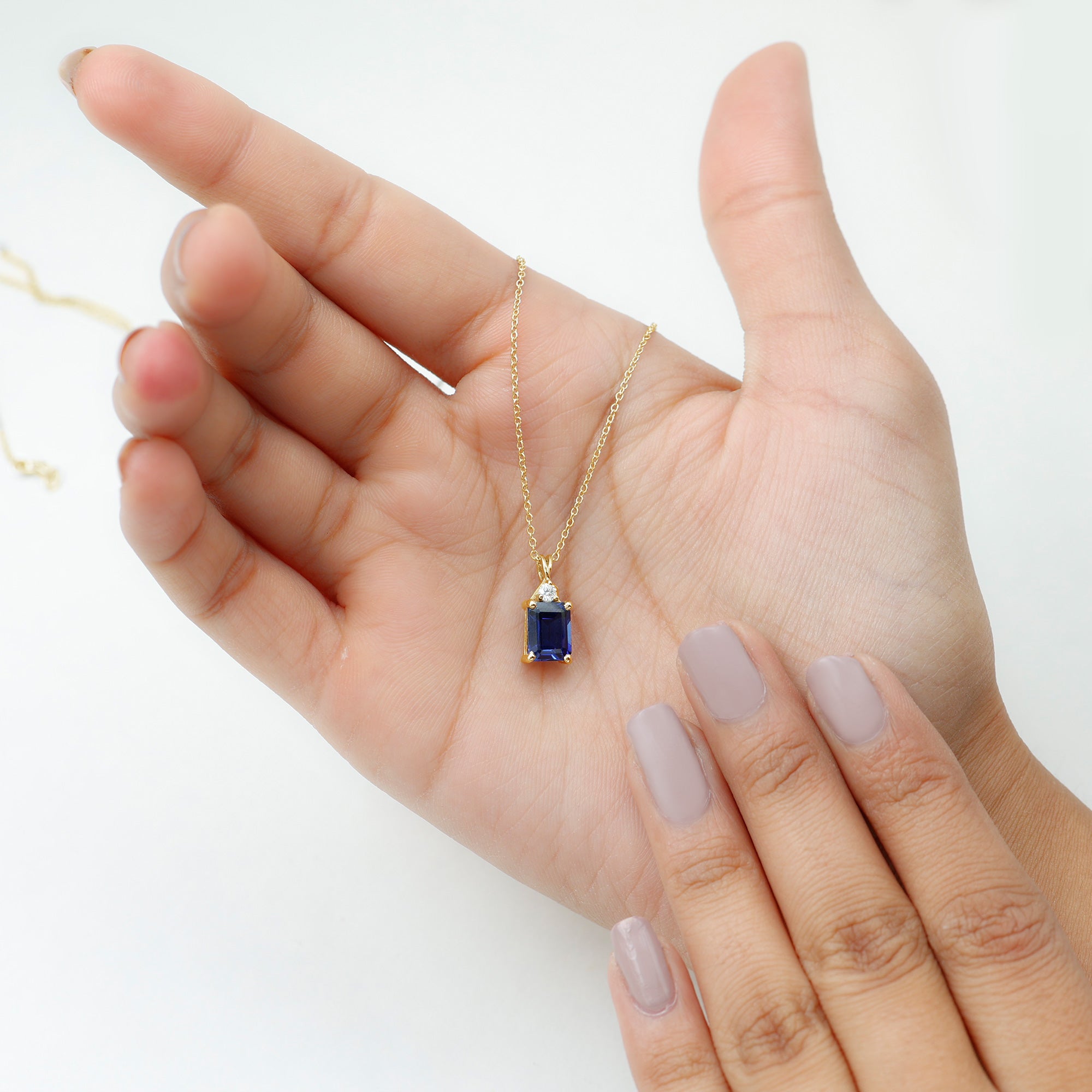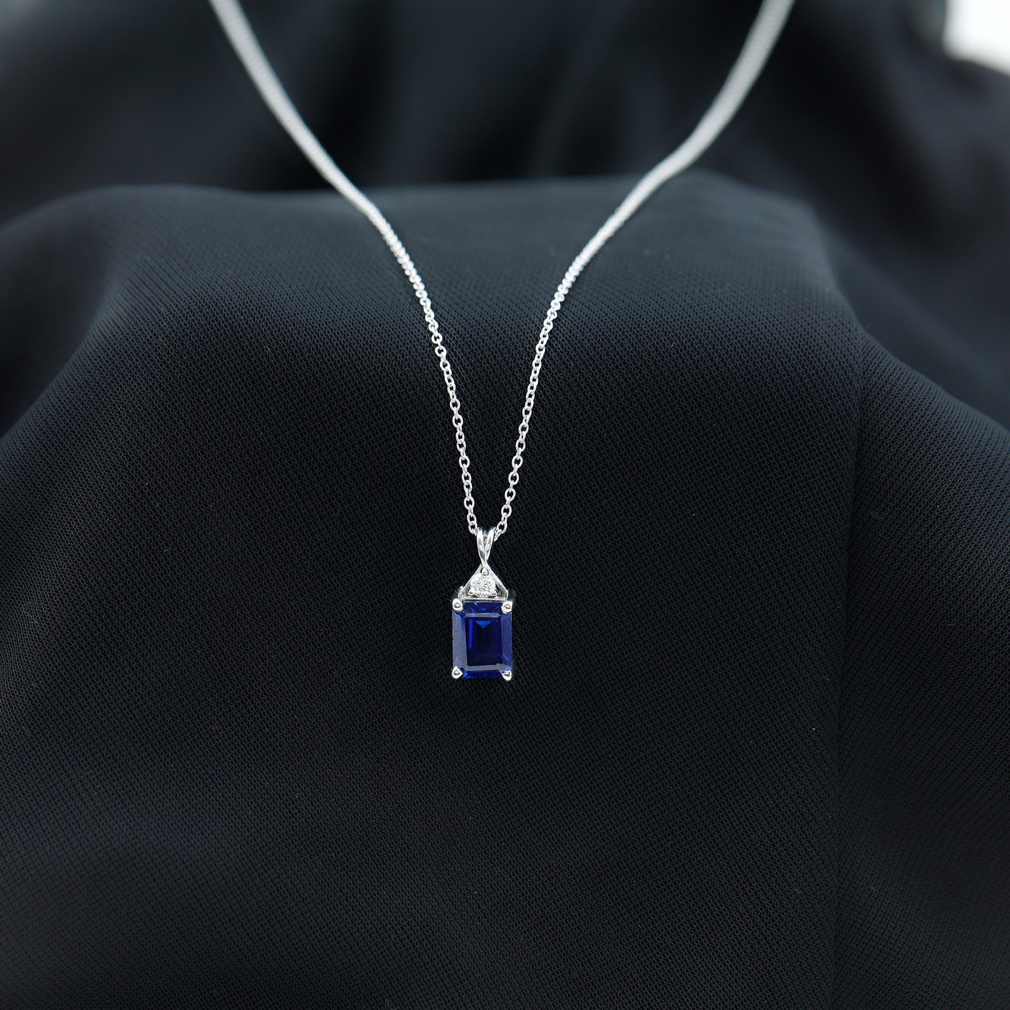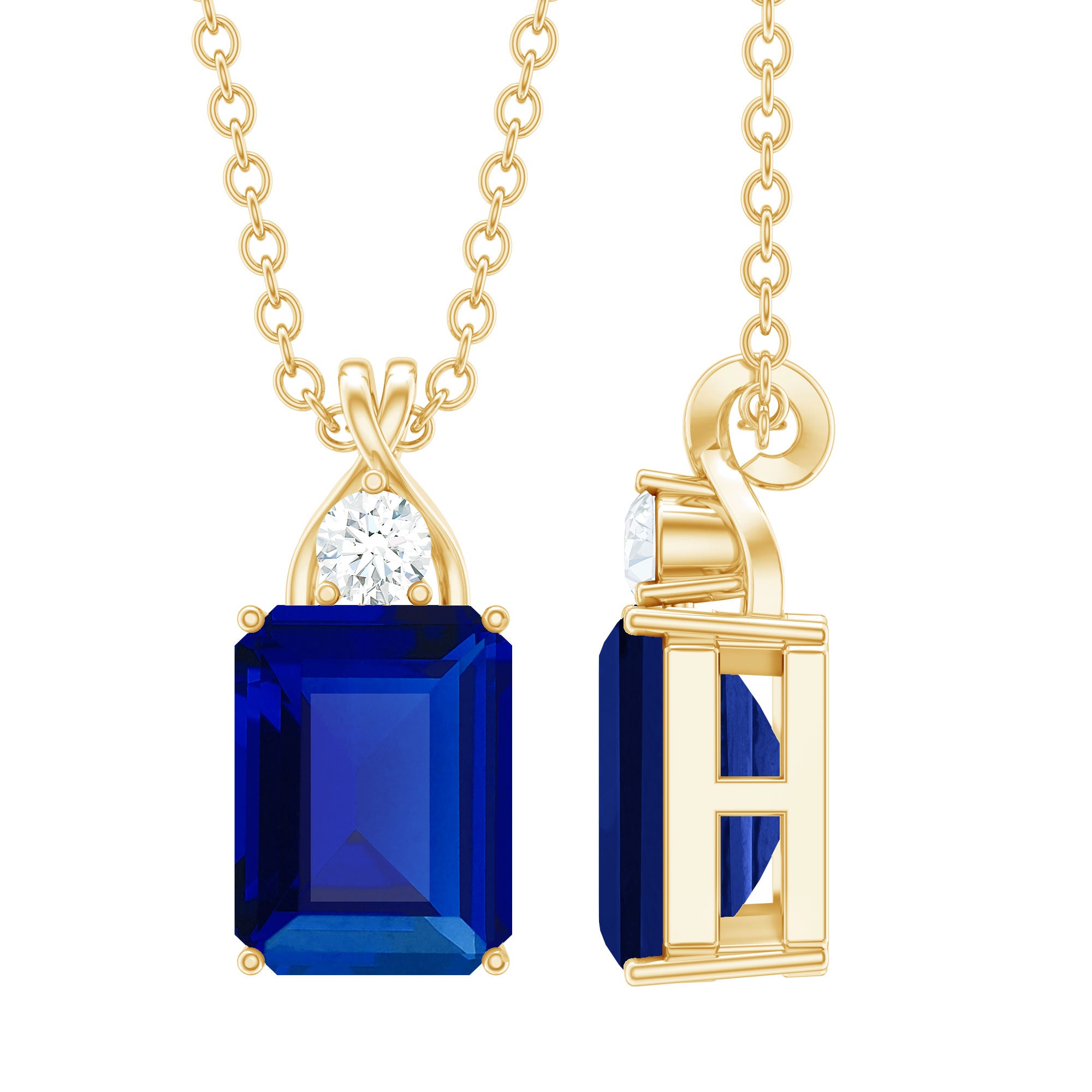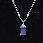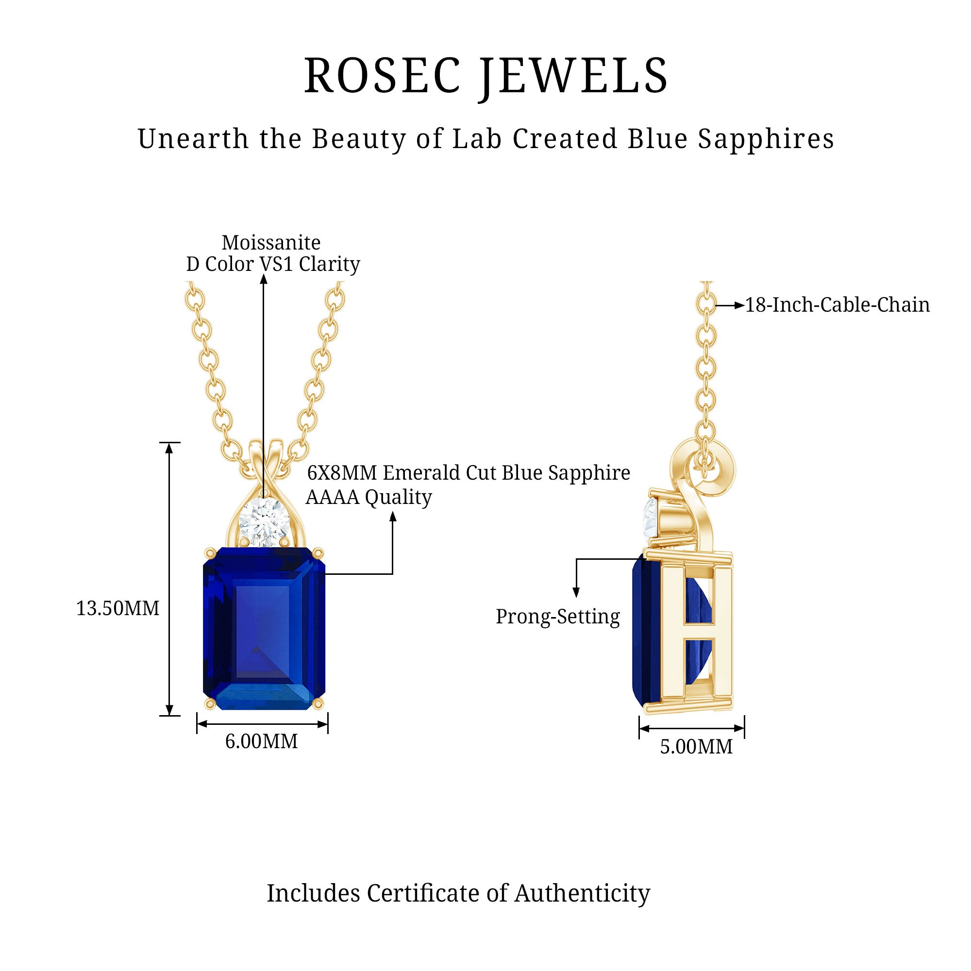 Emerald Cut Created Blue Sapphire Solitaire Pendant with Moissanite
