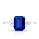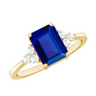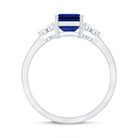 Emerald Cut Lab Created Blue Sapphire Engagement Ring with Diamond Accent