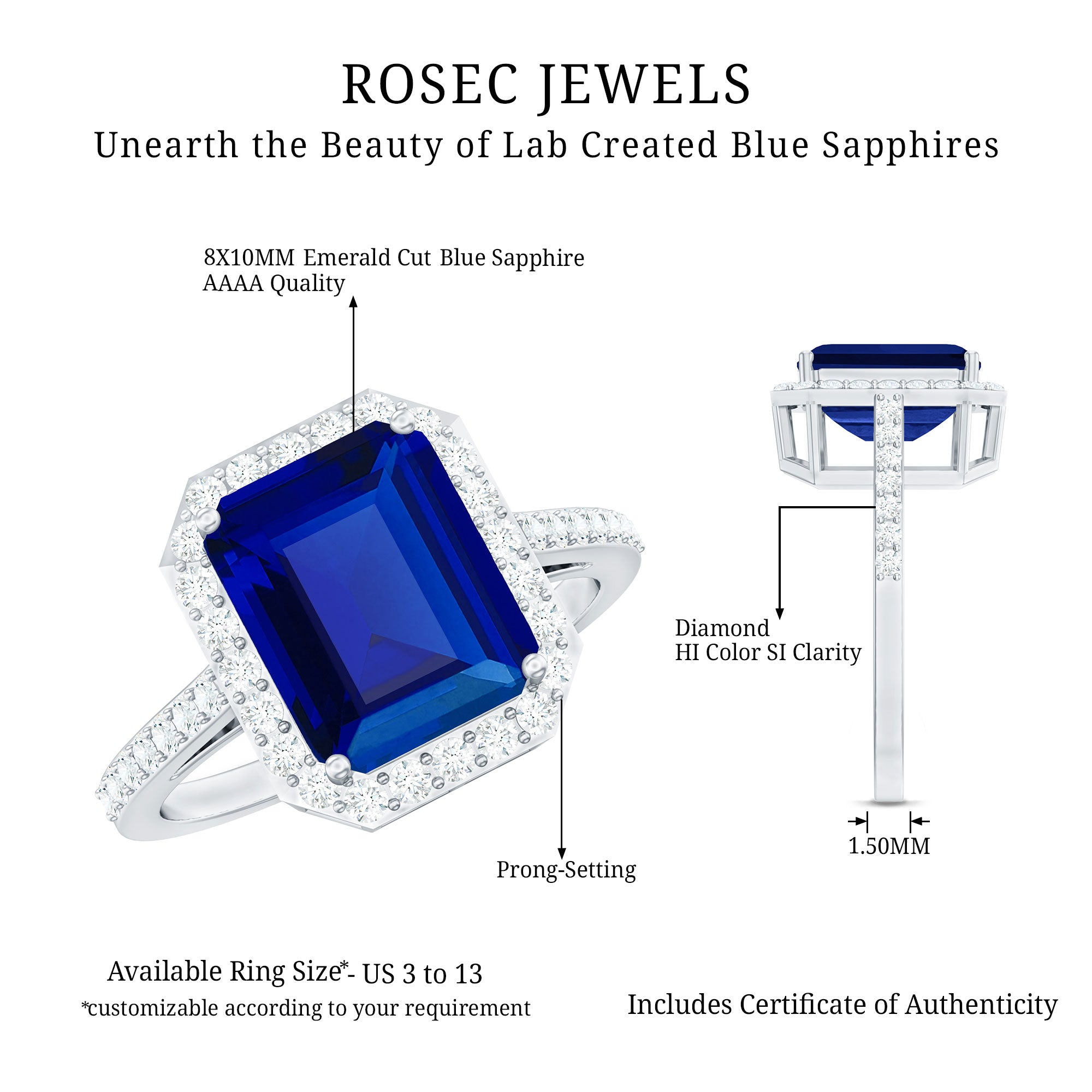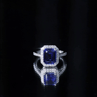 Emerald Cut Lab Grown Blue Sapphire Engagement Ring with Diamond