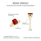 Effortlessly stylish, this Split Shank Ring features a Emerald Cut Created Ruby and Round Shape Diamond. The Created Ruby Solitaire Ring is the perfect choice for any woman seeking a timeless and elegant piece to adorn her finger.