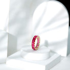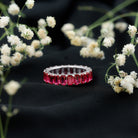 Emerald Cut Lab Grown Ruby Full Eternity Wide Band Ring