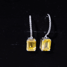 Emerald Cut Lab Grown Yellow Sapphire Minimal Hoop Drop Earrings with Diamond