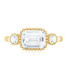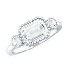 Emerald Cut Moissanite 3 Stone Engagement Ring in East West Style