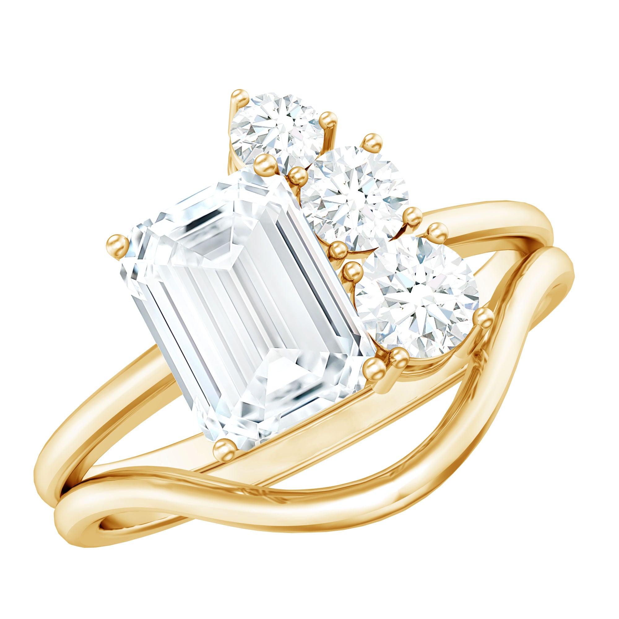 Emerald Cut Moissanite Engagement Ring with Enhancer