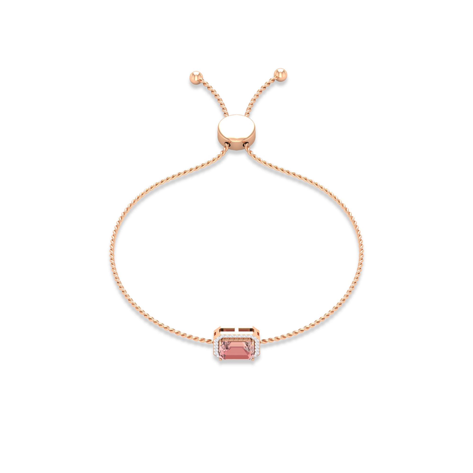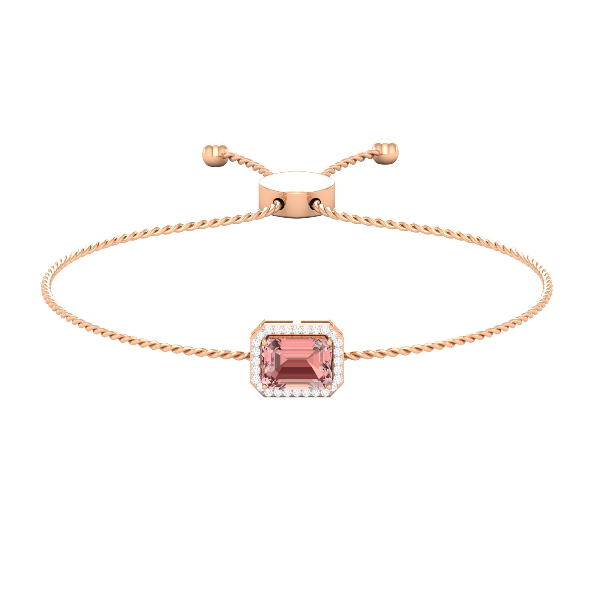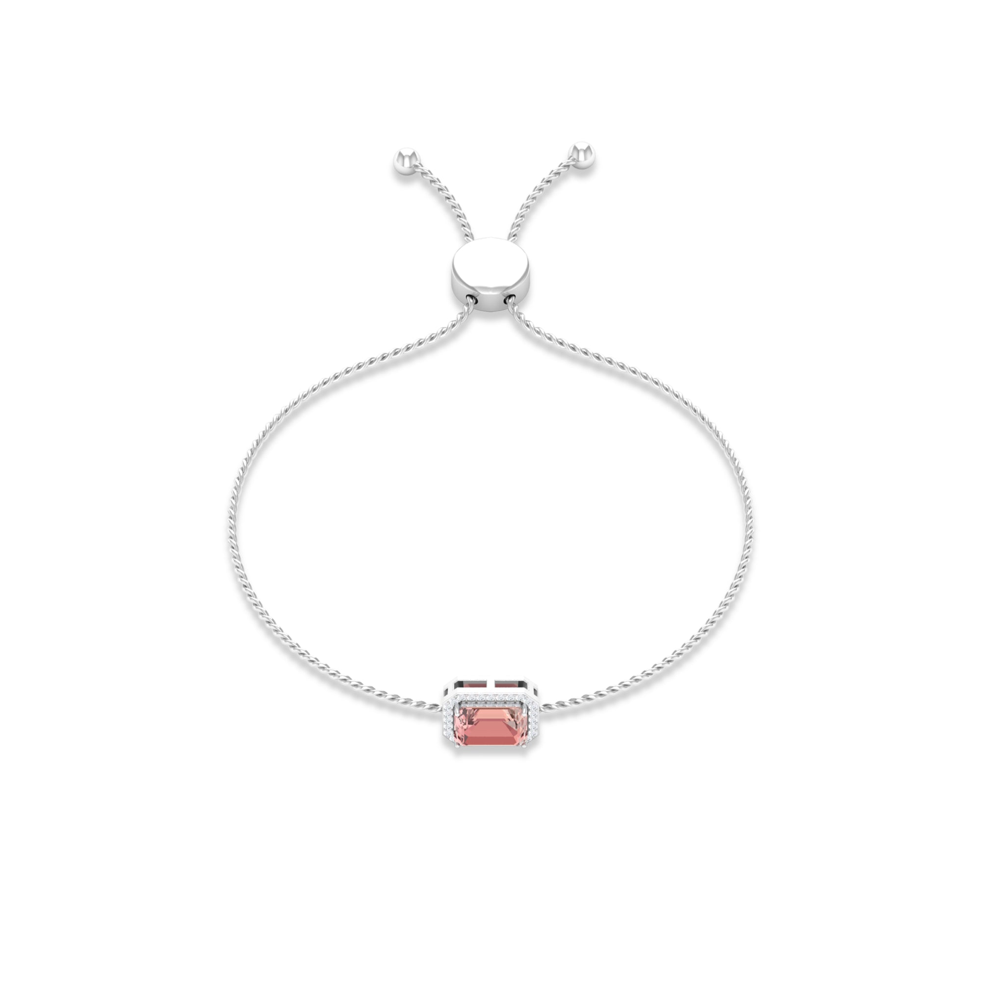 Emerald Cut Morganite Bolo Chain Bracelet with Diamond Halo