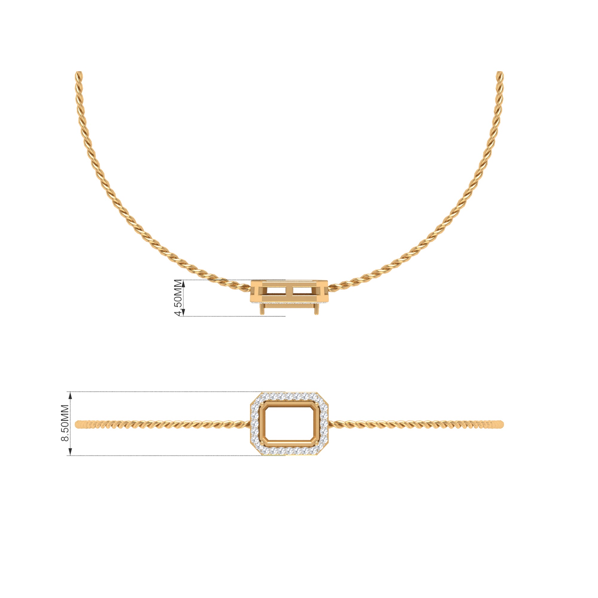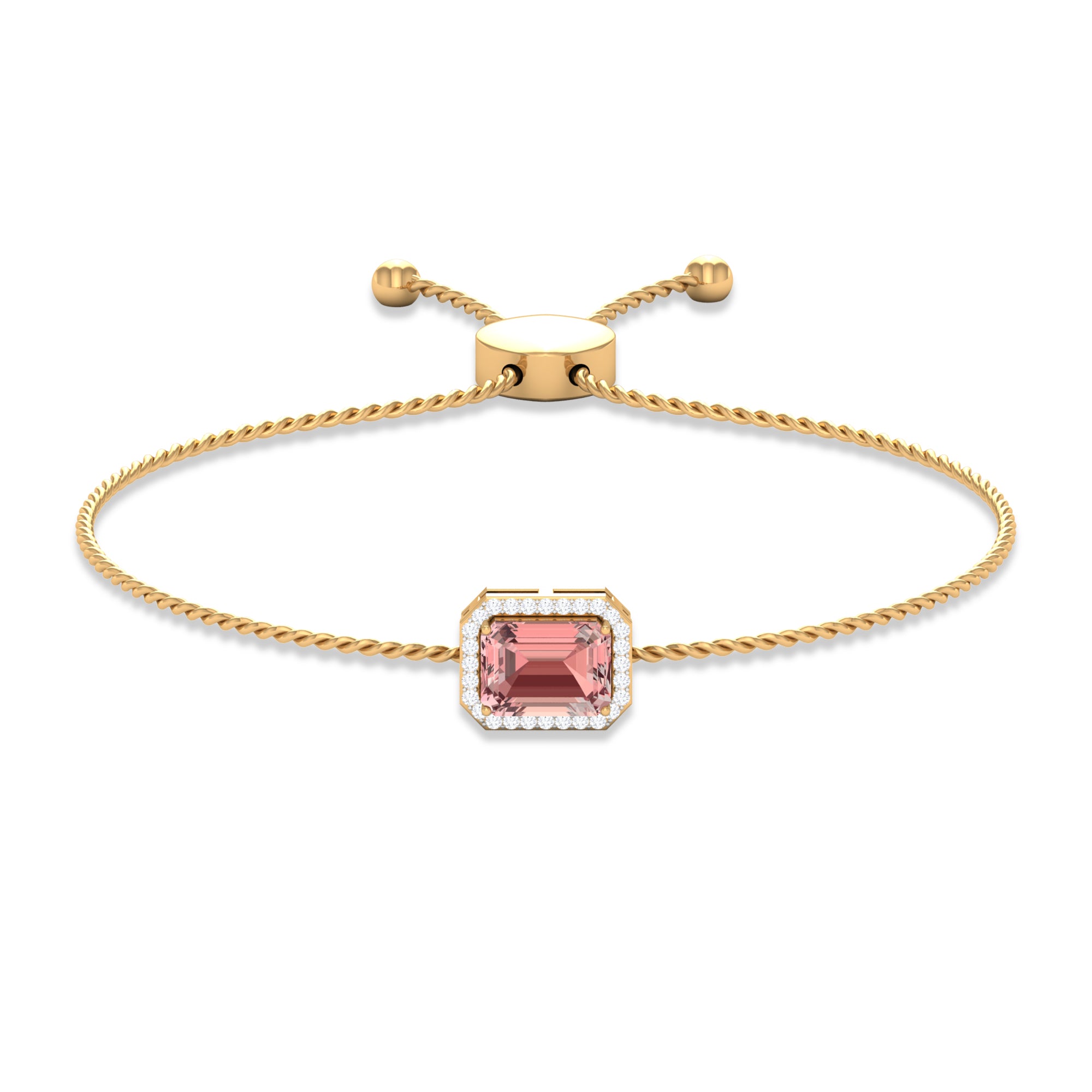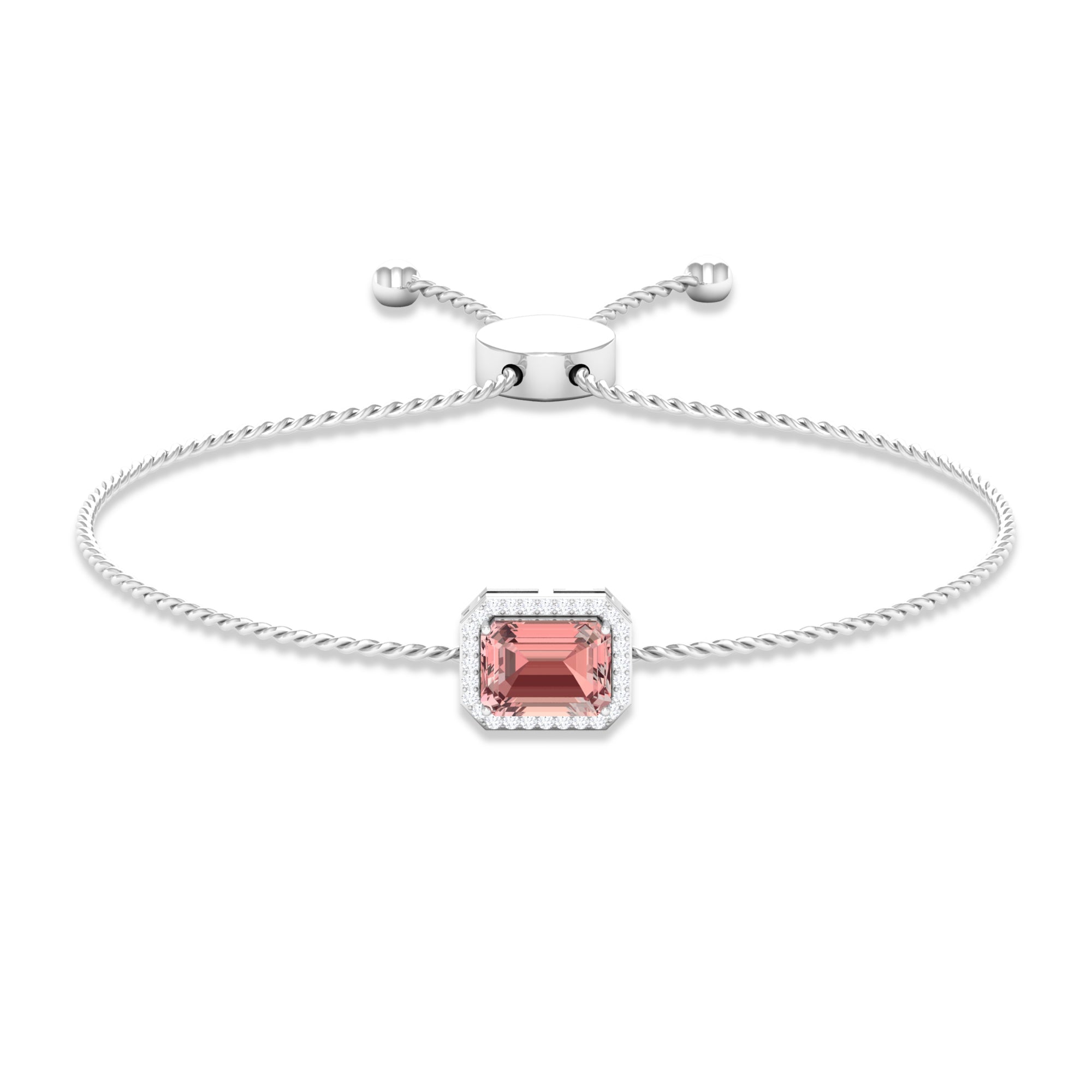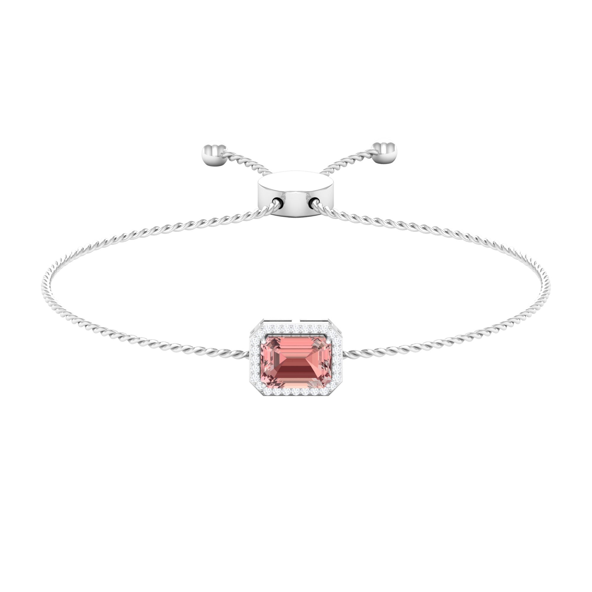 Emerald Cut Morganite Bolo Chain Bracelet with Diamond Halo