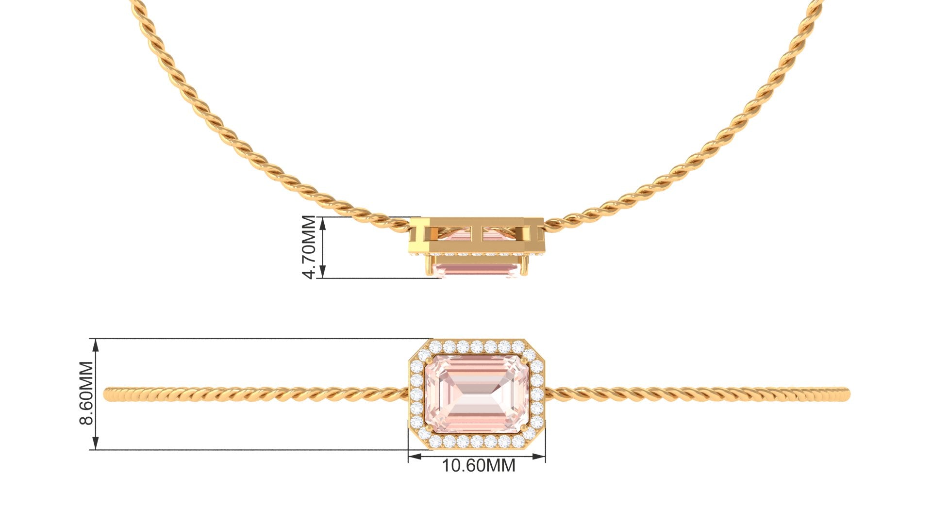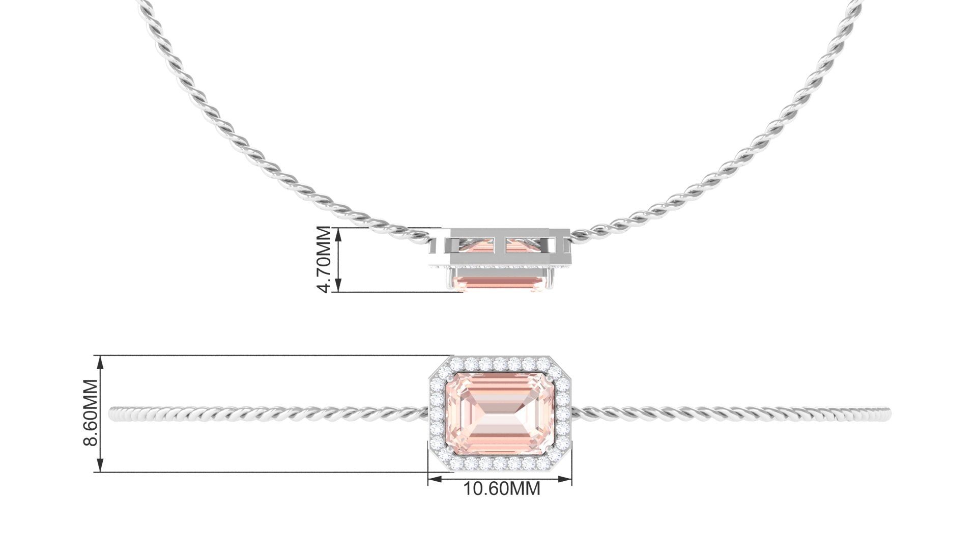 Enhance your preferred style with our Bolo Chain Bracelet, which features a stunning contrast. The 7X9 mm emerald-cut Morganite is elegantly secured in a prong setting, encircled by petite round diamonds that form an enchanting halo. The secure closures at the ends guarantee safety and allow for easy adjustments. The captivating pinkish tint and everlasting brilliance of the diamonds are certain to draw everyones gaze and place you in the limelight. Indulge yourself or present it to your loved one, as it serves as a charming birthday or anniversary gift for them. This Real Morganite Bracelet, featuring an astonishing design, embodies a simplistic elegance paired with a stunning beauty. Emphasizing exquisite luxury, this Halo Chain Bracelet could serve as an ideal gift for weddings, anniversaries, or any special occasion for someone dear to you. Additionally, Morganite is linked to the October birthstone, making it a thoughtful gift for her.