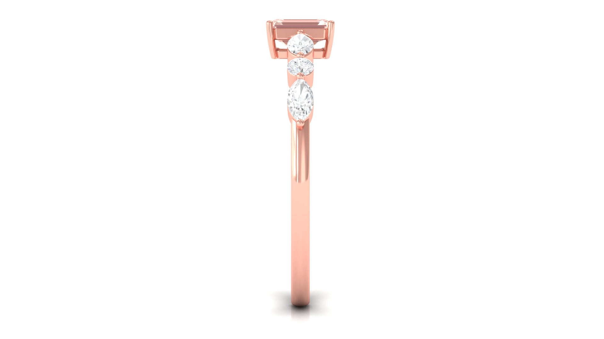 Emerald Cut Morganite Solitaire Ring with Diamond Side Stones