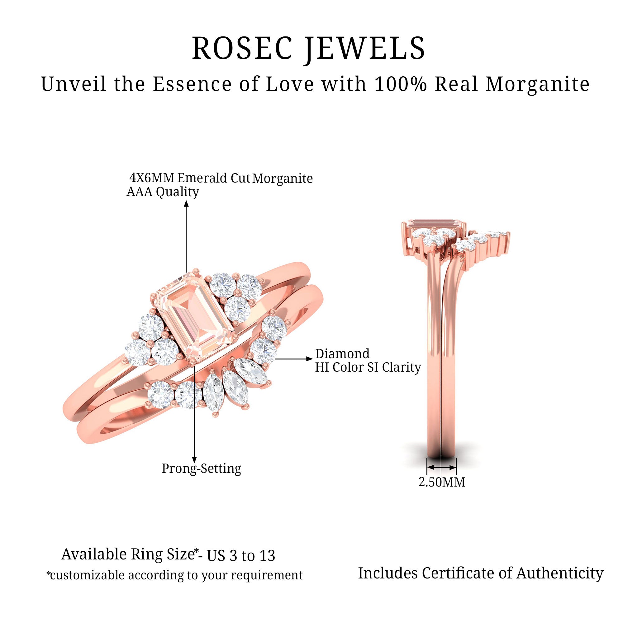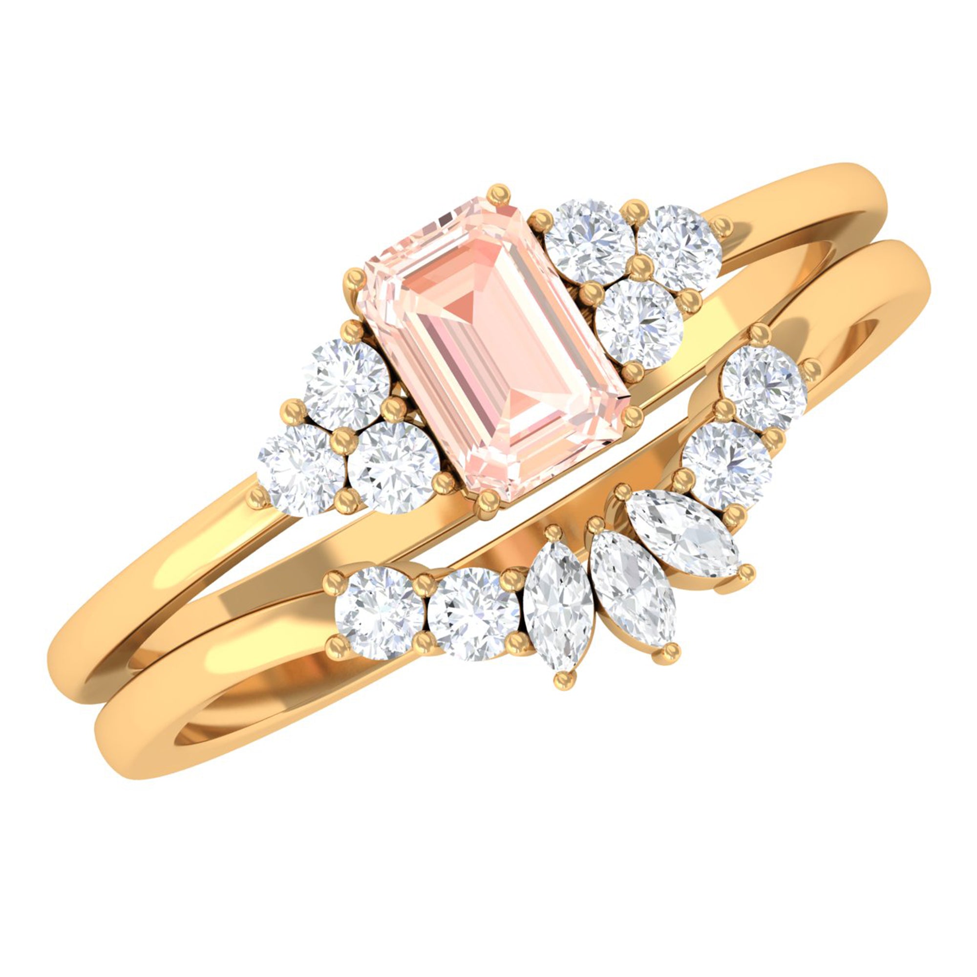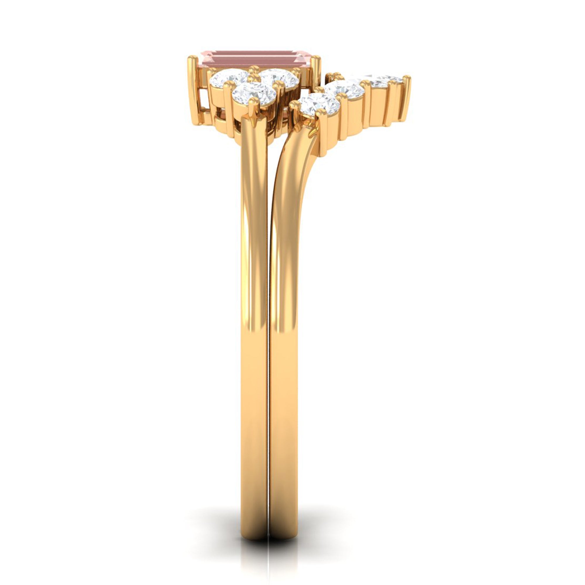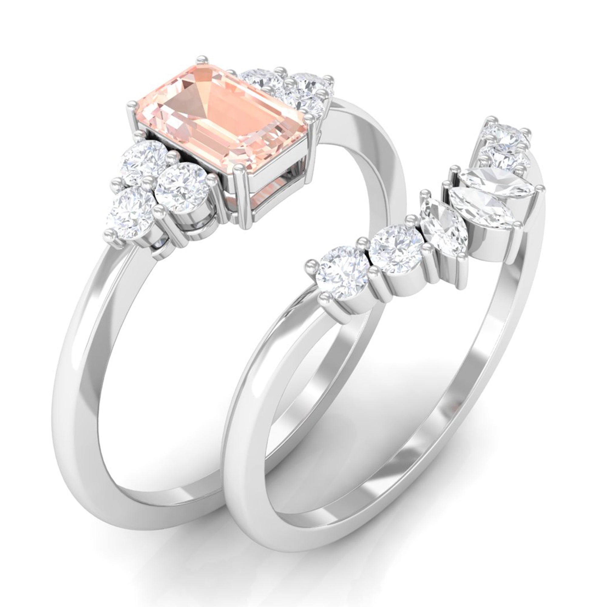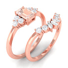 Emerald Cut Morganite Solitaire Stackable Ring Set with Diamond