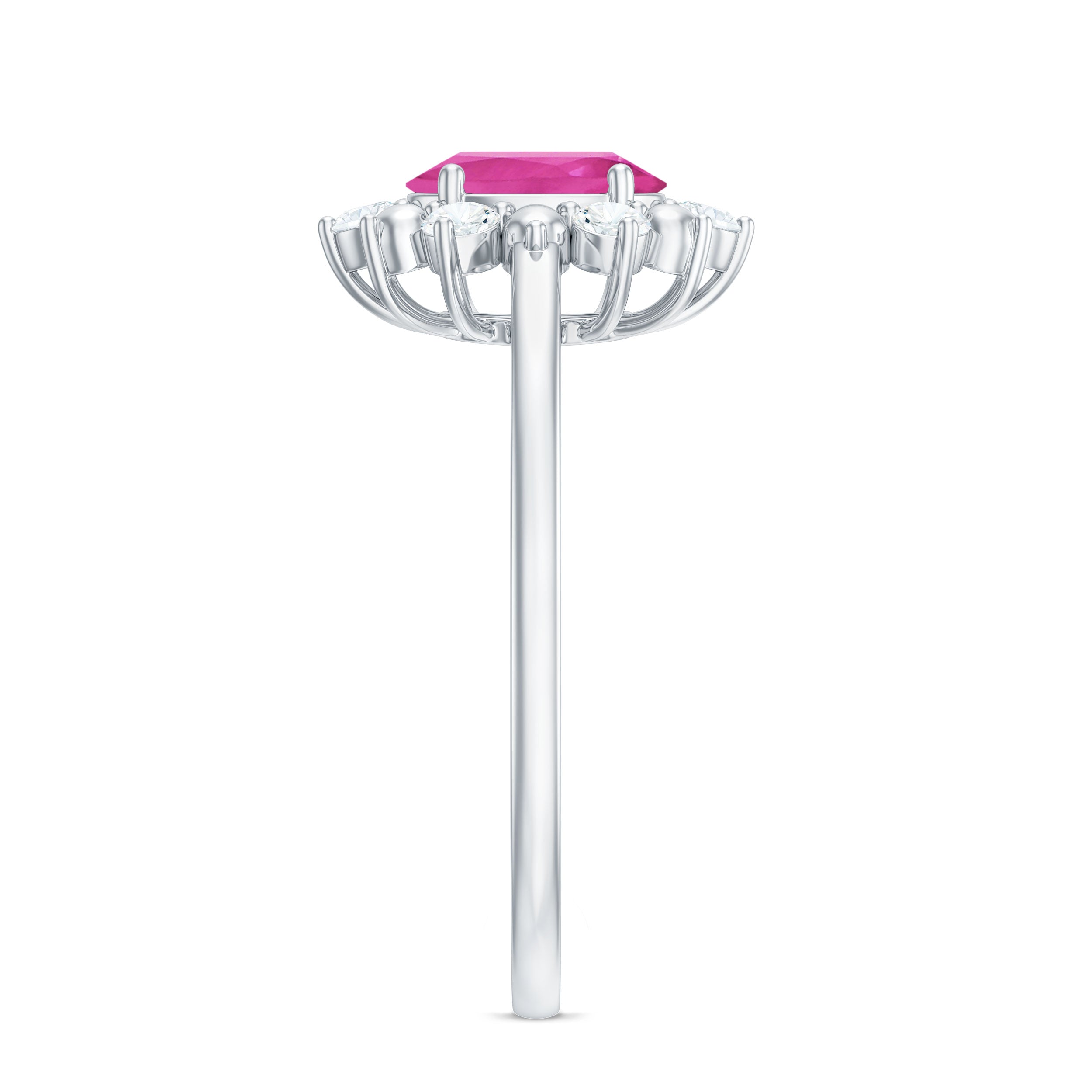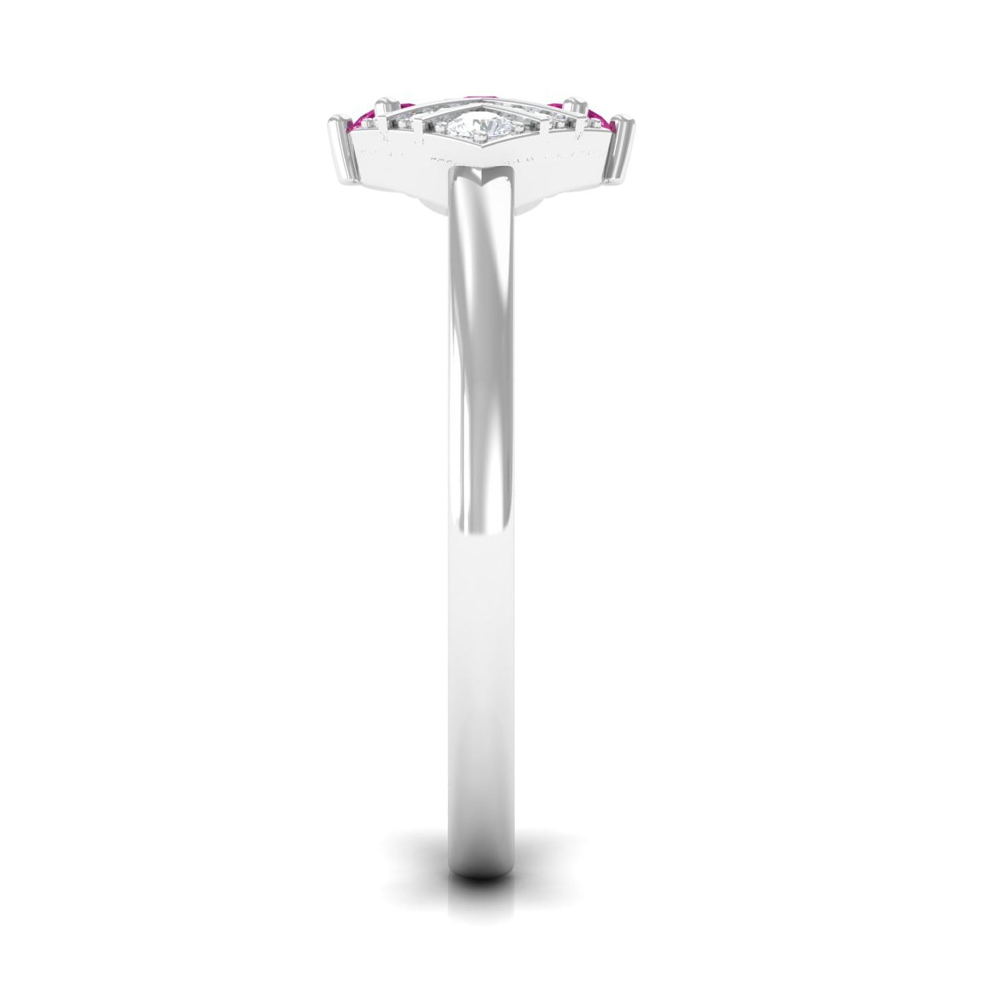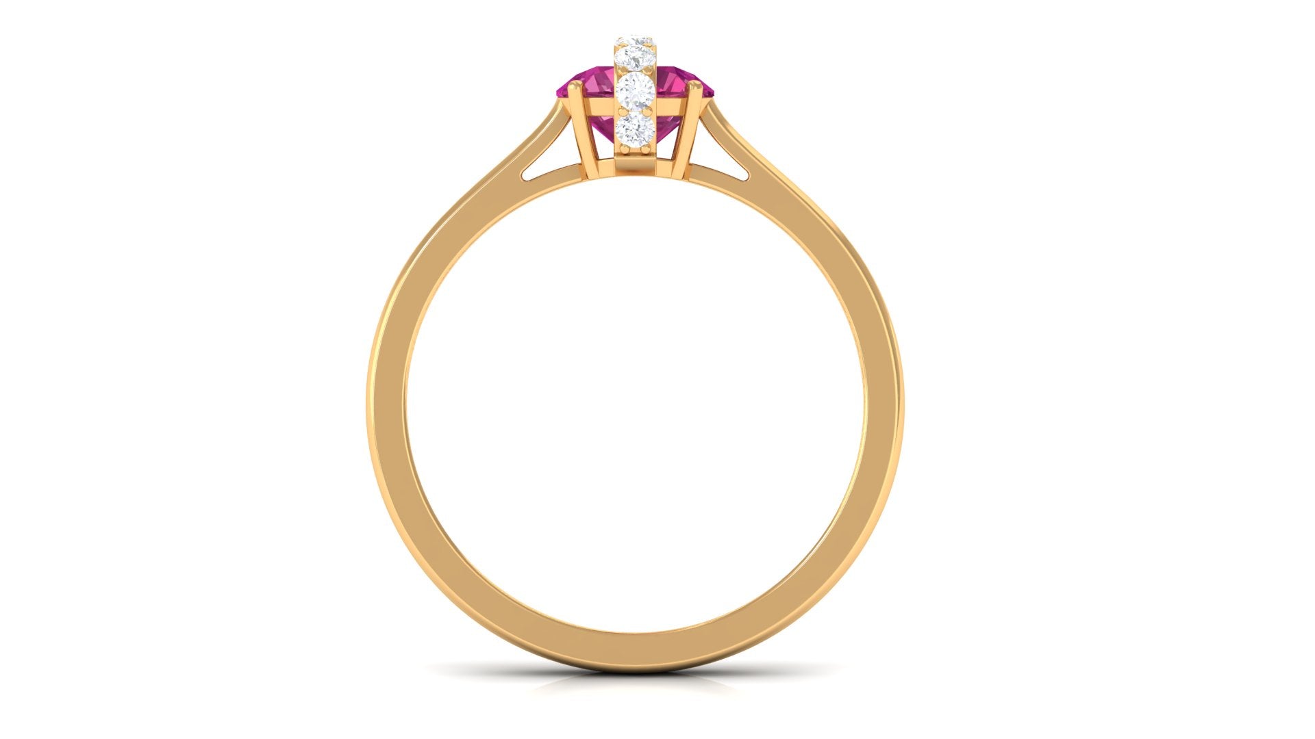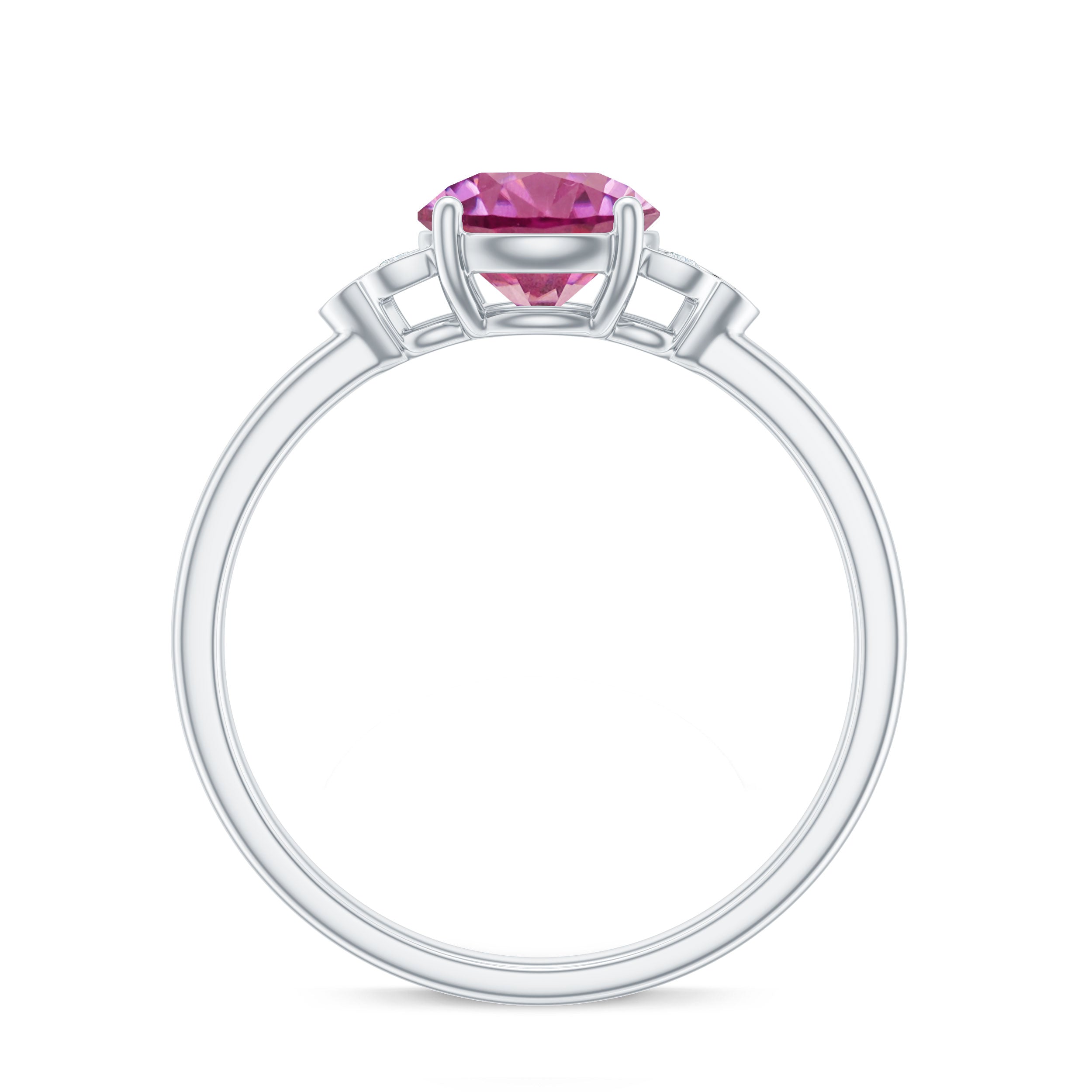 Easily the go-to ring style for the classic bride-to-be, this Solitaire Ring is defined by a Centerpiece of Pink Tourmaline that stands all alone (preferably mounted in a Simple Setting). The feminine appeal of Pink Tourmaline here is meant to catch the most attention owing to its enormous size of 6 MM or more. While the minimalist and timeless aesthetic of this engagement ring sets it apart, its versatility (thanks to the many shapes it is fashioned with) deserves just as many praises. While a Round Pink Tourmaline Engagement Ring speaks to conventional couples, the one fashioned with Pear, Marquise, or Pear Cut is more on the fancier side of the spectrum. If you’re the kind of bride-to-be who fancies a grand and slightly Vintage Pink Tourmaline Engagement Ring, go for the one handcrafted with Asscher, Cushion, or Emerald Cut.